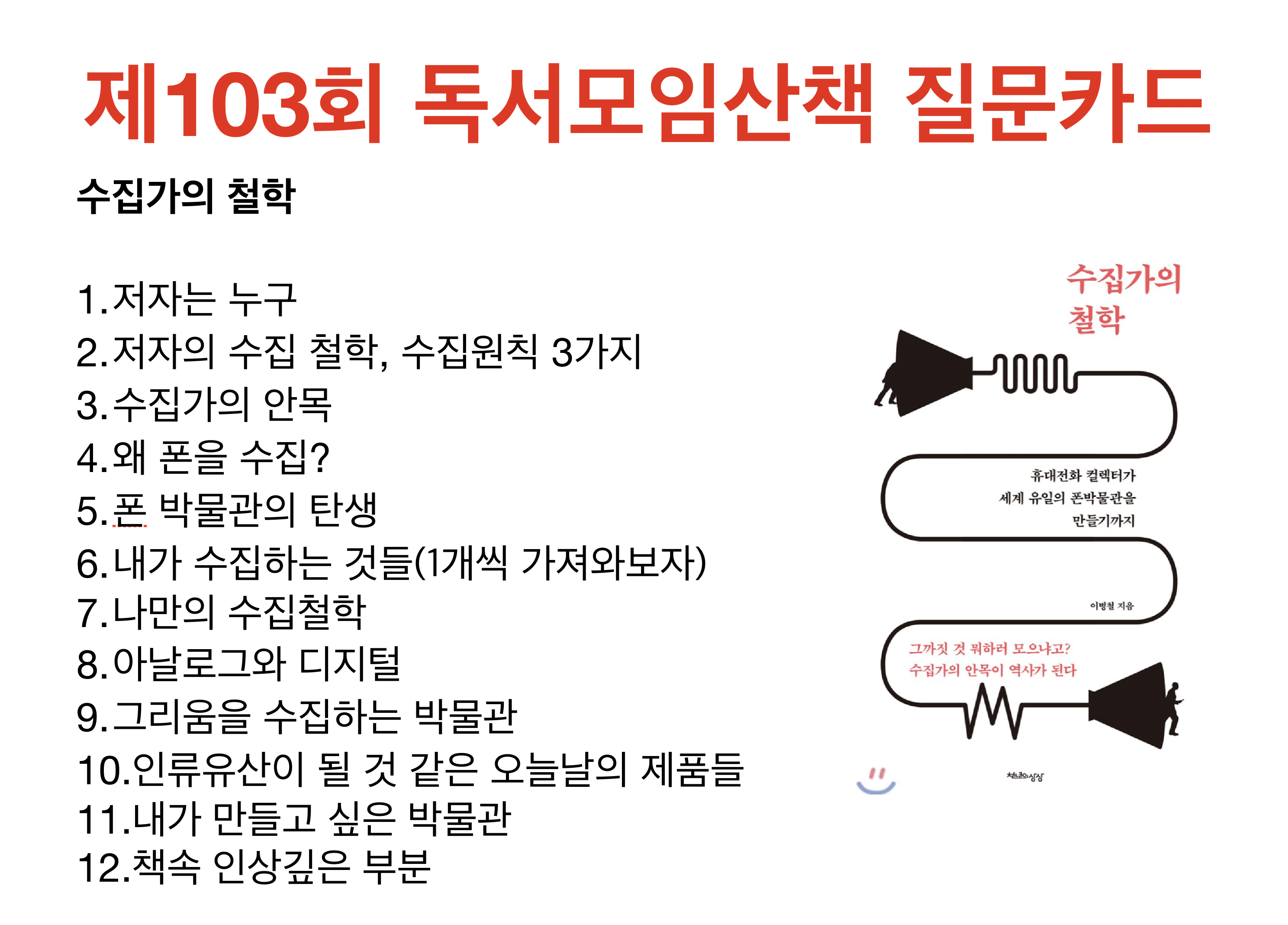 책 수집가의 철학 독서모임 산책 질문지!
