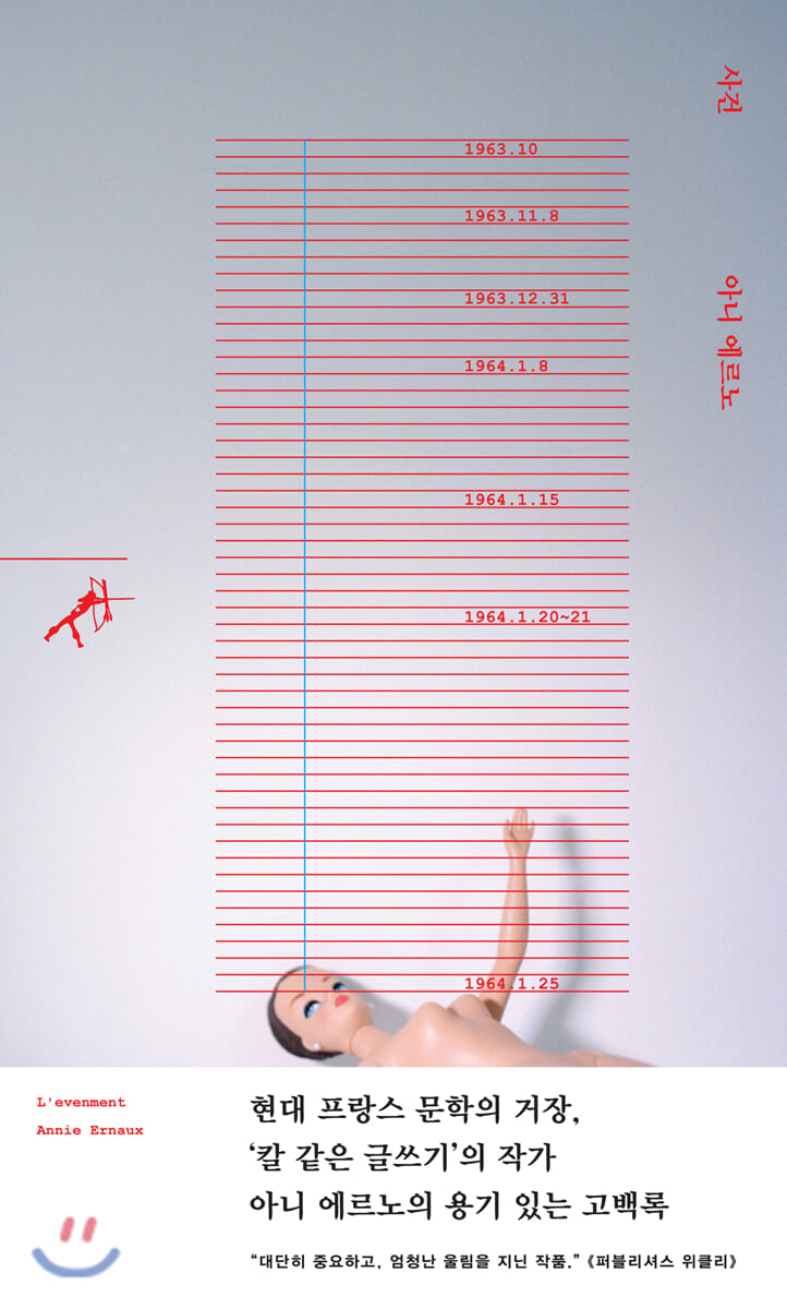 문단에 등장한 이래 끊임없이 자신을 고백해 온 아니 에르노이지만 유독 『사건』만큼은 끝끝내 이야기하기가 고통스러웠다고 털어놓았다. 『사건』의 ‘사건’이라 할 수 있는 ‘어떤 경험’, 즉 임신 중절 체험을 모조리, 일말의 과장이나 오류 없이 샅샅이 고백하기란 아무래도 불가능하게 여겨졌기 때문이다. 그래서 작가는 법이 금지하고 범죄로 낙인찍은 임신 중절이 ‘여성의 선택’이 될 때까지 기다려야만 했다. 그러고 나서도 한참의 시간이 흘러, 그저 일상적으로 성병 검사를 받던 바로 그 순간에, 불현듯이 벼락처럼, 임신 중절을 해야만 하는 임신 상태에 내몰려 있던 이십 대의 자신이 불쑥 나타난 것이다. 결국 에르노는 과거의 일기를 다시 끄집어냈고, 그때 방황했던 장소들, 무심하게 흐르던 음악을 맹렬하게 다시 마주하며 “생리가 시작되기만을” 간절하게 소망하던 절망적인 시간 속으로 거칠게 휩쓸려 들어간다.