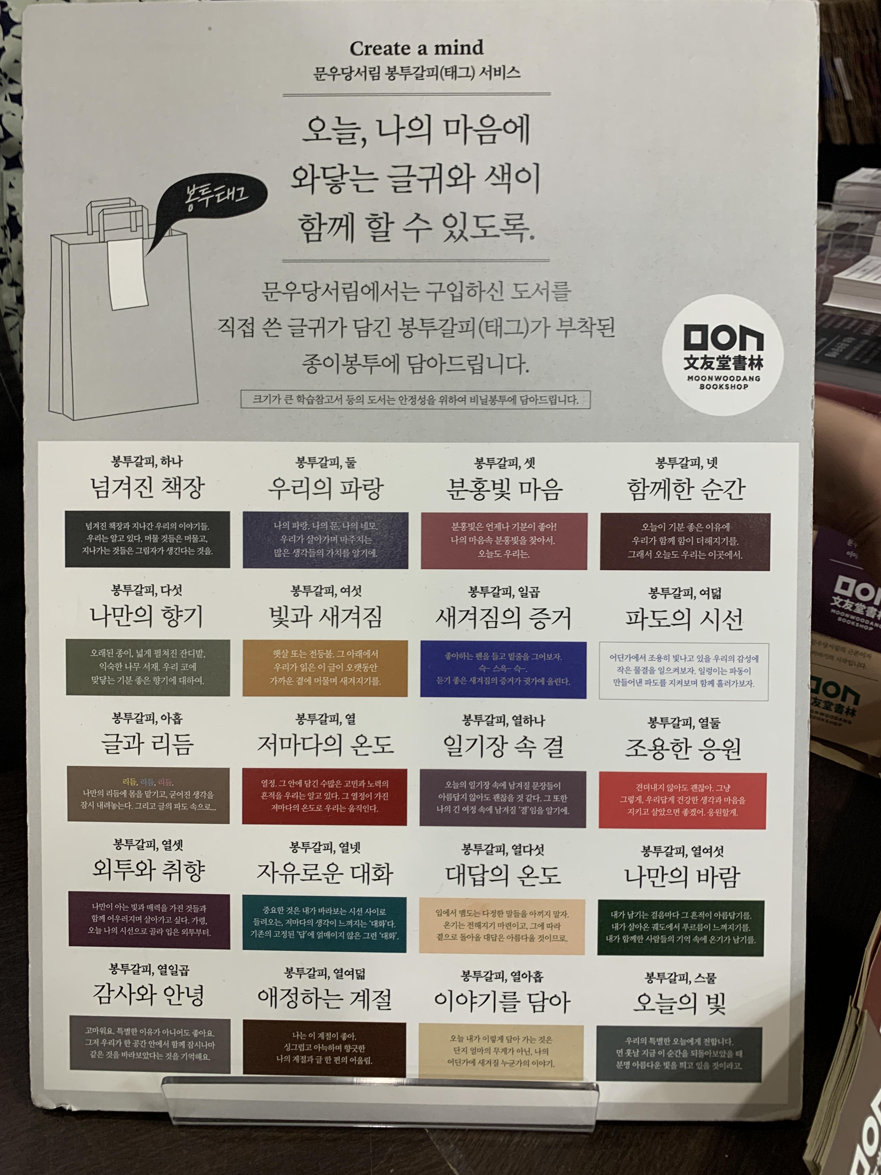 이곳은 책을 사면 특별한 글귀가 적힌 책갈피를 선물로 준다. 함께 온 사람이 있으면 그 사람 것 까지도 챙겨준다.