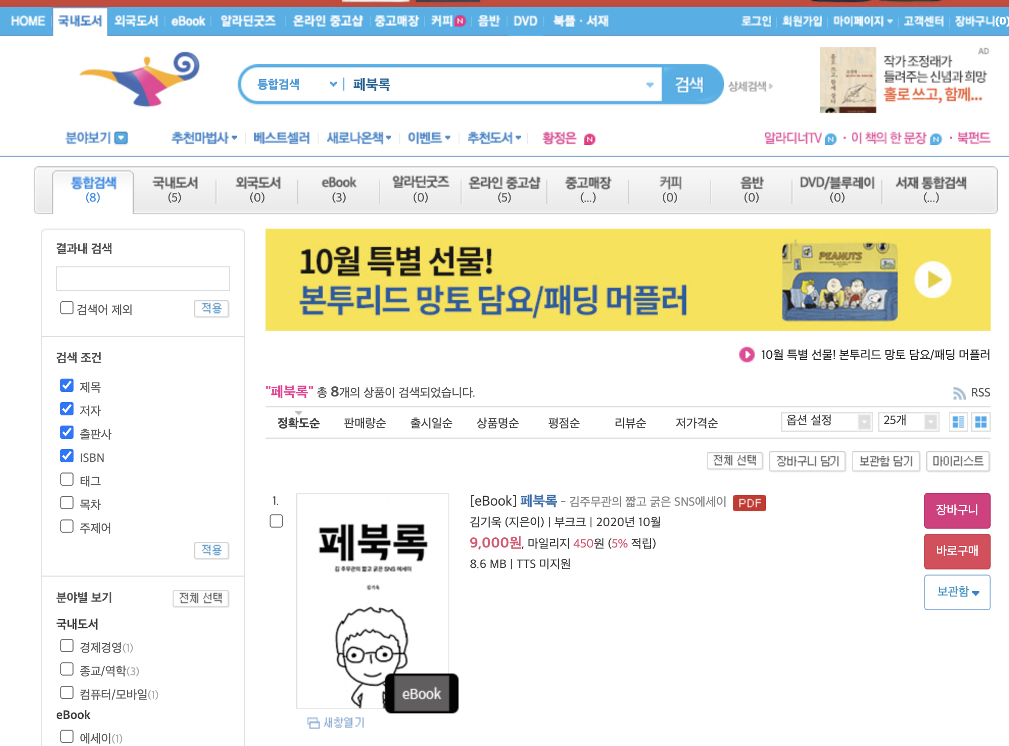 페북록. 교보문고와 알라딘서점에 이렇게 검색되네요. ^^