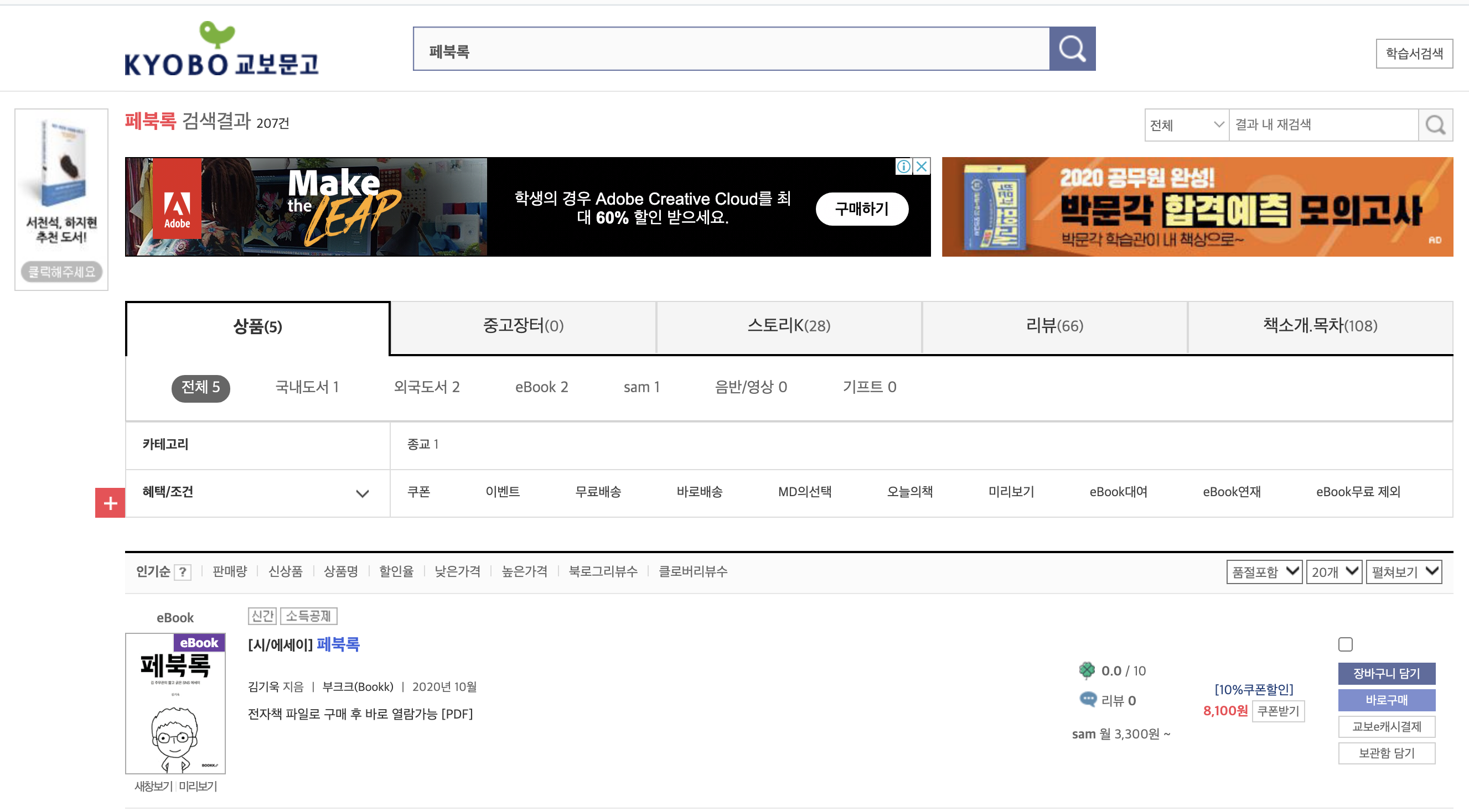 페북록. 교보문고와 알라딘서점에 이렇게 검색되네요. ^^