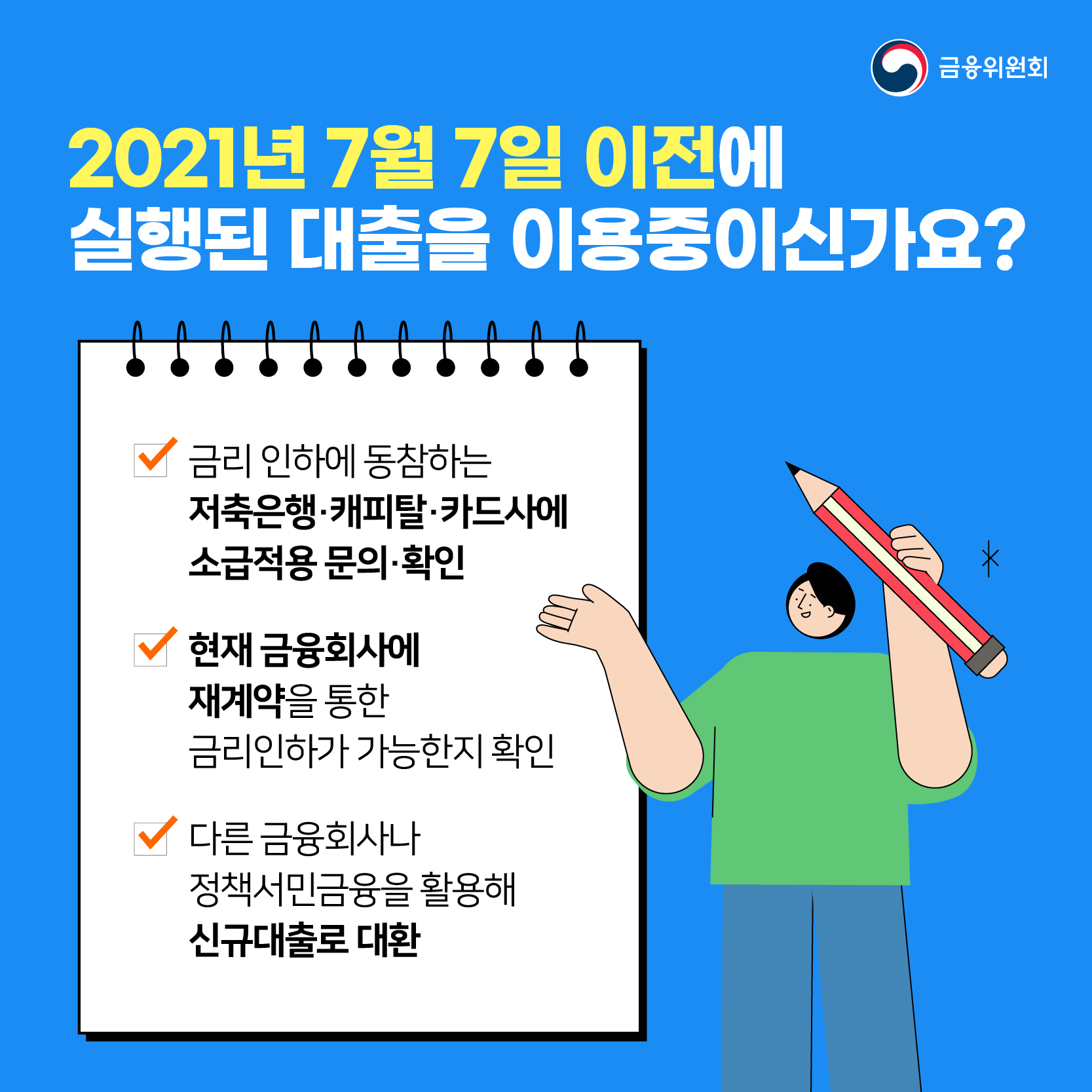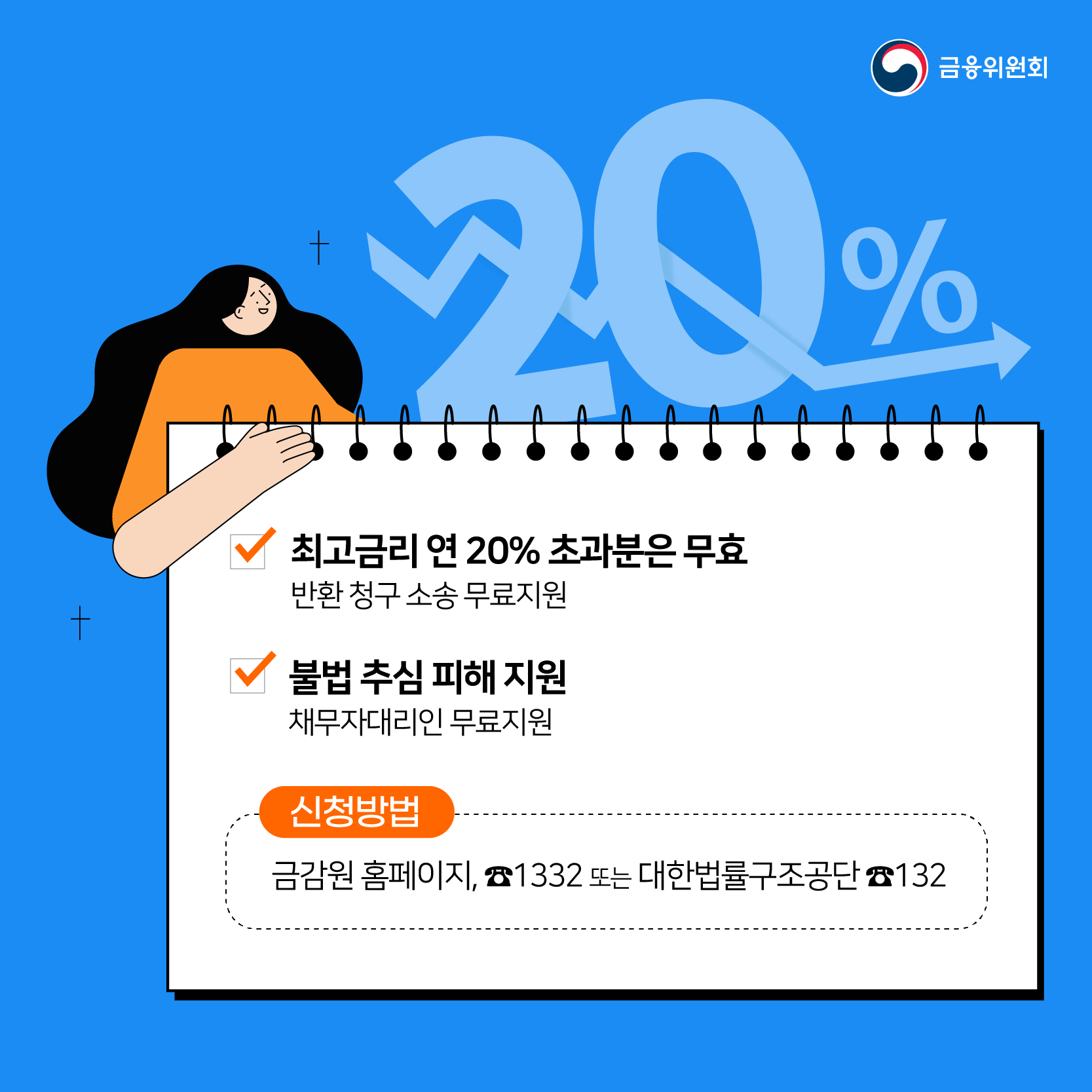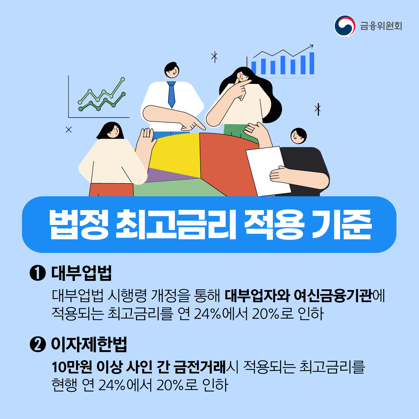 7월 7일부터 법정 최고금리가 연 20%로 낮아졌습니다.