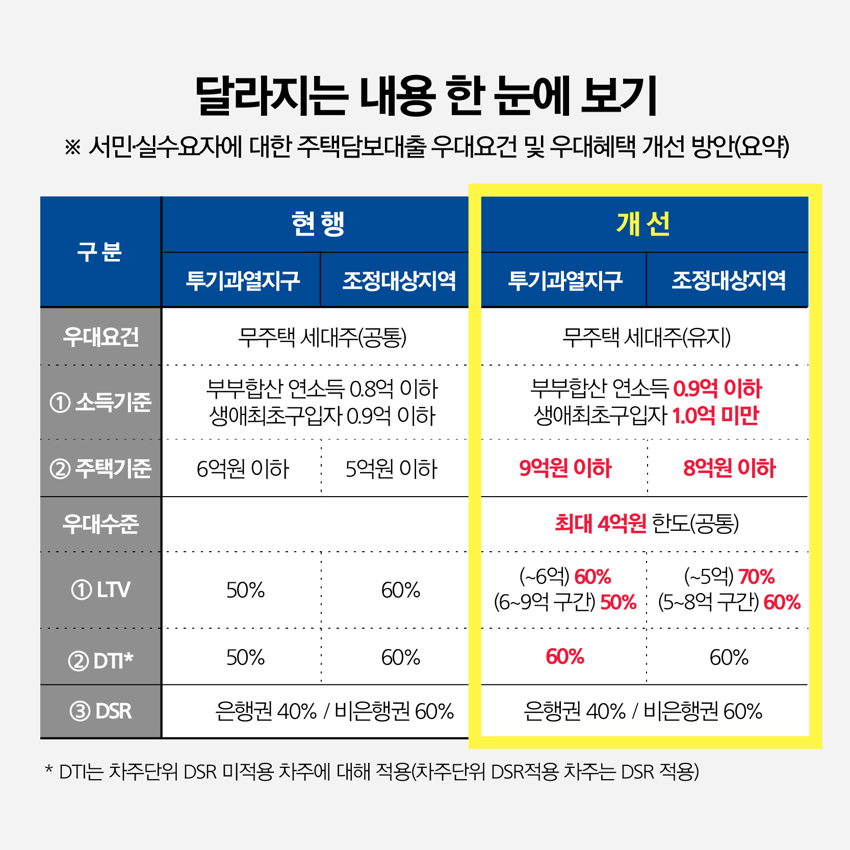 * 단, 대출 최대한도는 4억원 이내이며, 차주단위 DSR 한도 이내로 한정