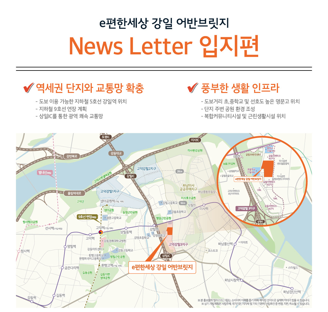 e편한세상 강일 어반브릿지 입지는 다음과 같습니다.
