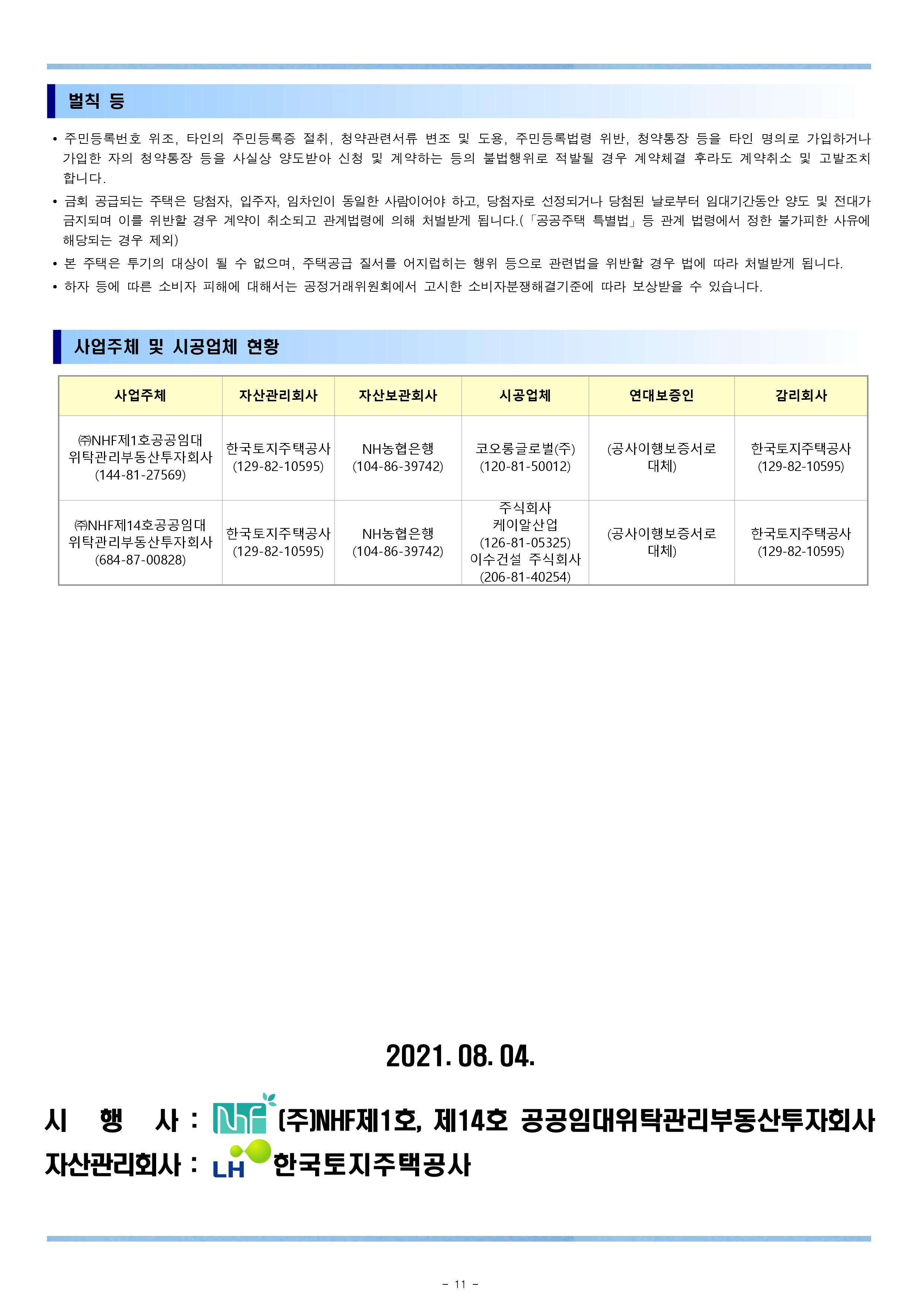 시행사 : (주)NHF제1호, 제14호 공공임대위탁관리부동산투자회사
