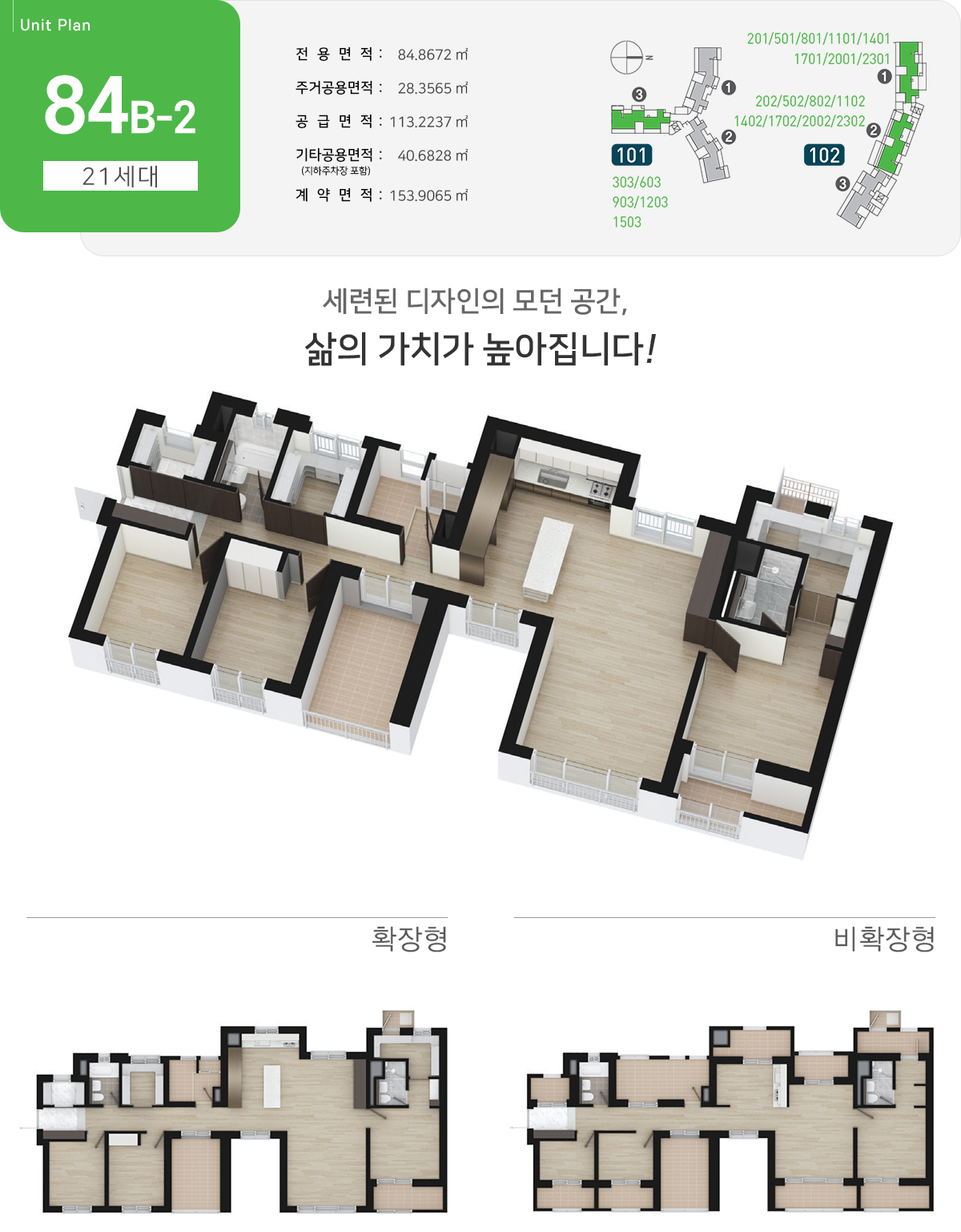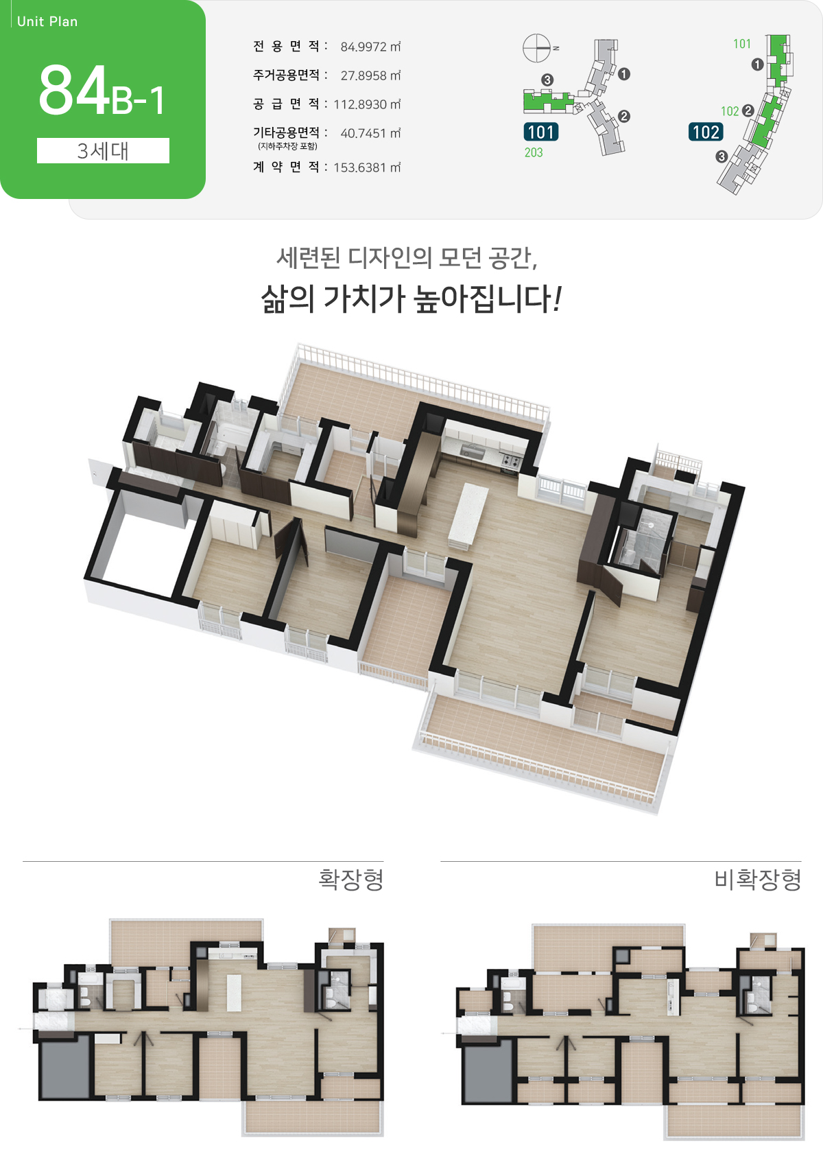 전세대 테라스형 아파트, 5Bay+2α, 생활의 감동을 두 칸 더 드립니다!