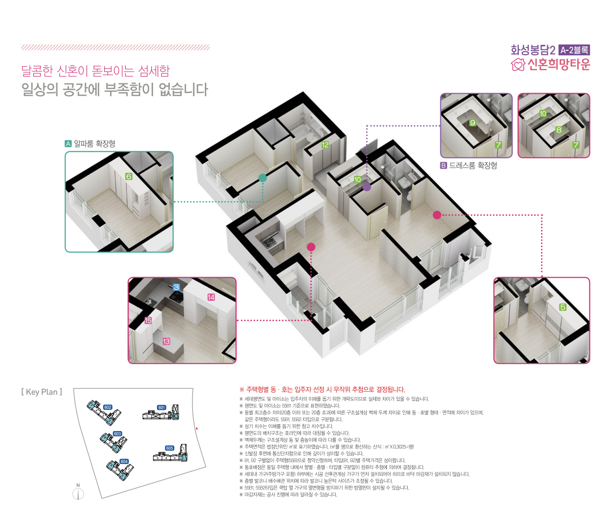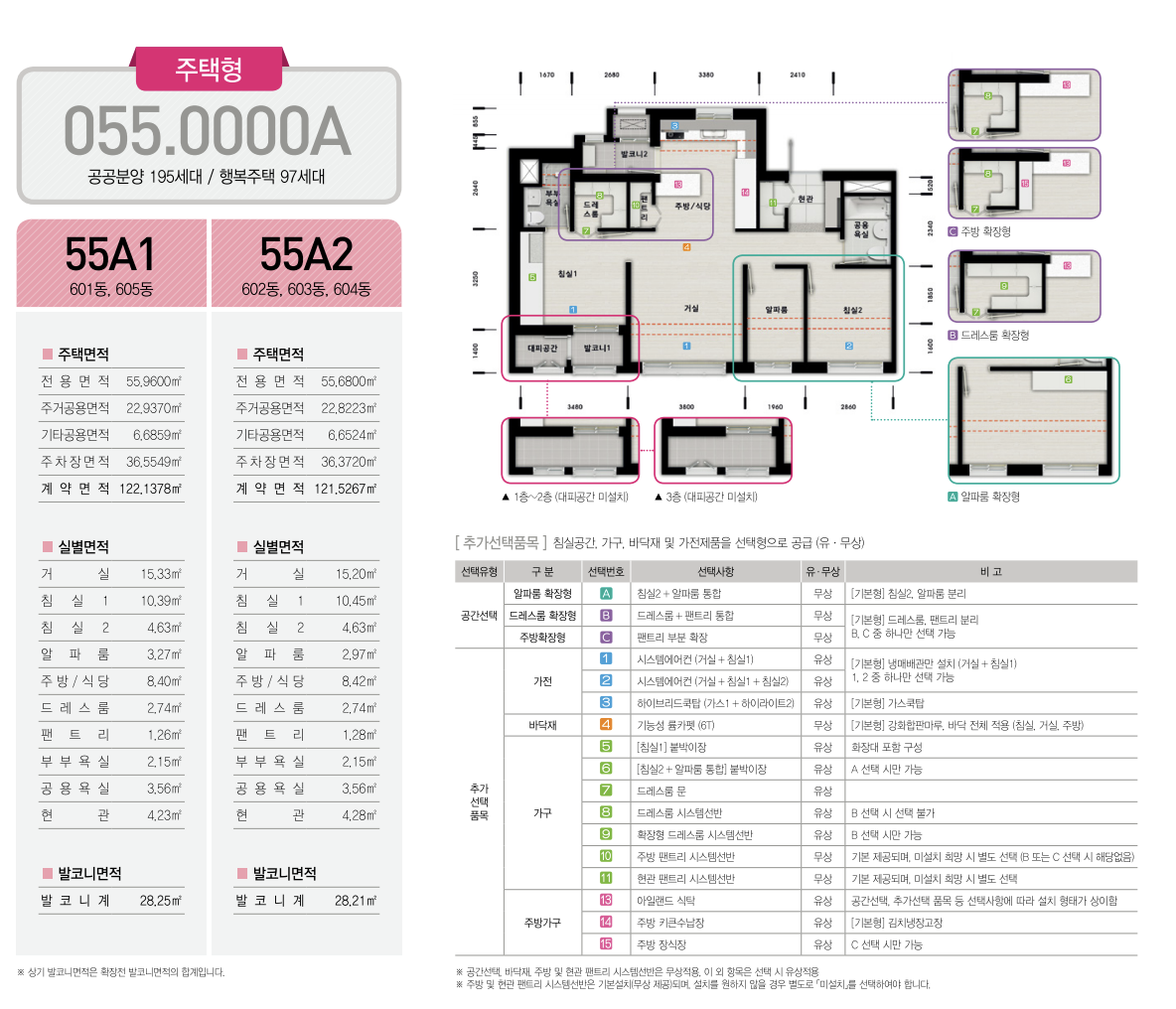 화성봉담2 A-2블록은 총 456가구로 공공분양 304가구, 행복주택 152가구이며 전체 전용면적 55㎡형으로 구성됐다.
