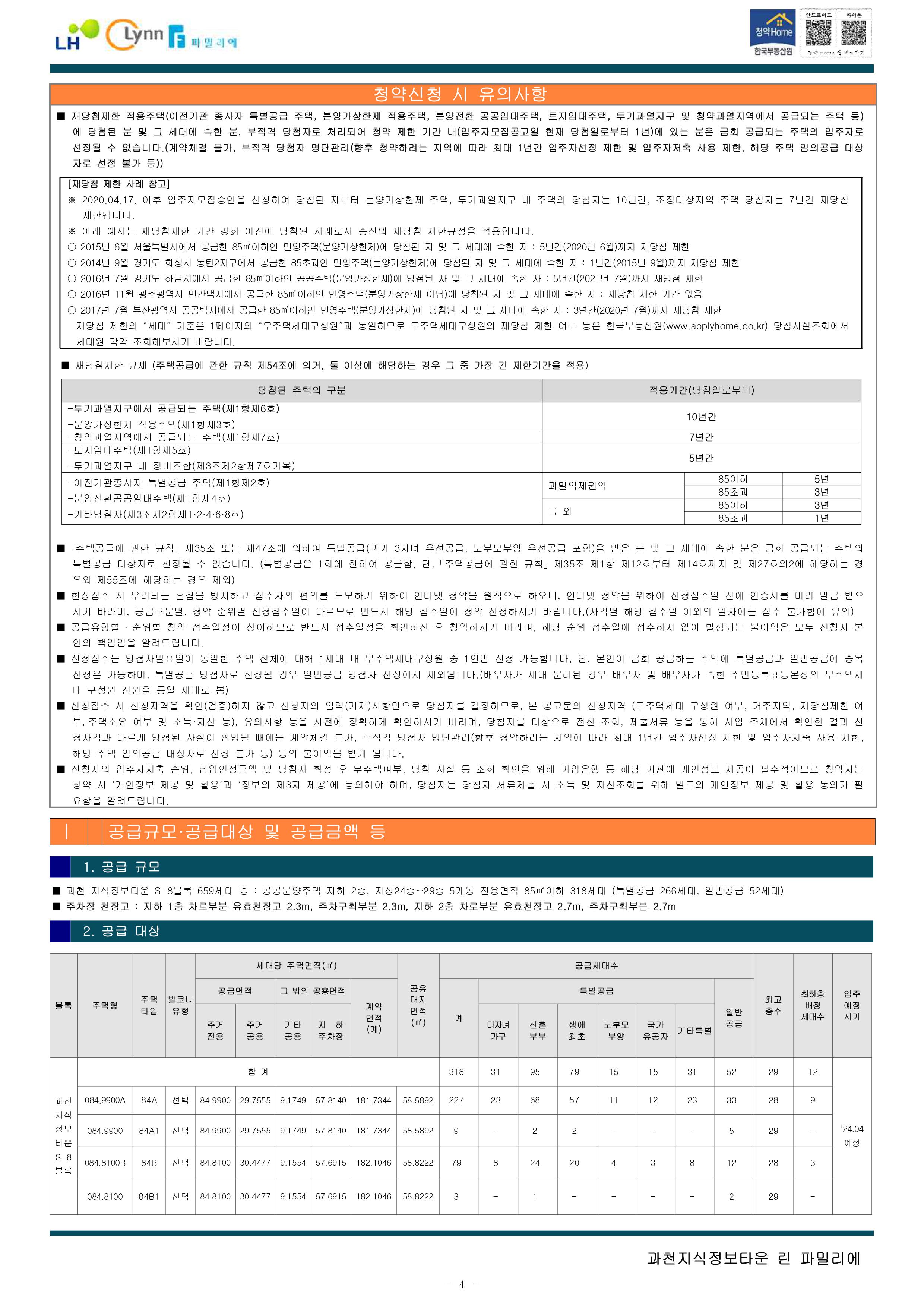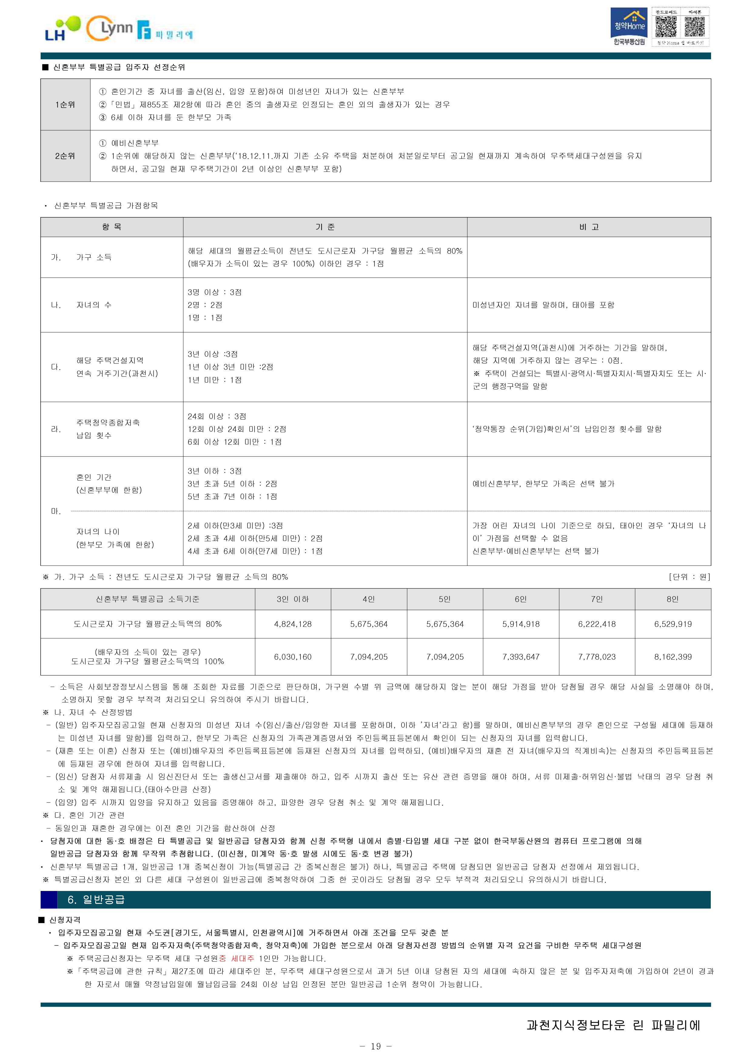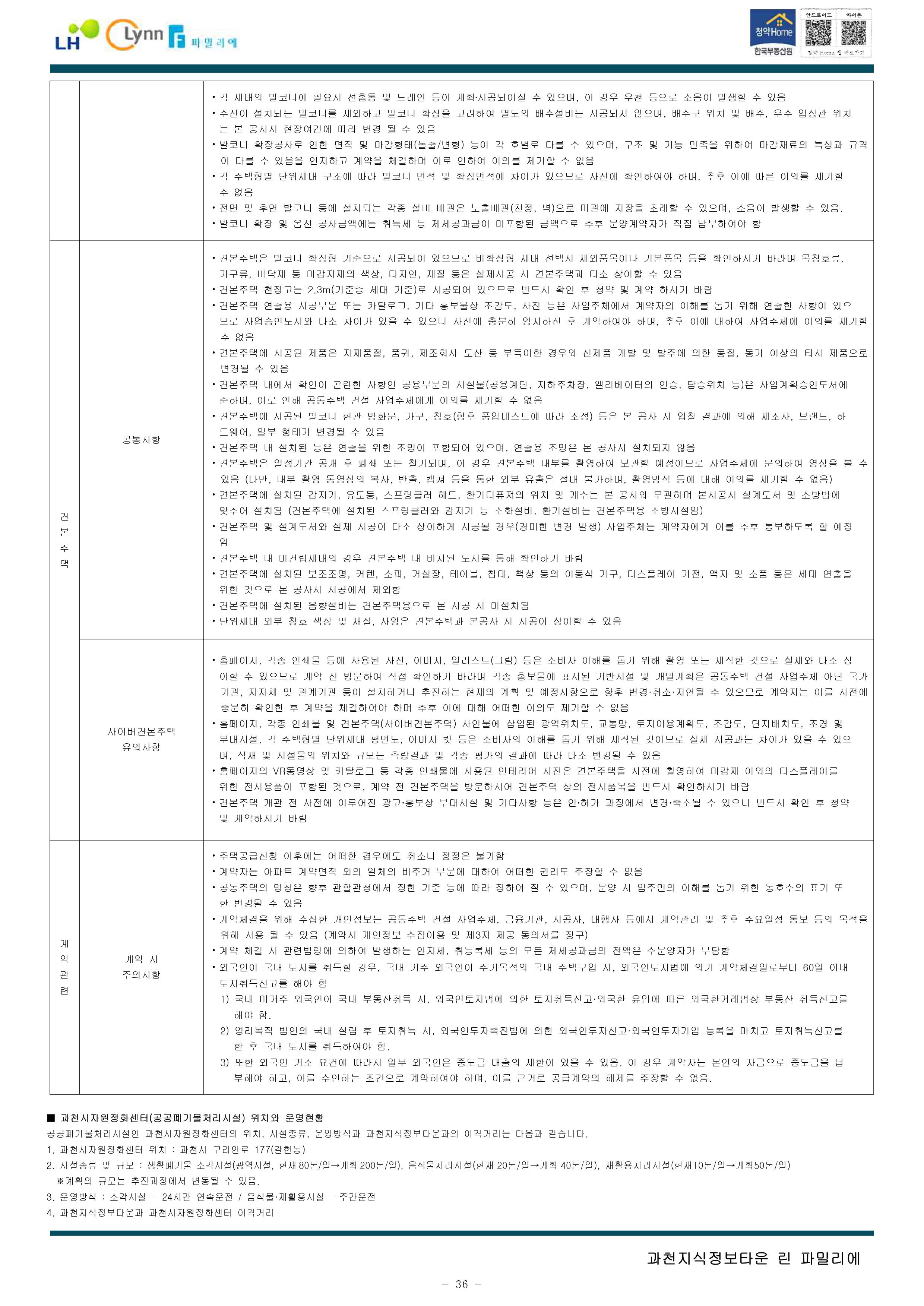 과천지식정보타운 린파밀리에 공옹분양주택 입주자 모집 공고문입니다.