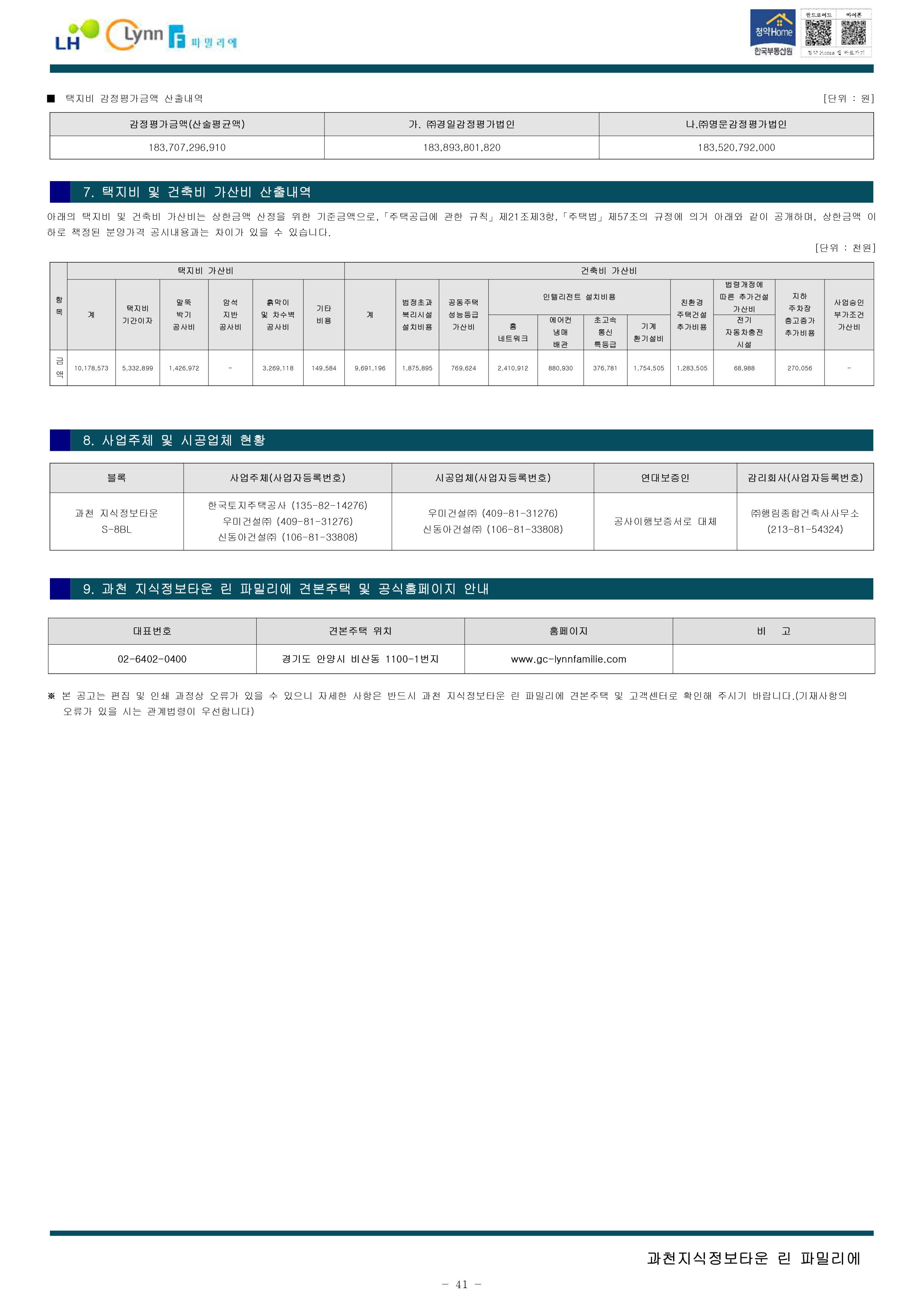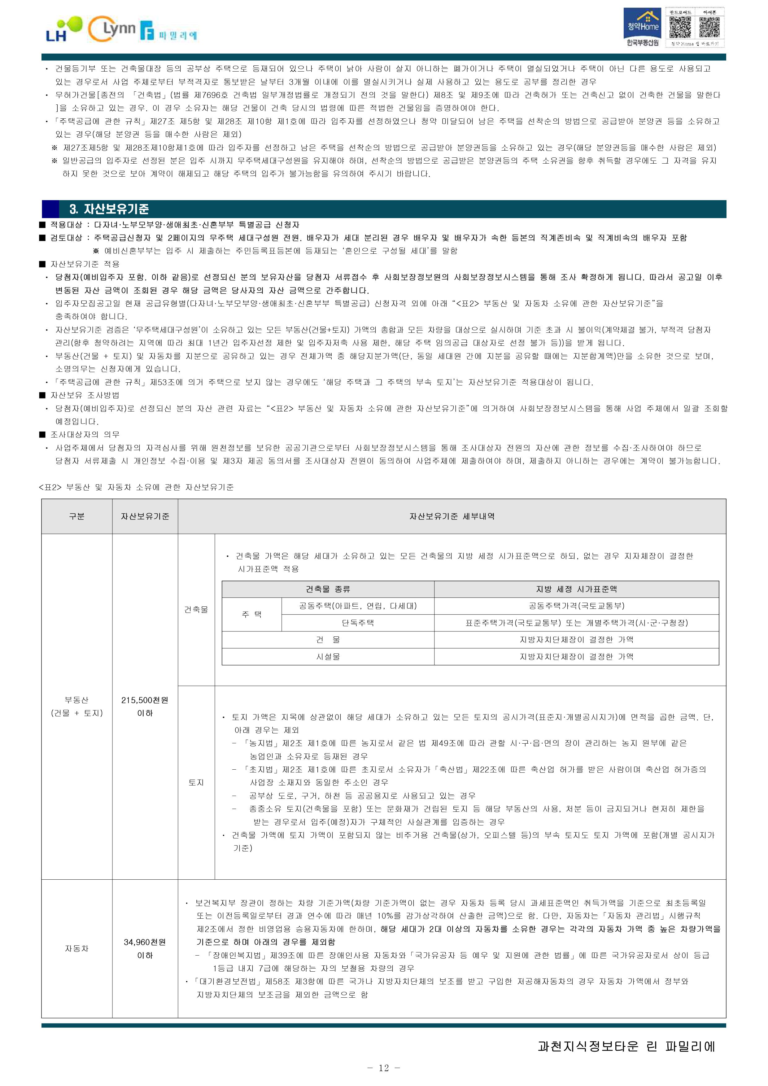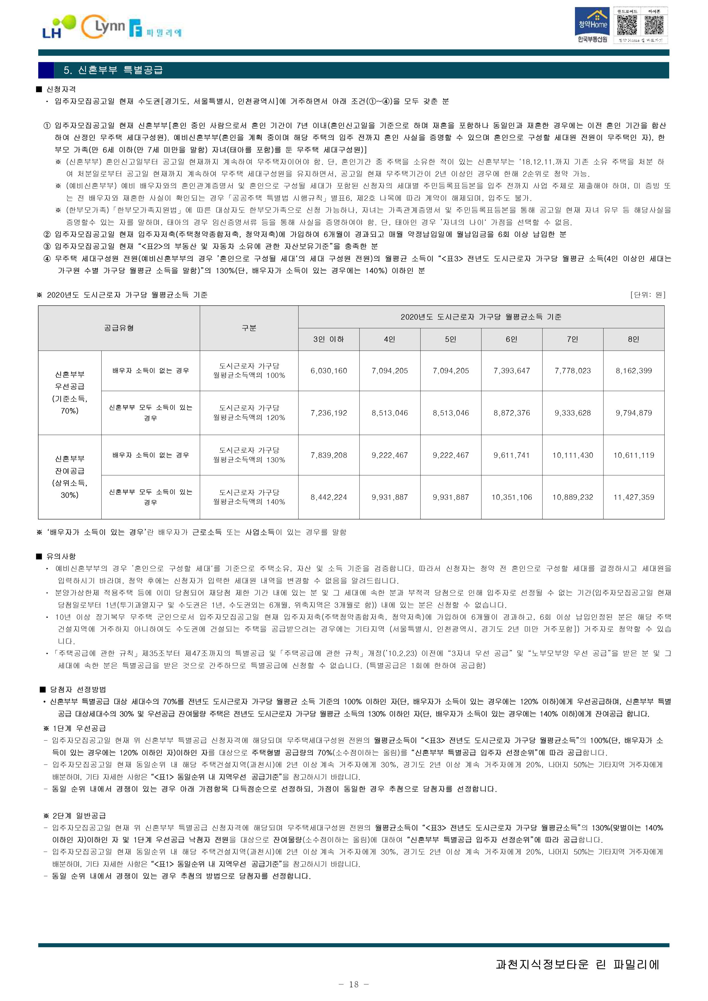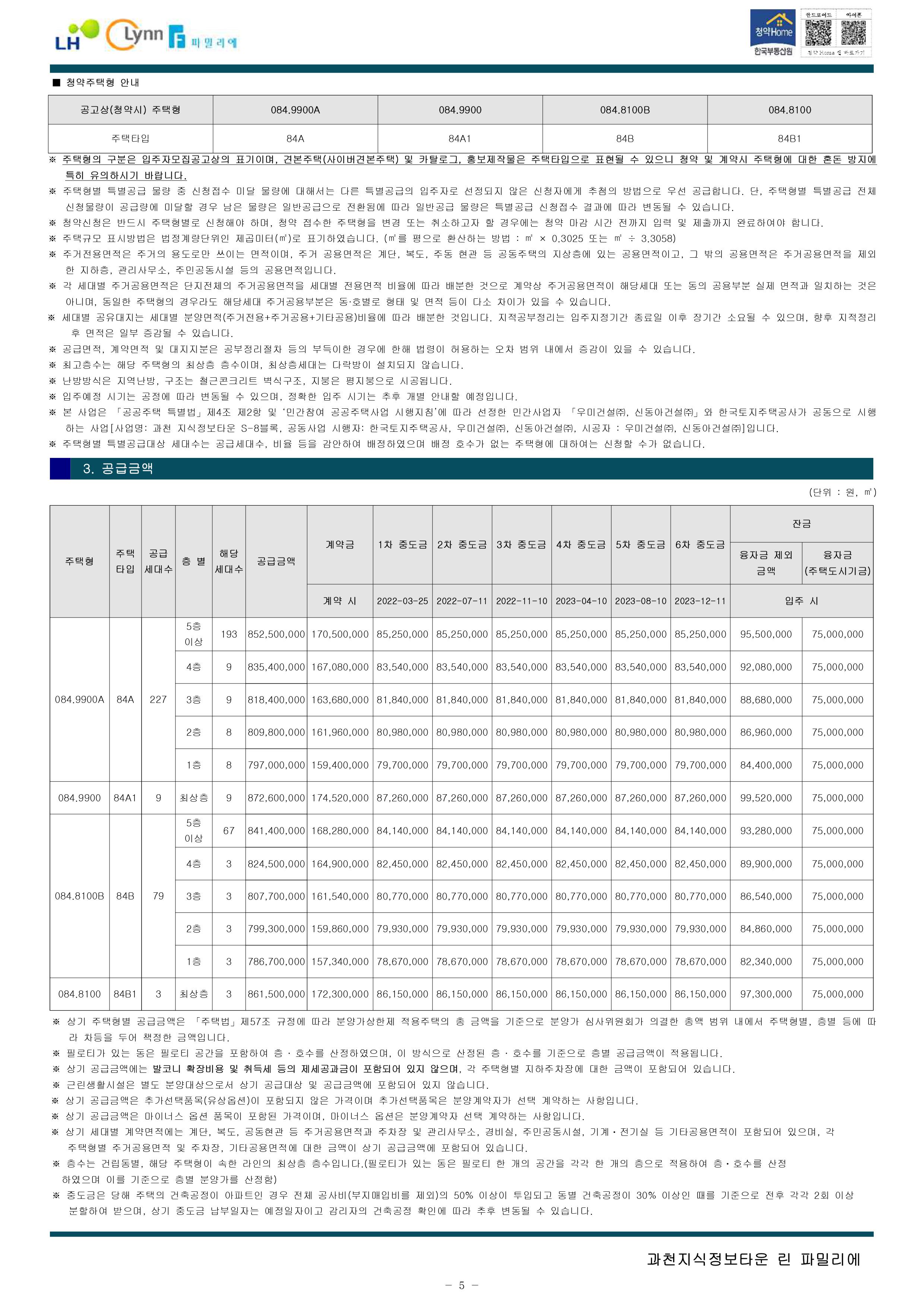 과천지식정보타운 린파밀리에 공옹분양주택 입주자 모집 공고문입니다.