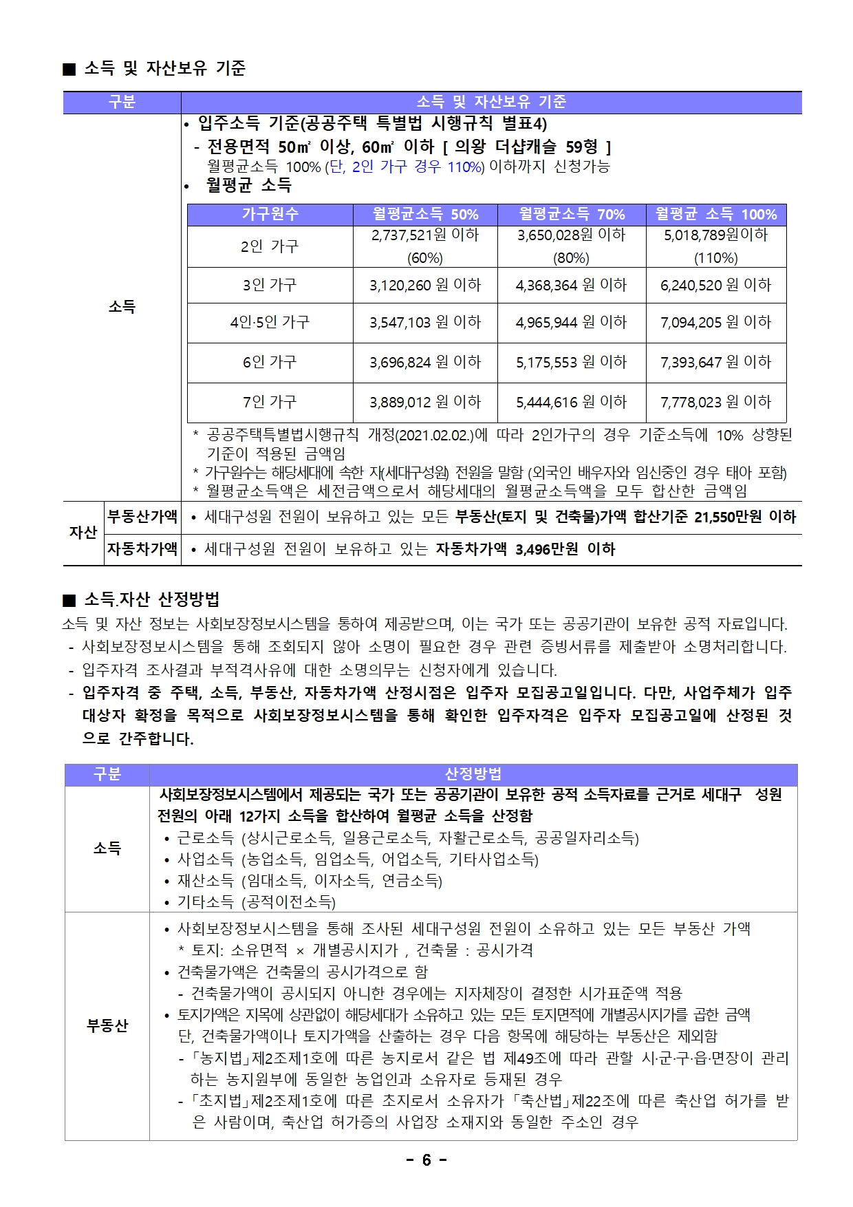 □ 공급대상자 : 공공주택 특별법에 따라 성년자인 무주택세대구성원으로서 유형별 소득, 자산, 자동차 보유기준 및 기타 관련법령에서 정한 요건을 충족하는 자
