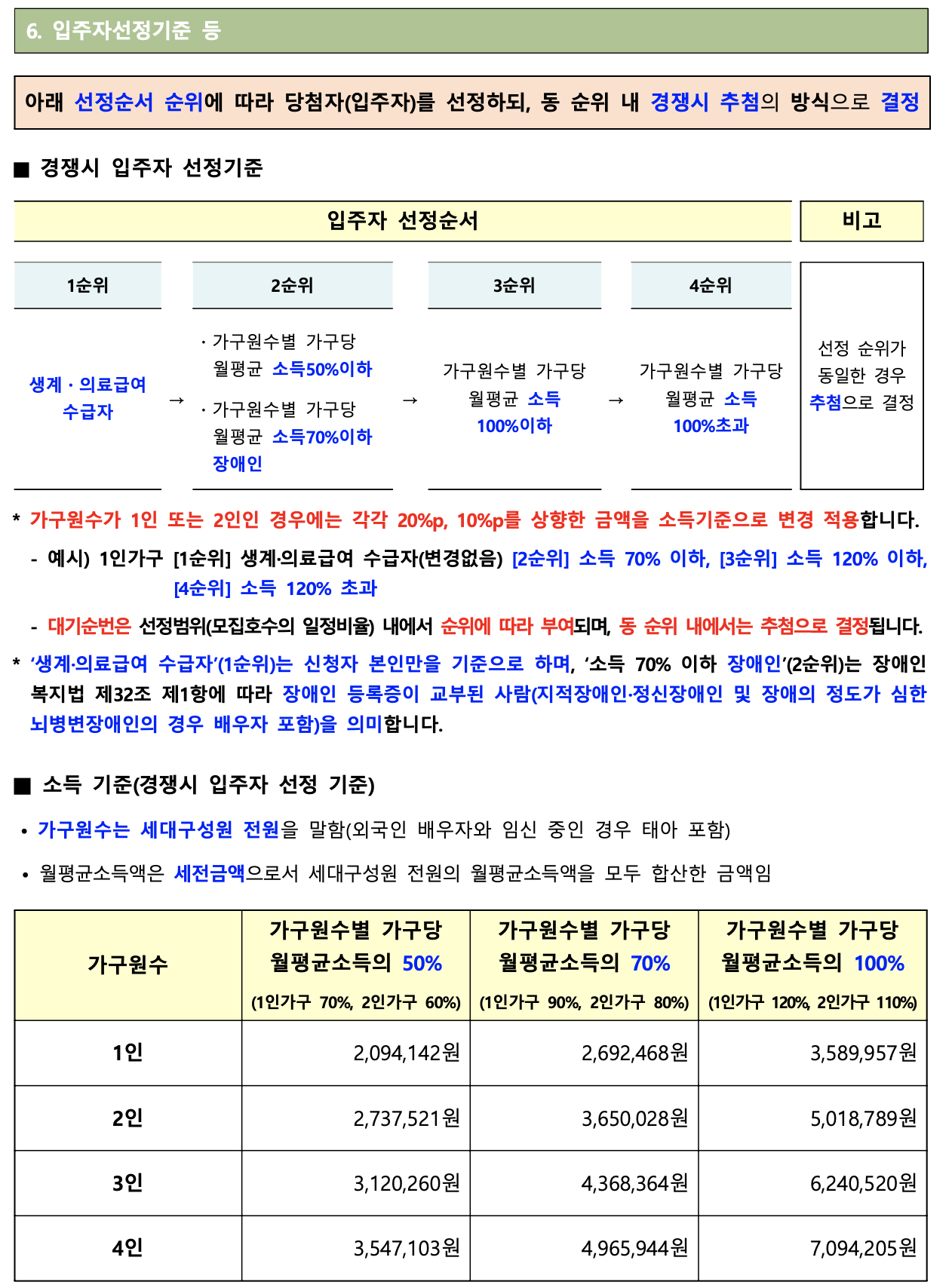 ▪ 본 모집은 추첨으로 당첨자를 선정하나, 경쟁 시 [6. 입주자 선정기준 등(5p)]을 따릅니다.