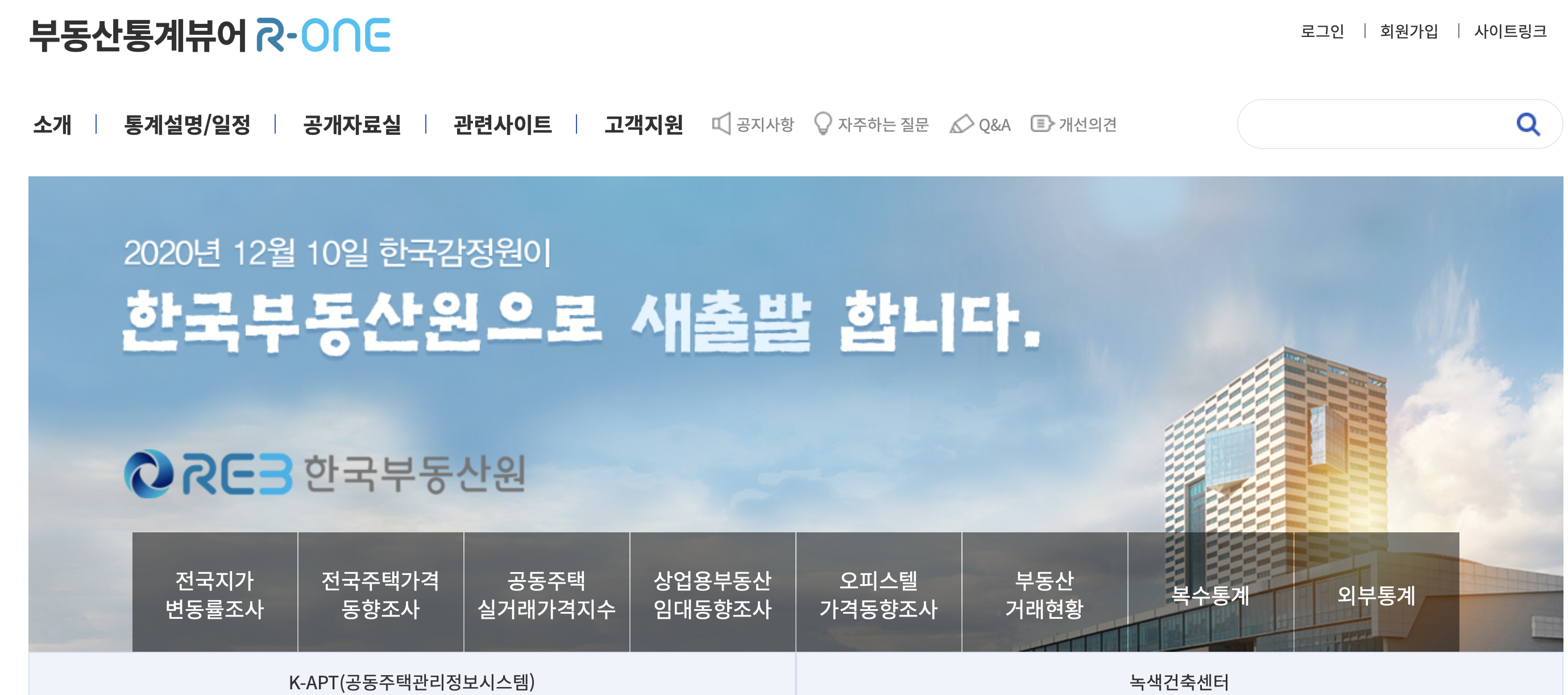 한국감정원-주택가격동향조사 https://www.r-one.co.kr/rone/resis/common/main/main.do