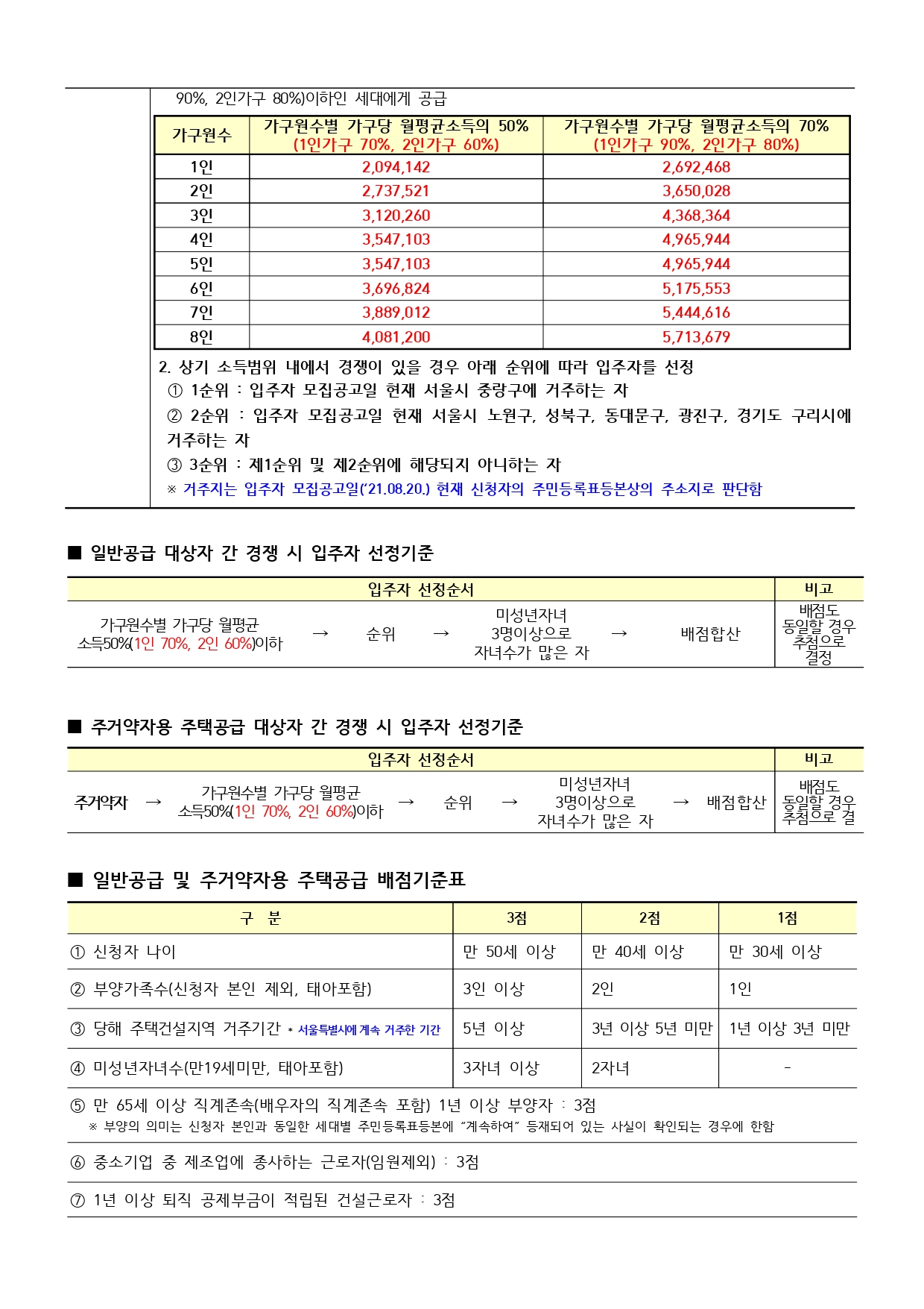 ▪ 월평균소득 50%이하자가 50%초과∼70%이하자 지정일에 신청하는 경우 50%초과∼70%이하자로 간주하며, 50%이하자 지정일의 신청접수 결과 후순위접수를 하지않는 경우에는 접수받지 않습니다.