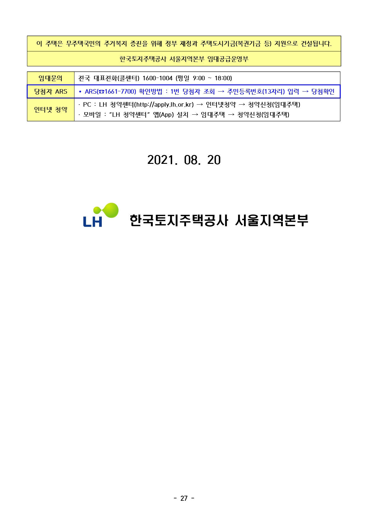 ▪ 본 모집공고문으로 안내하지 못한 단지여건, 주변환경 등이 있을 수 있으니 현장확인 후 신청하시기 바랍니다.