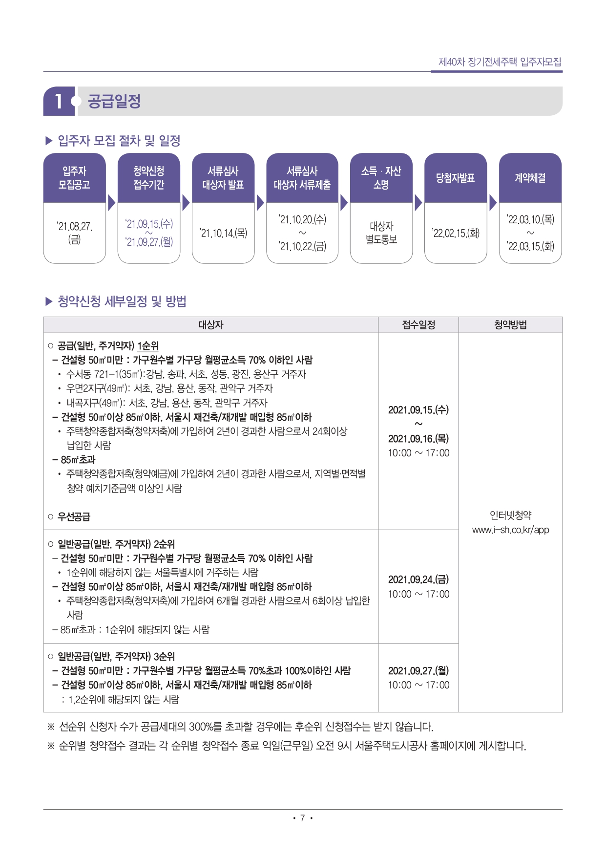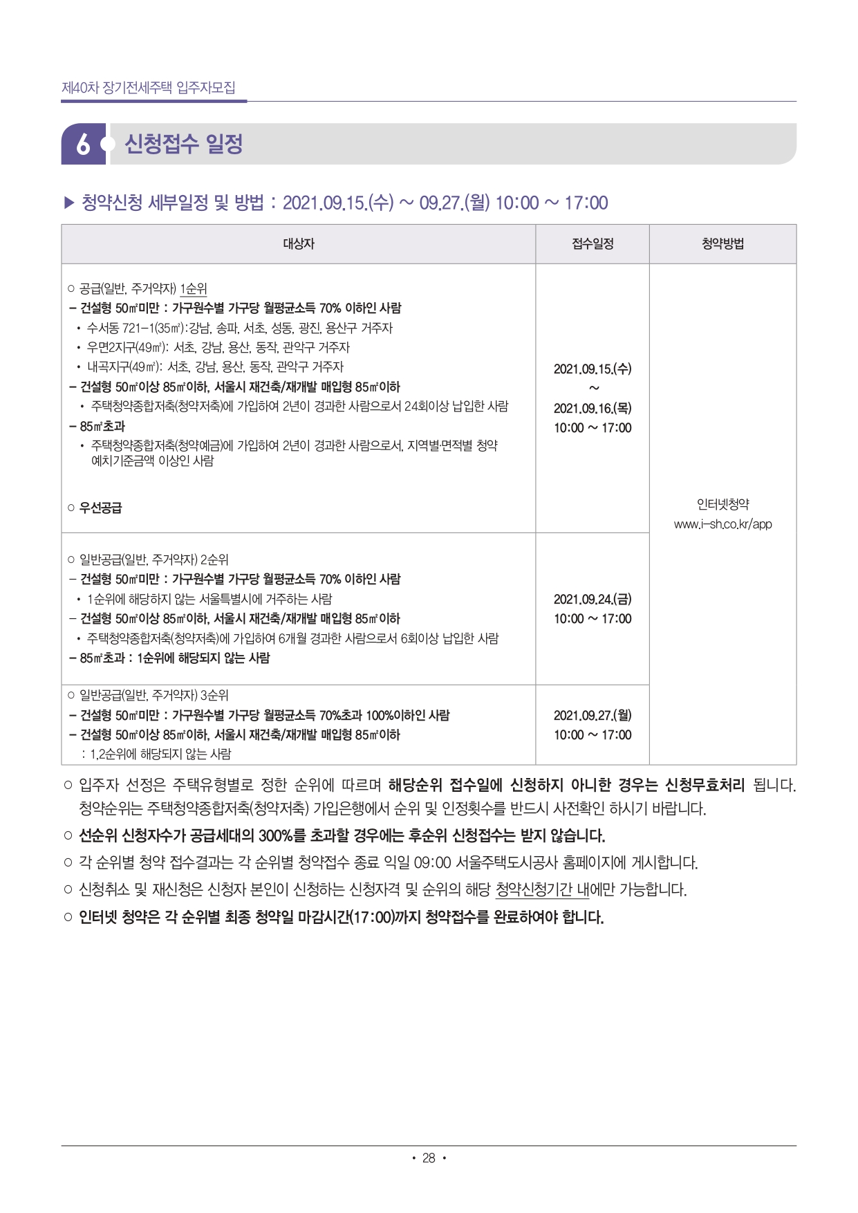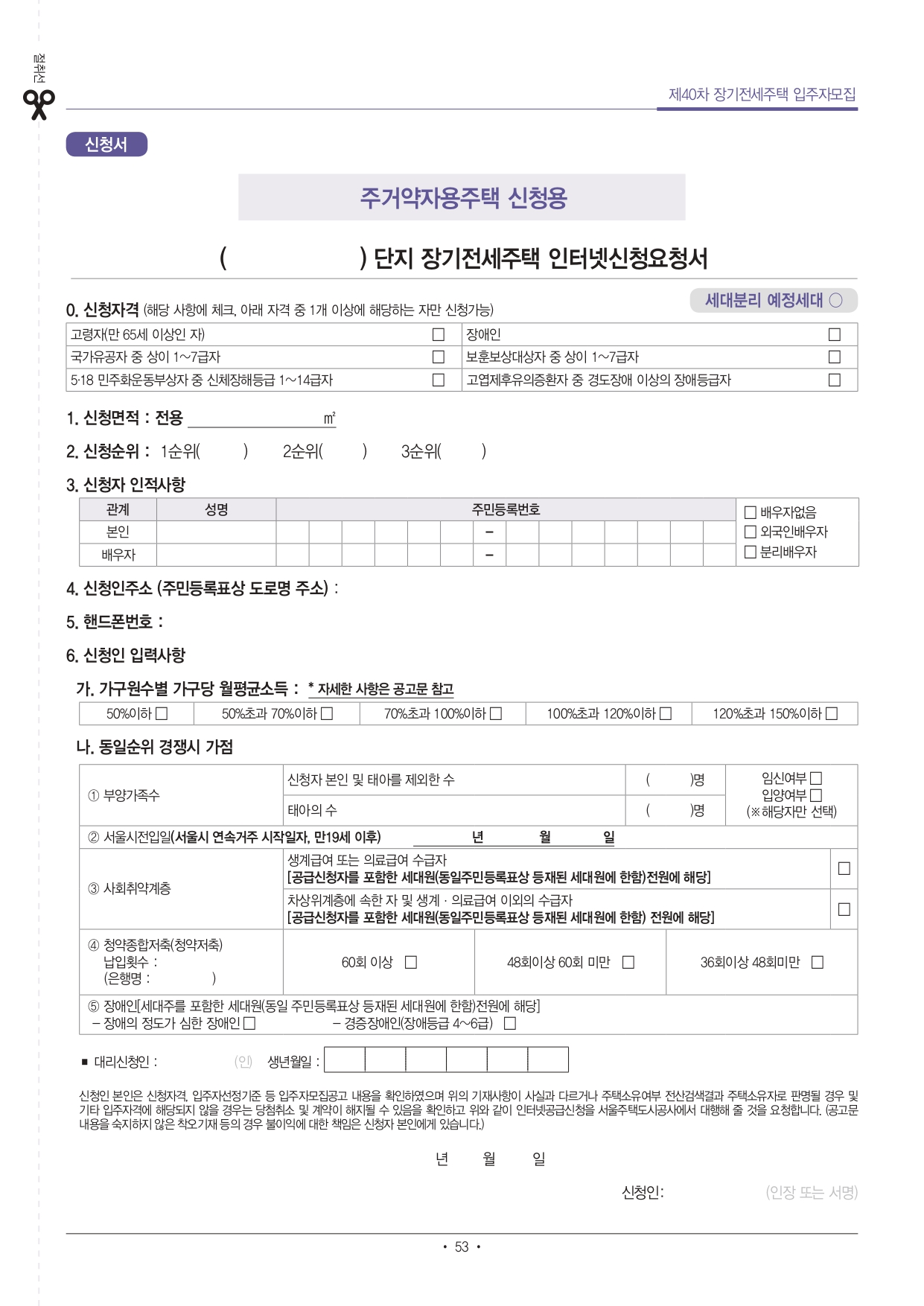 ■ 단독세대주(1인가구)는 전용 40㎡ 이하 주택만 신청 가능합니다.