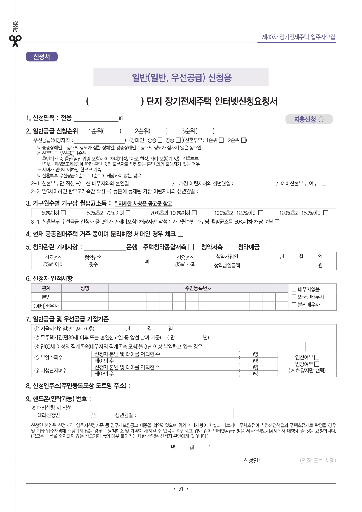 서울주택도시공사의 제40차 장기전세주택 입주자 모집공고입니다. 자세한 내용은 아래 리플릿을 참고하시기 바랍니다.
