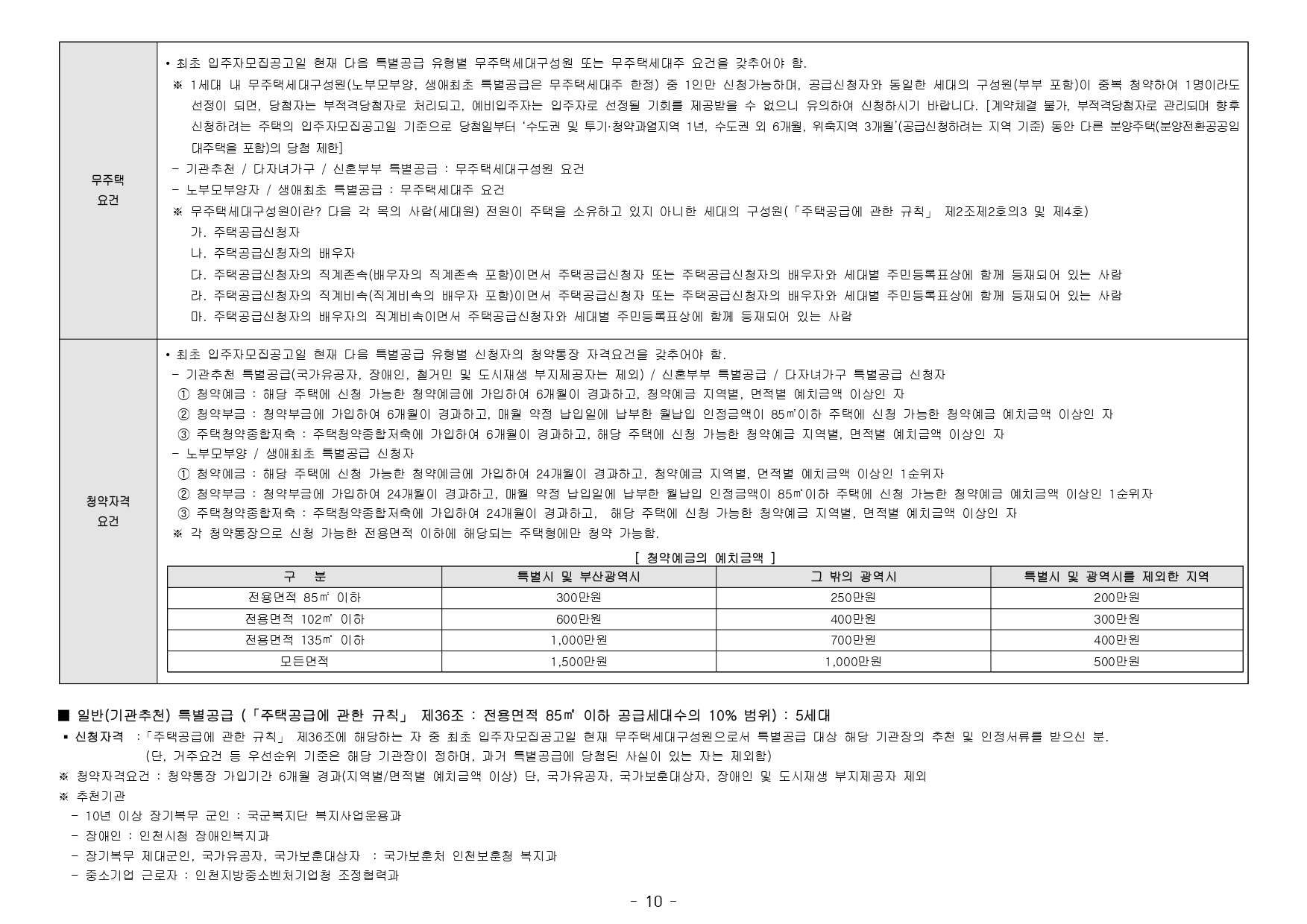 ■ 「주택공급에 관한 규칙」제4조, 제25조에 의거 주택건설지역인 인천시는 물론 수도권(서울특별시, 인천시, 경기도) 거주자까지 확대하여 공급합니다. 단, 동일 신청자격에서 경쟁이 있을 경우, 인천시 2년 이상 계속하여 거주한 신청자가 인천시 2년 미만 거주자 및 수도권(서울특별시, 경기도) 거주신청자보다 우선하며, 인천시 2년 미만 거주자, 수도권(서울특별시, 경기도) 거주신청자로 신청하신 분은 입주자선정 대상에서 제외될 수 있습니다.(인천시 2년 미만 거주 신청자의 경우 1순위 기타 청약일에 청약접수를 하여야함)