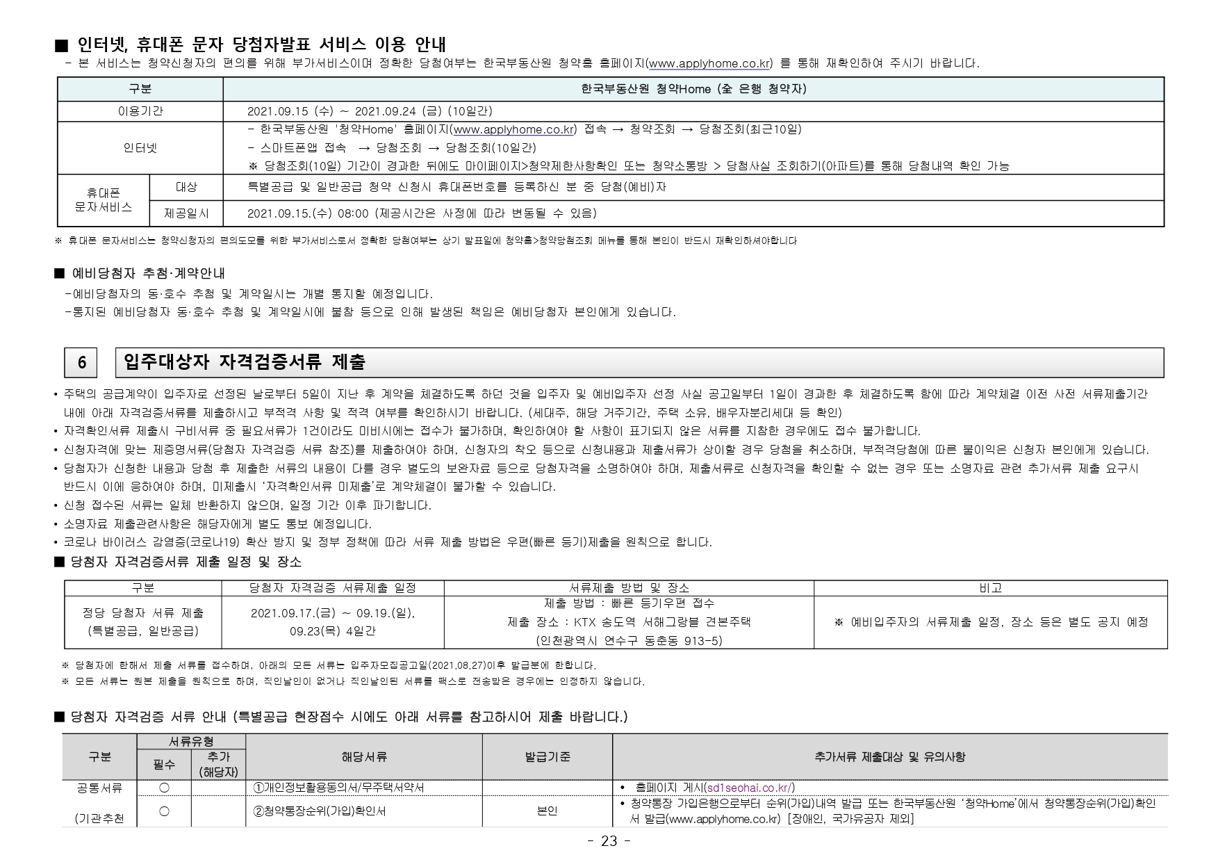 ■ 본 아파트의 최초 입주자모집공고일은 2021.08.27.(금)입니다.(청약자격조건의 기간, 나이, 지역우선 등의 청약자격조건 판단기준일입니다)