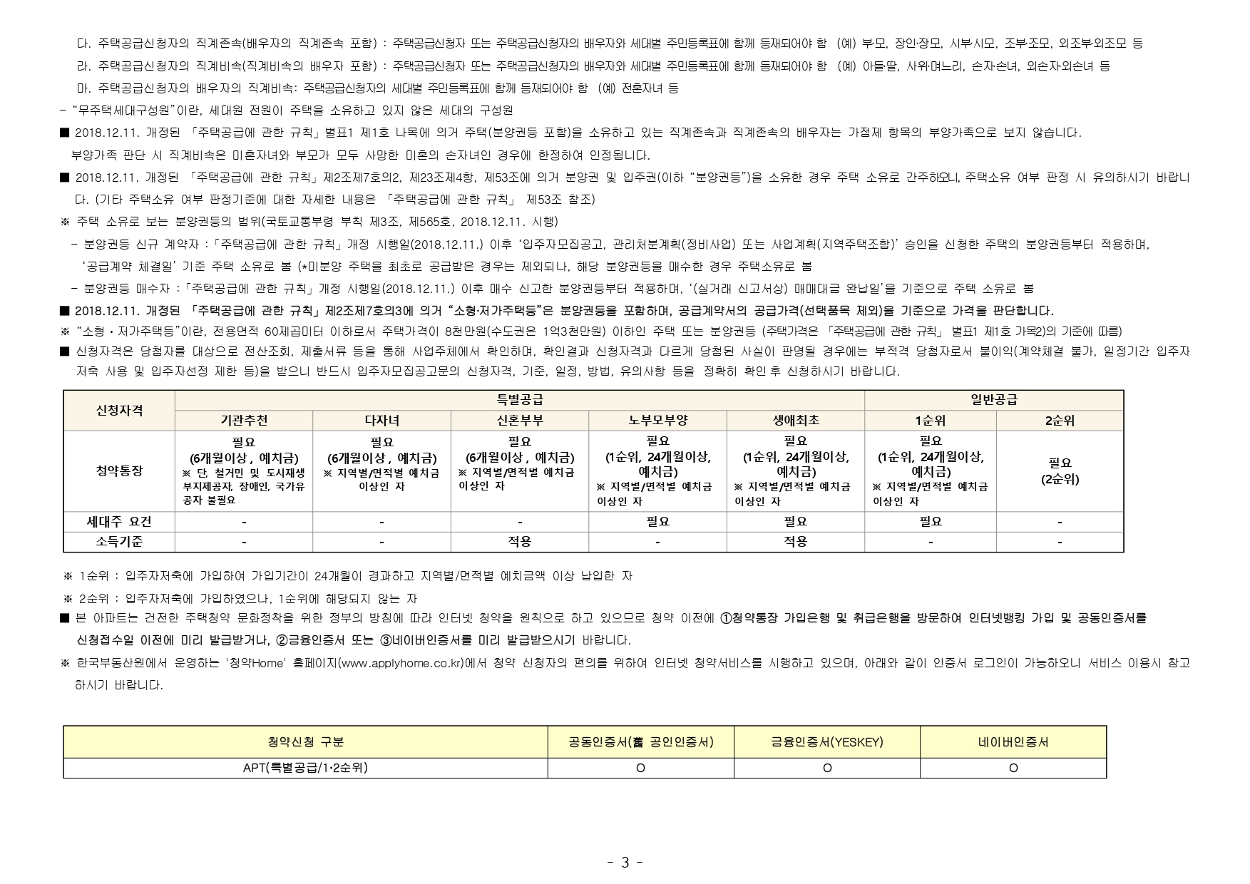 - 1순위 청약 접수를 입주자모집공고일 기준 주민등록표 등·초본상 거주지역 및 거주 기간에 따라 접수일을 구분하여 접수하오니 청약 접수일을 명확히 구분하여 부적격 처리, 당첨 취소 등의 불이익을 받지 않도록 유의하시기 바랍니다.
