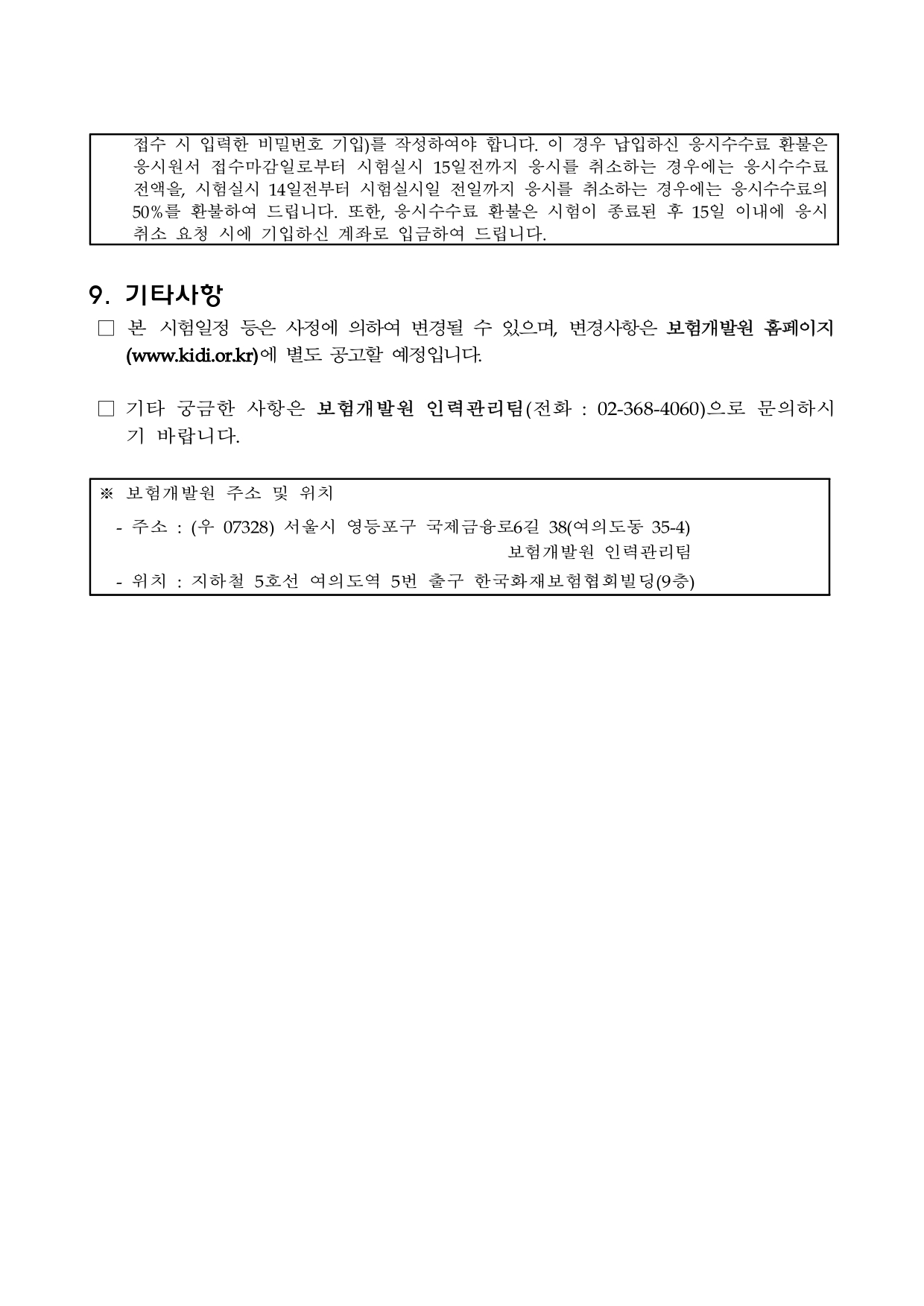 ☞ 우편발송 주소 : (우 07328) 서울시 영등포구 국제금융로6길 38, 보험개발원 9층 인력관리팀