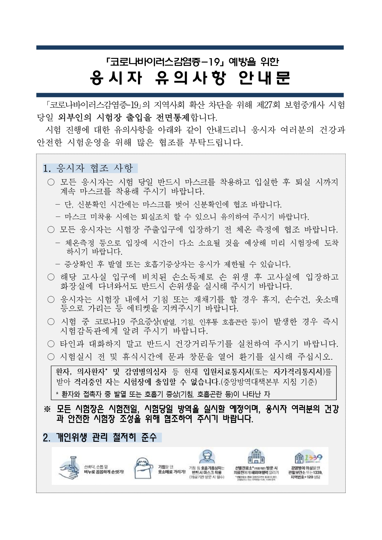 2021년도 제27회 보험중개사 시험 시행계획 공고문 안내입니다.
