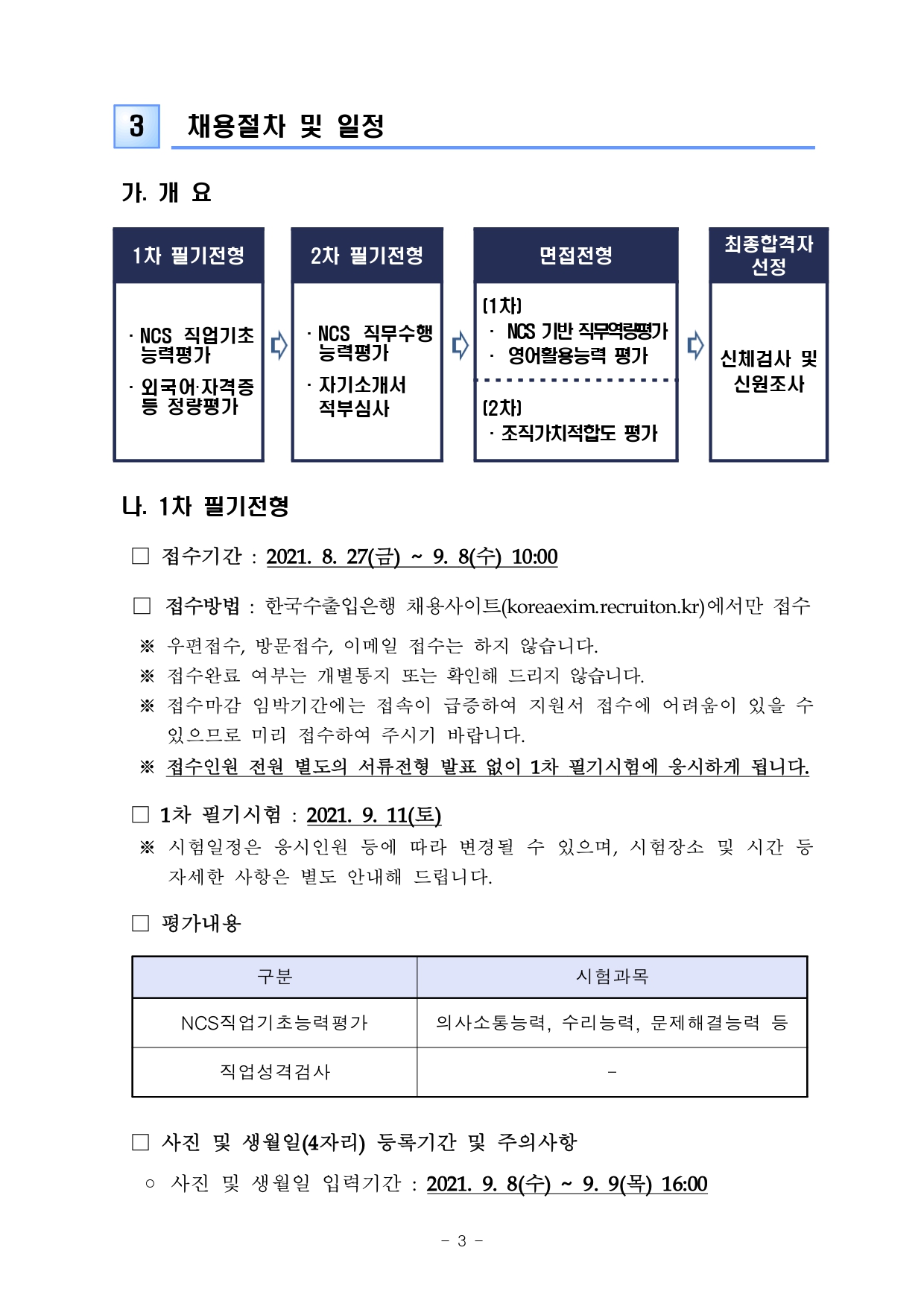 * 단, 지역전문가 전형으로 지원시 경영·경제 분야로 필기시험 응시
