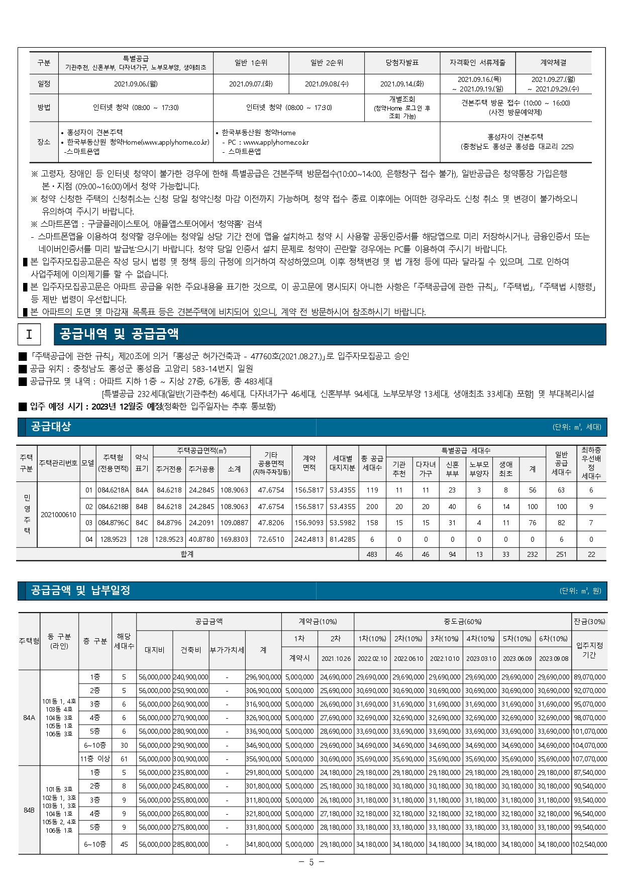 ▌해당 주택건설지역인 충청남도 홍성군은 「주택법」 제63조 및 제63조의2에 의한 비투기과열지구 및 비청약과열지역으로서, 본 아파트는 「주택공급에 관한 규칙」 에 따라 1주택 이상 소유하신 분도 청약 1순위 자격이 부여됩니다.