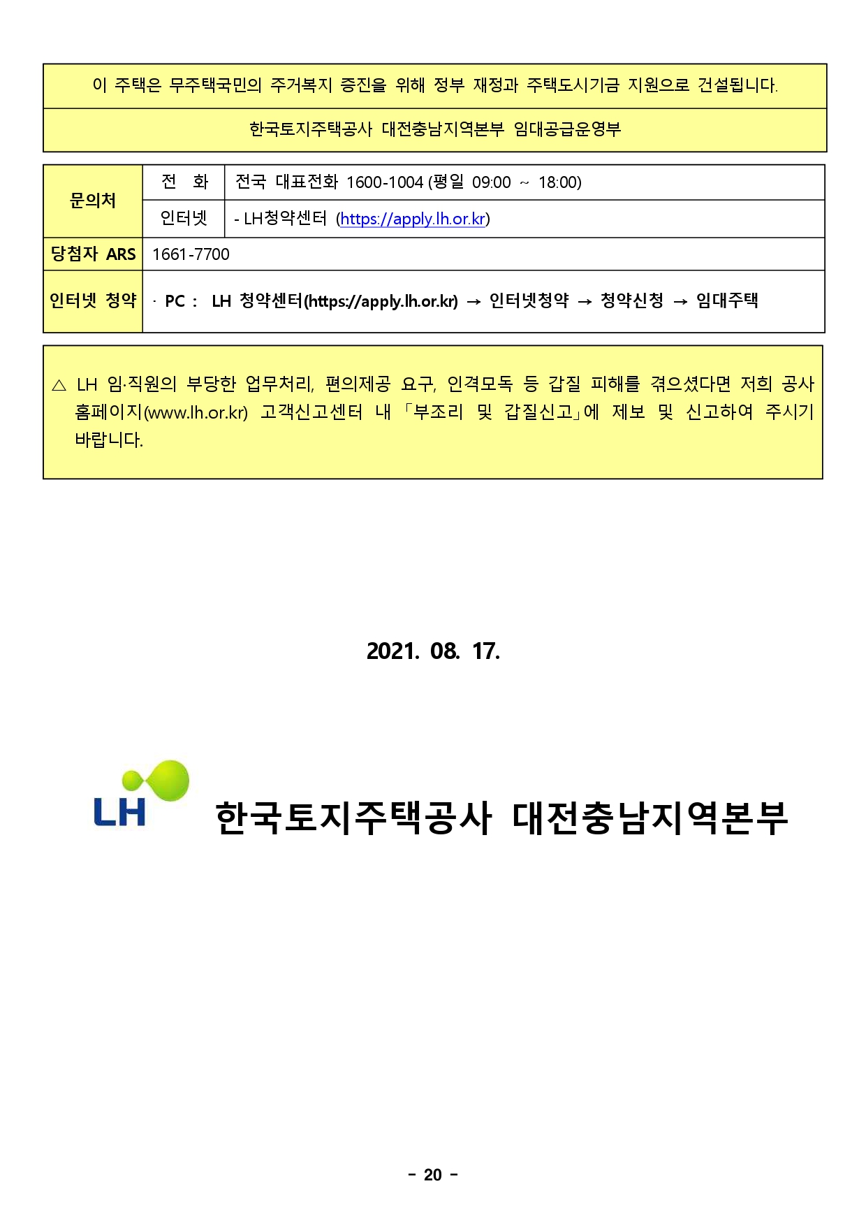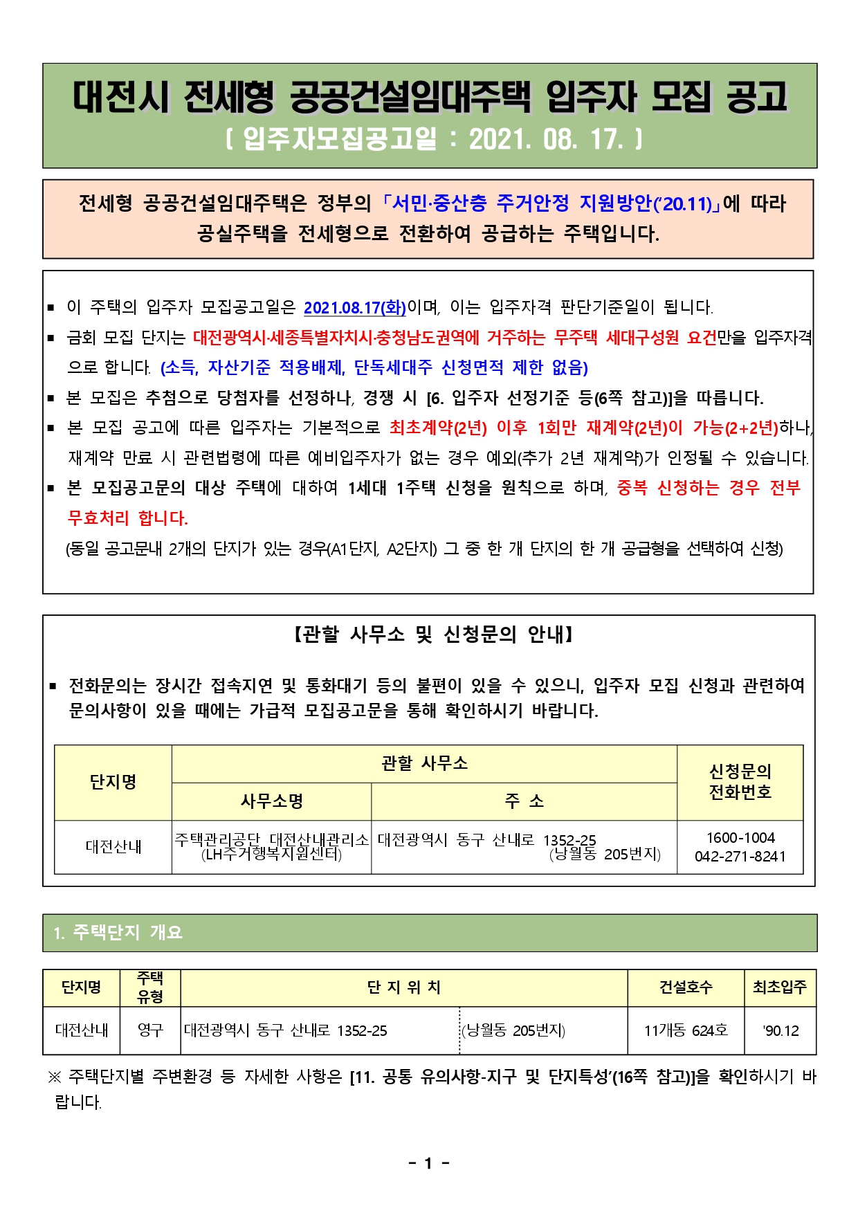 ▪ 이 주택의 입주자 모집공고일은 2021.08.17(화)이며, 이는 입주자격 판단기준일이 됩니다.