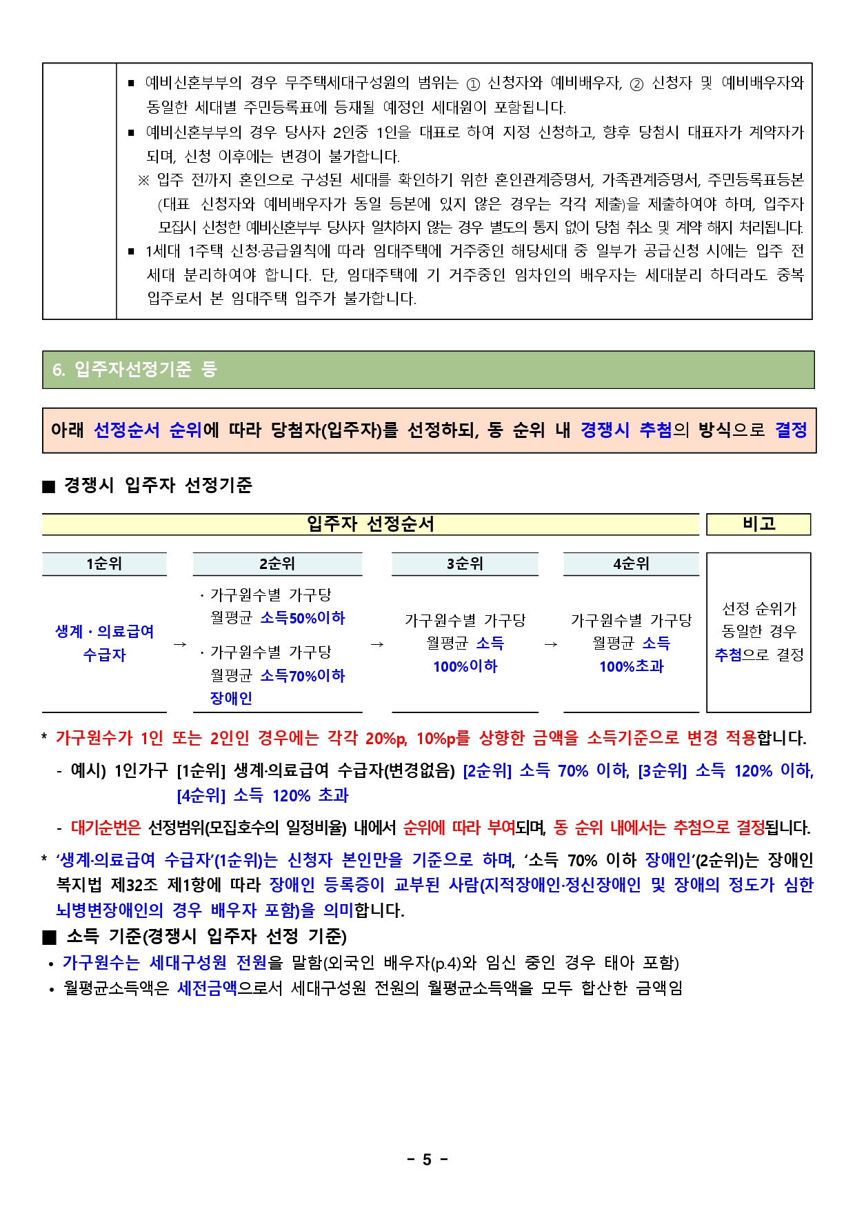 ▪ 본 모집은 추첨으로 당첨자를 선정하나, 경쟁 시 [6. 입주자 선정기준 등(6쪽 참고)]을 따릅니다.