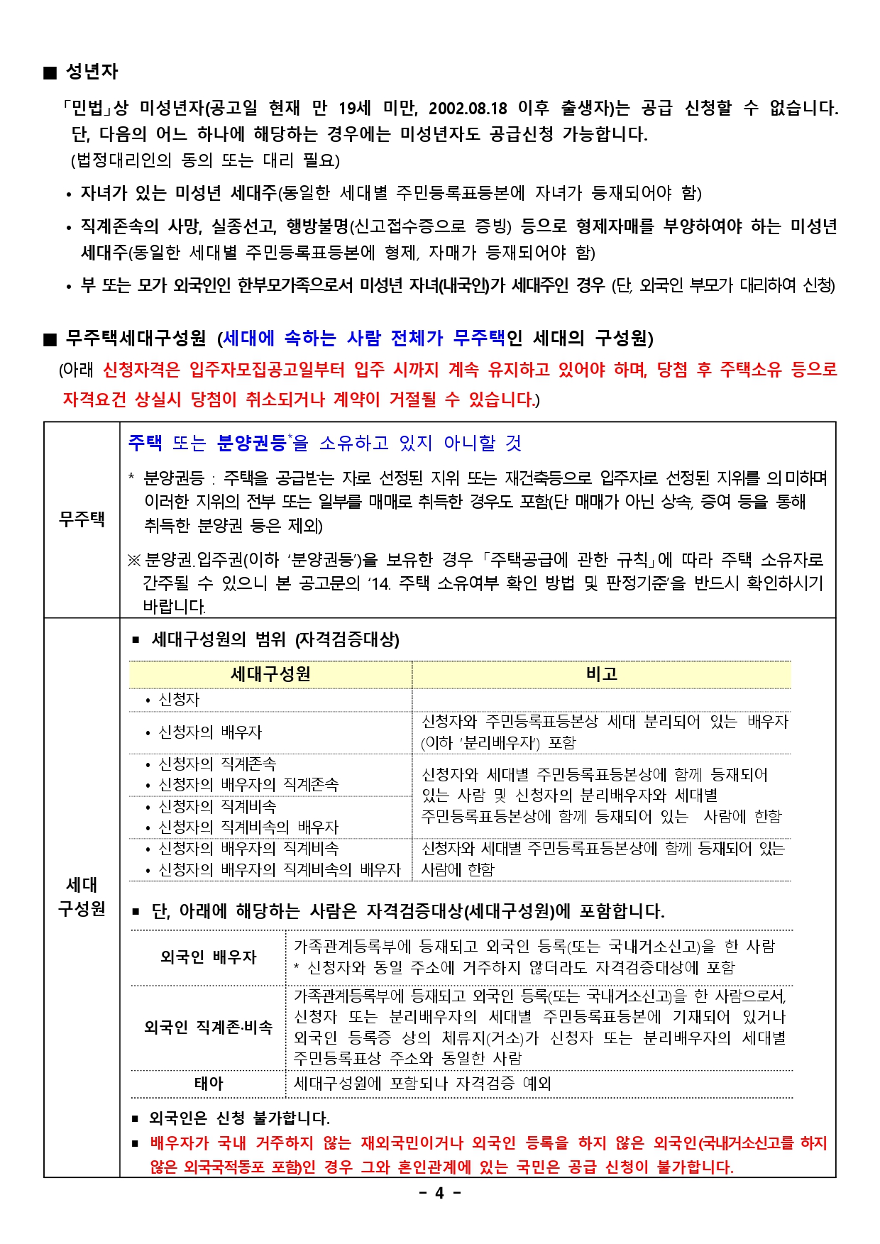 으로 합니다. (소득, 자산기준 적용배제, 단독세대주 신청면적 제한 없음)