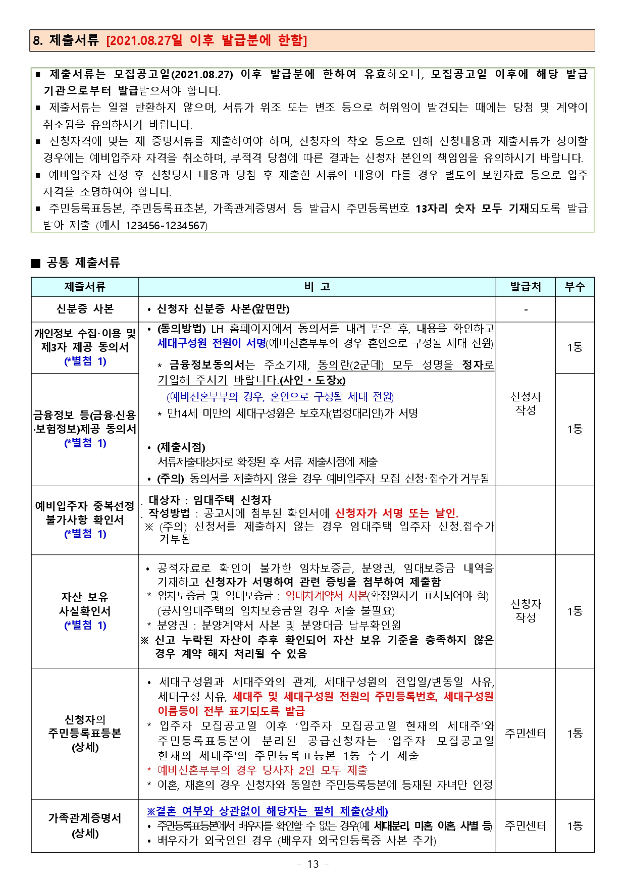 | 주택명 | 2021.08.27. LH 국민임대 예비입주자 모집공고 |