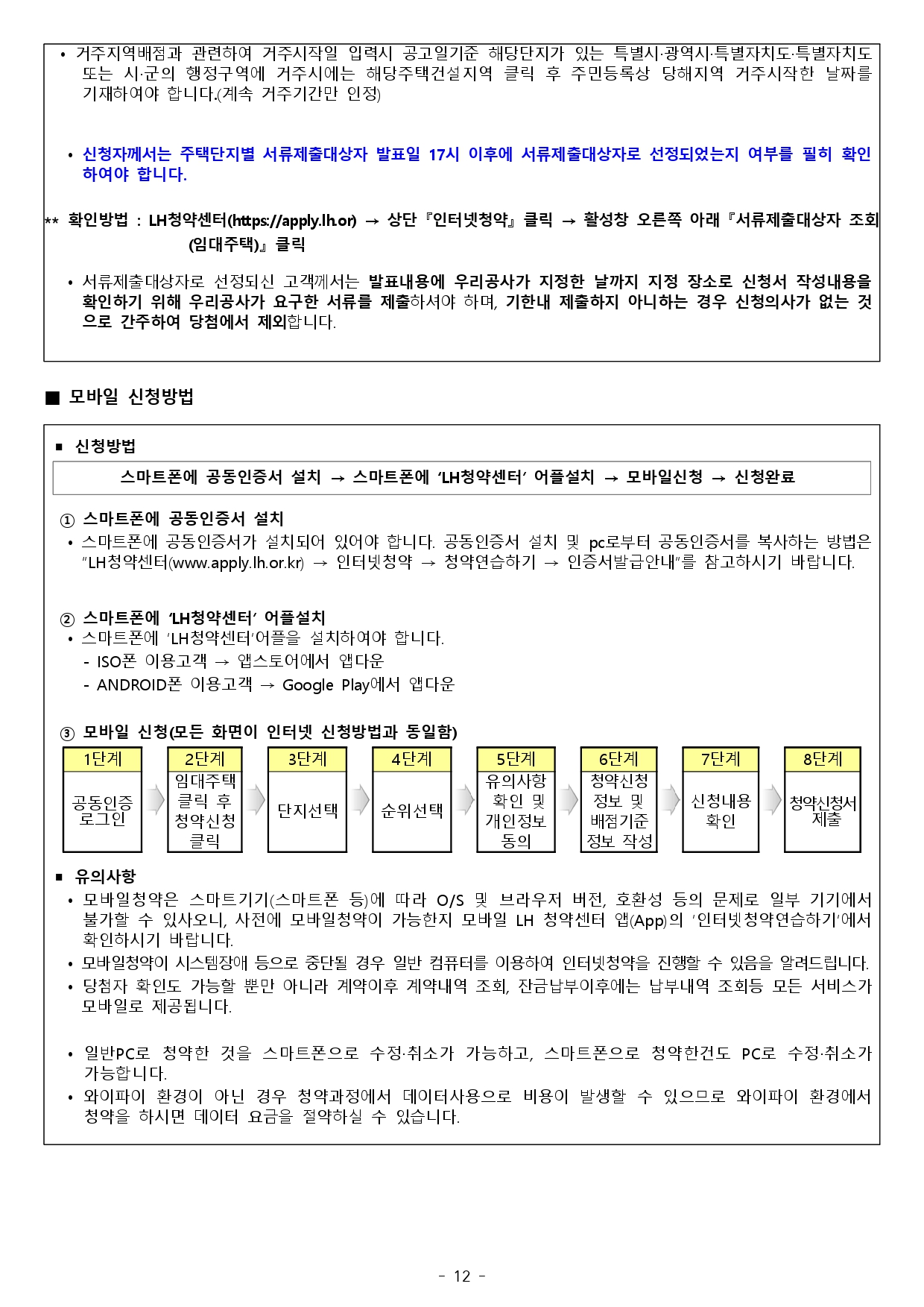 ▪ 전국적인 사회적 거리두기 및 코로나19 확진자의 증가로 인하여 고객님의 안전을 위해 가급적 인터넷(https://apply.lh.or.kr) 또는 모바일(App명칭 : LH청약센터)으로 신청하여 주시기 바랍니다.