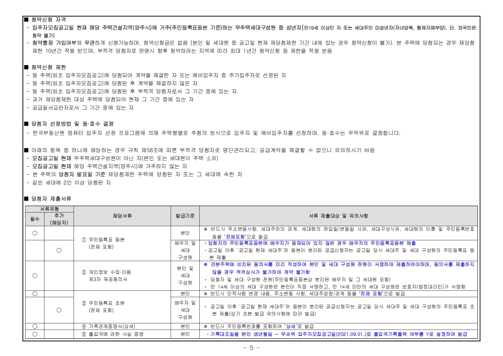 ■ 본 아파트는 「주택공급에 관한 규칙」 제19조제5항제2호에 따라 공급하는 주택으로 입주자모집공고일 현재 세대구성원 전원이 동 규칙 제54조에 따른 재당첨제한기간 적용받지 아니한 자만 청약신청 가능합니다. 이를 위반하여 청약하여 당첨된 경우에는 부적격 당첨자로 처리되오니 유의하시기 바라며, 청약신청 자격 및 당첨자 선정 방법 등 세부사항은 본 입주자모집공고문을 참고하시기 바랍니다.