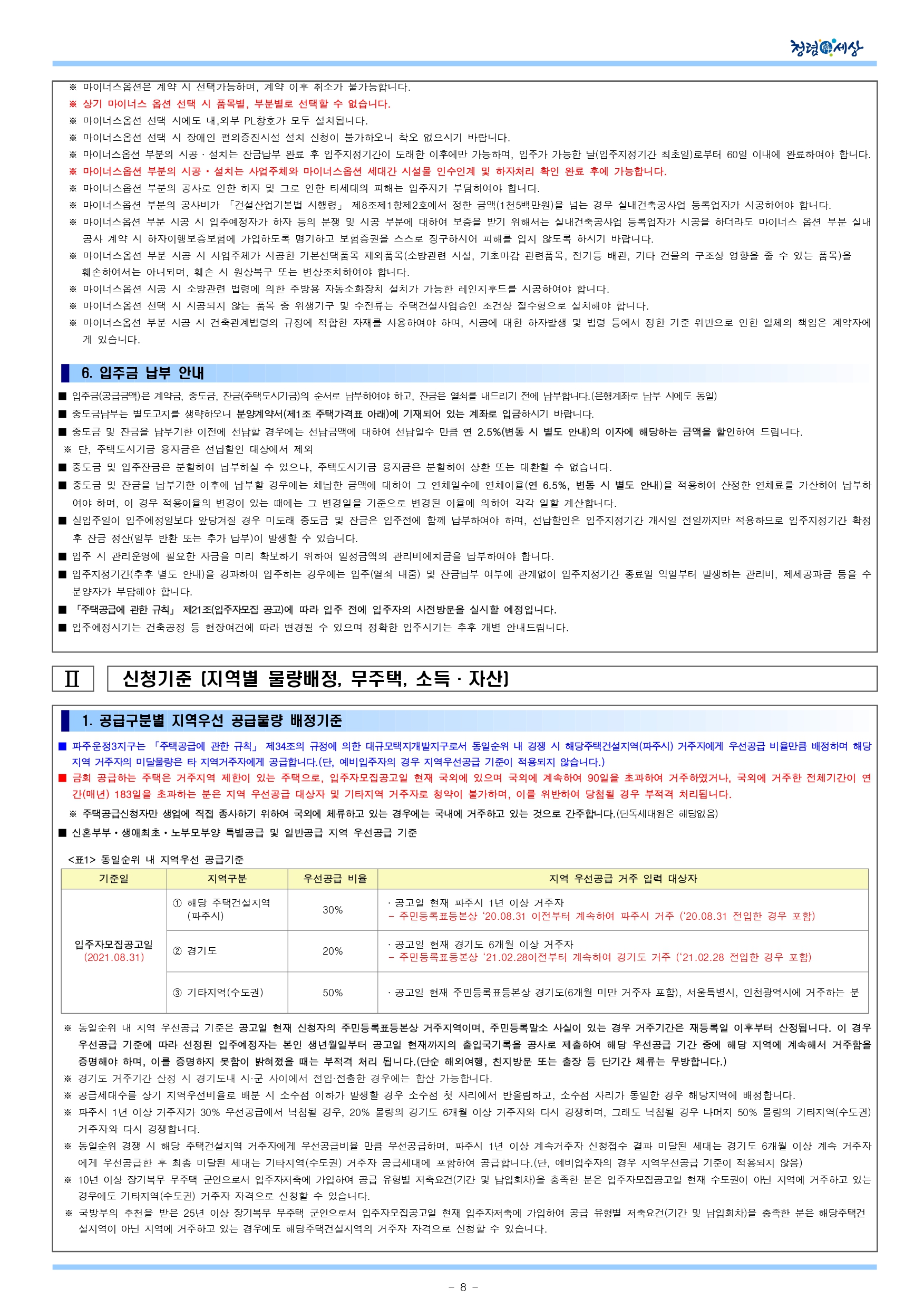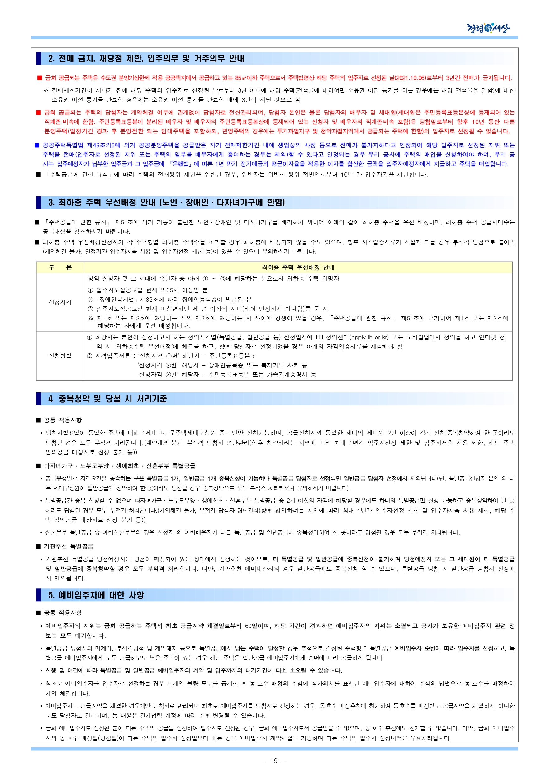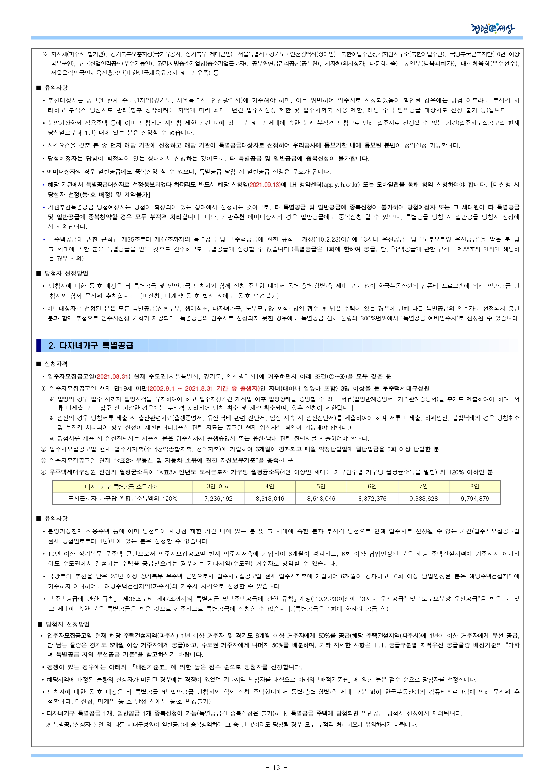 ■ 이 주택의 입주자모집공고일은 2021.08.31(화)이며, 이는 청약자격(청약신청, 자격조건의 기간, 나이, 세대구성원, 지역우선, 주택소유 등)의 판단기준일이 됩니다.