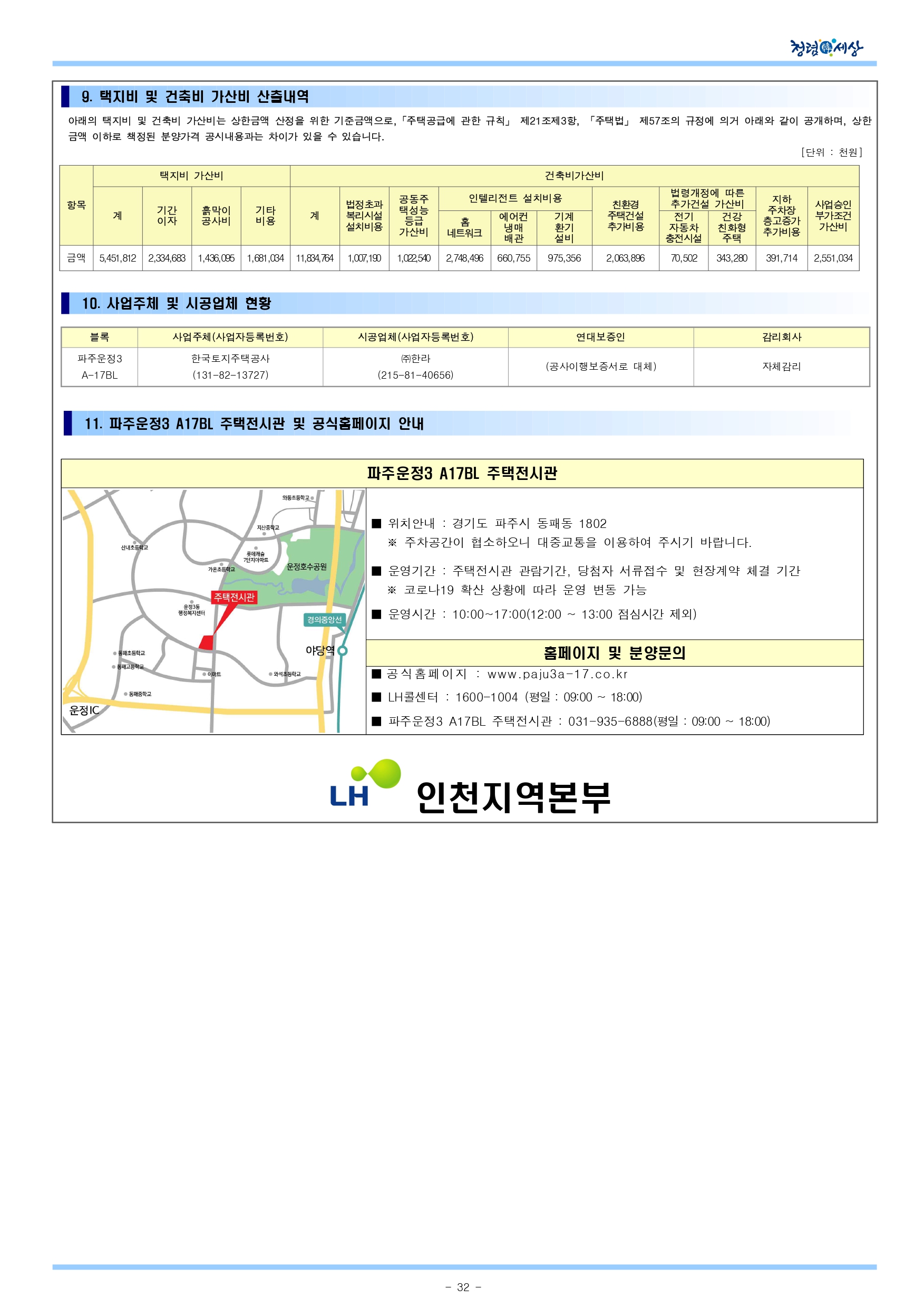 파주 운정3 A17블록 공공분양주택 입주자 모집공고(8.31) 입니다.