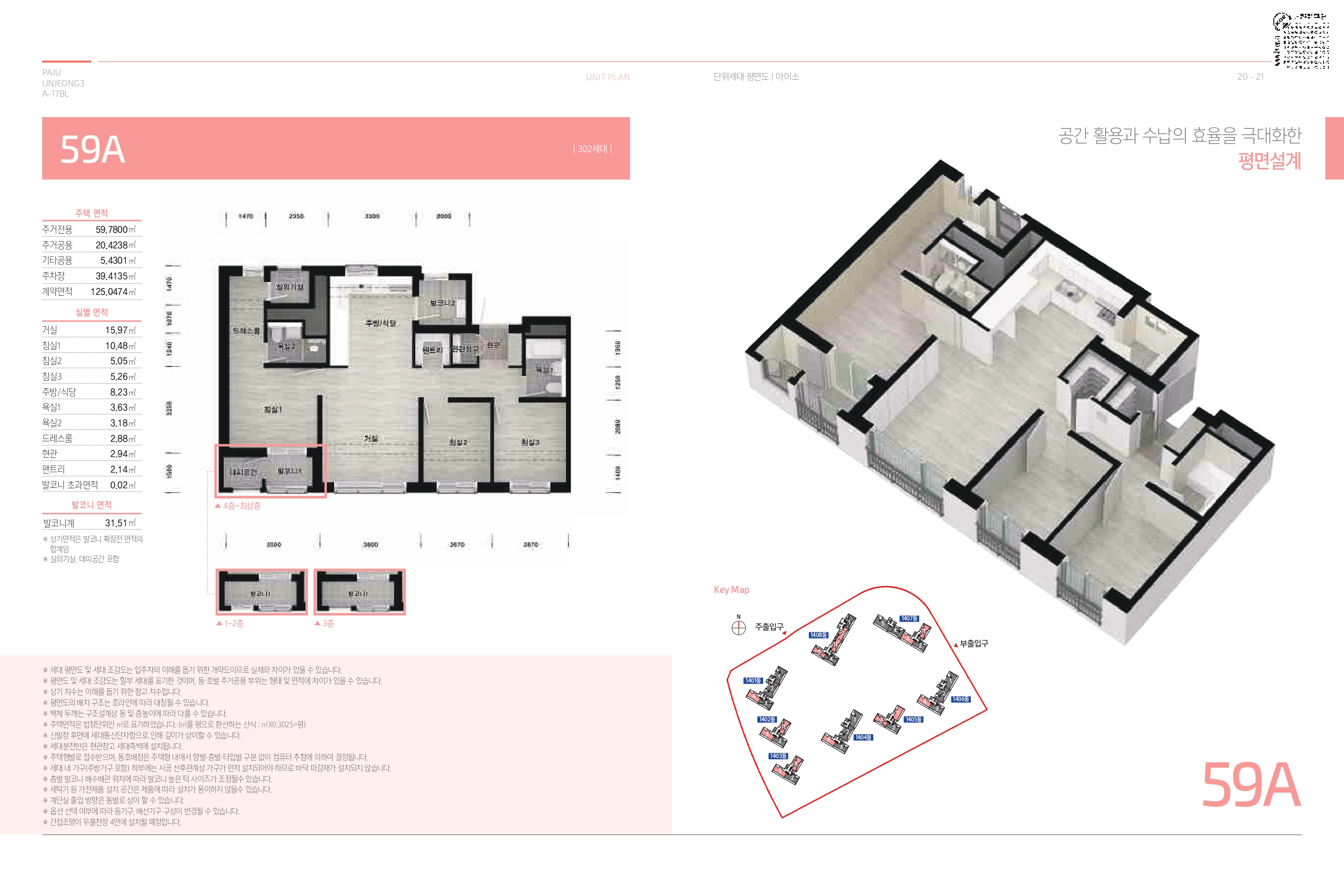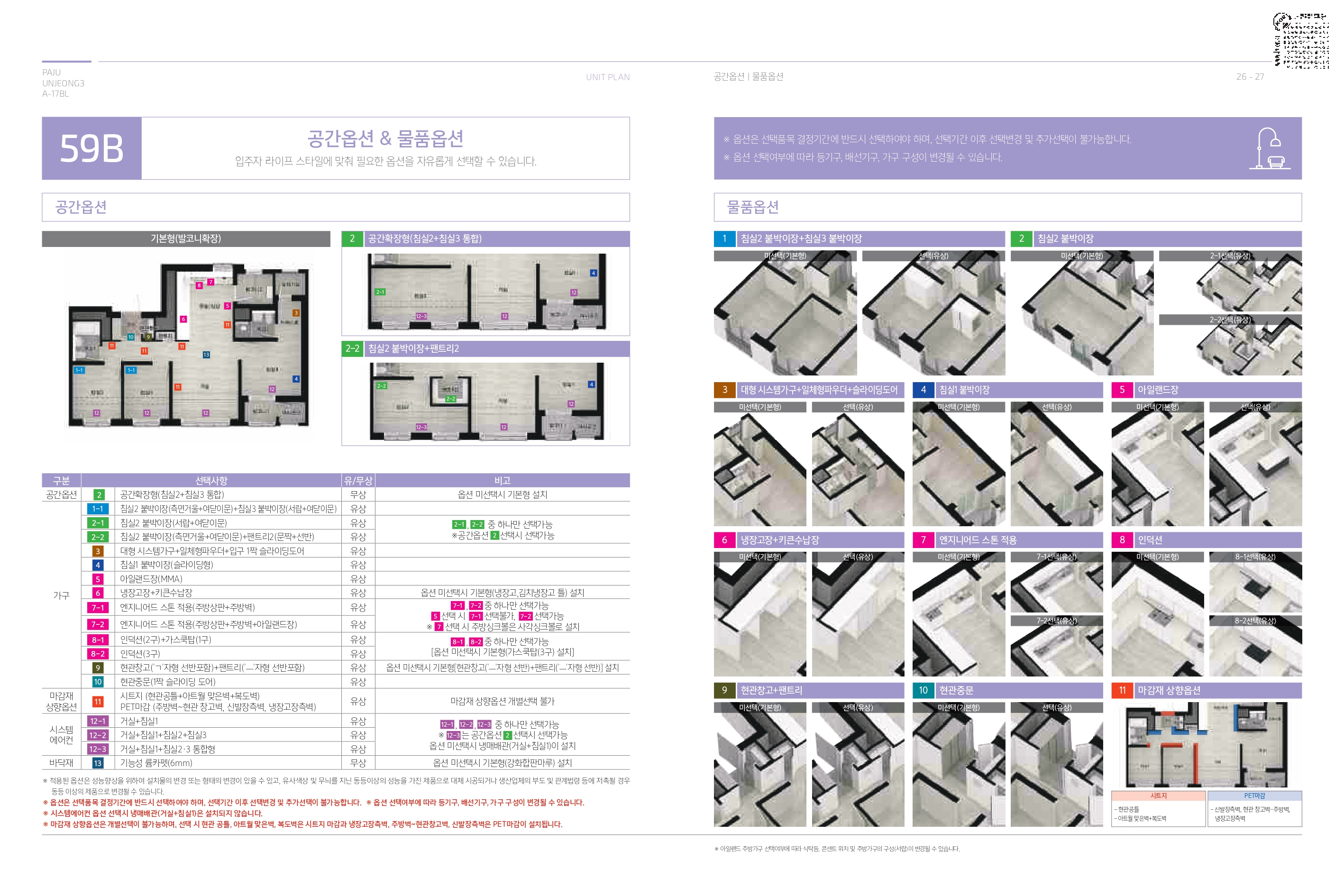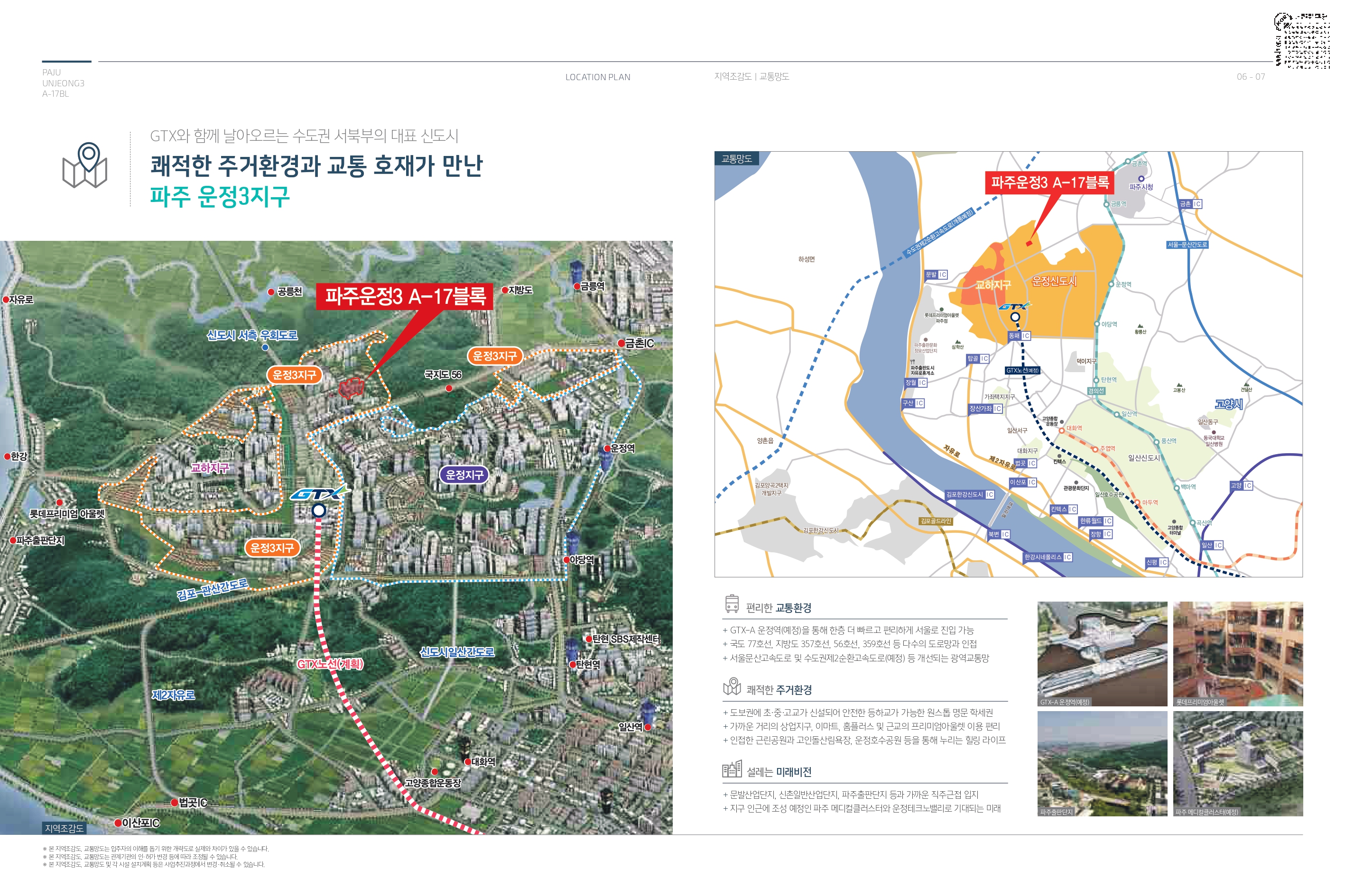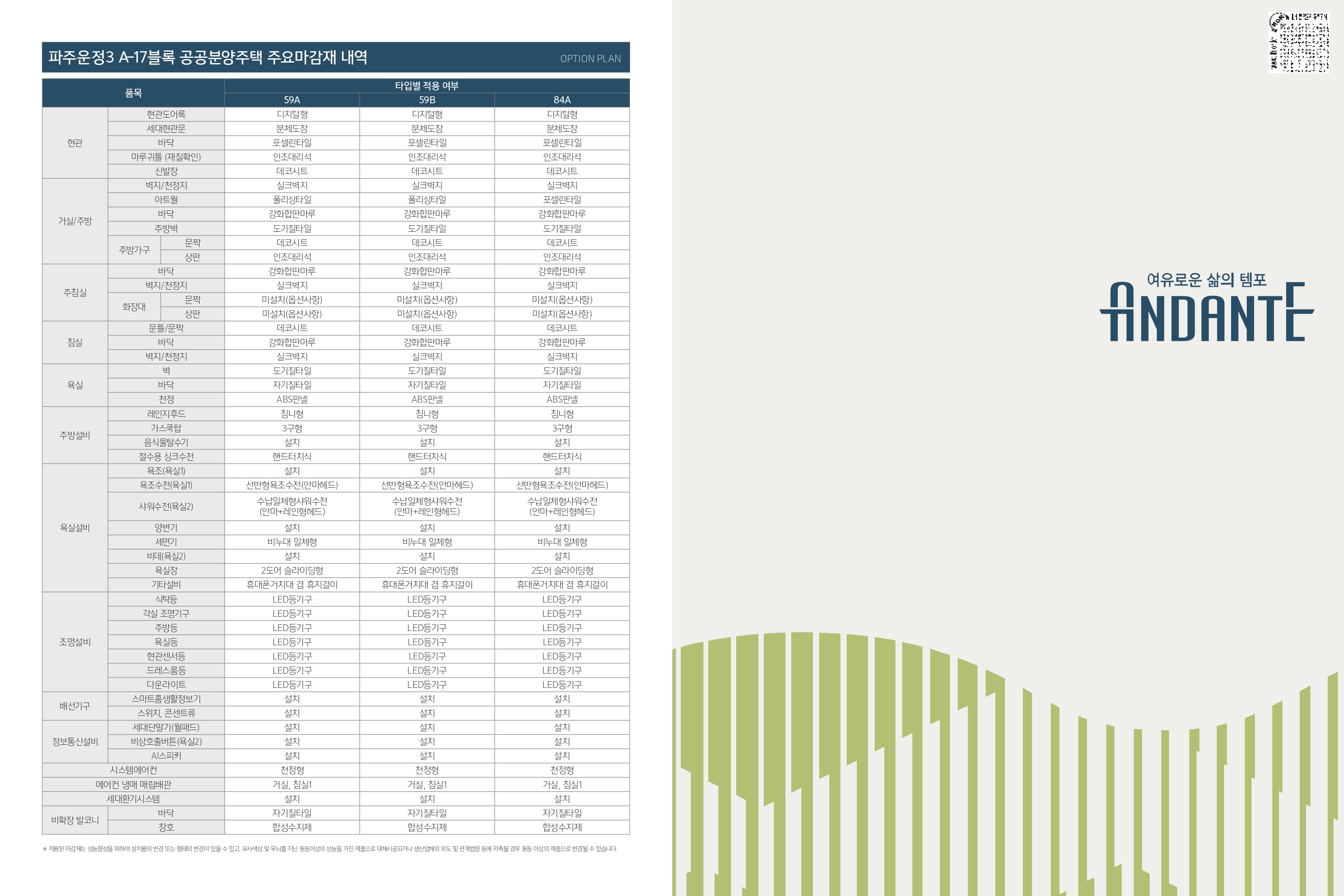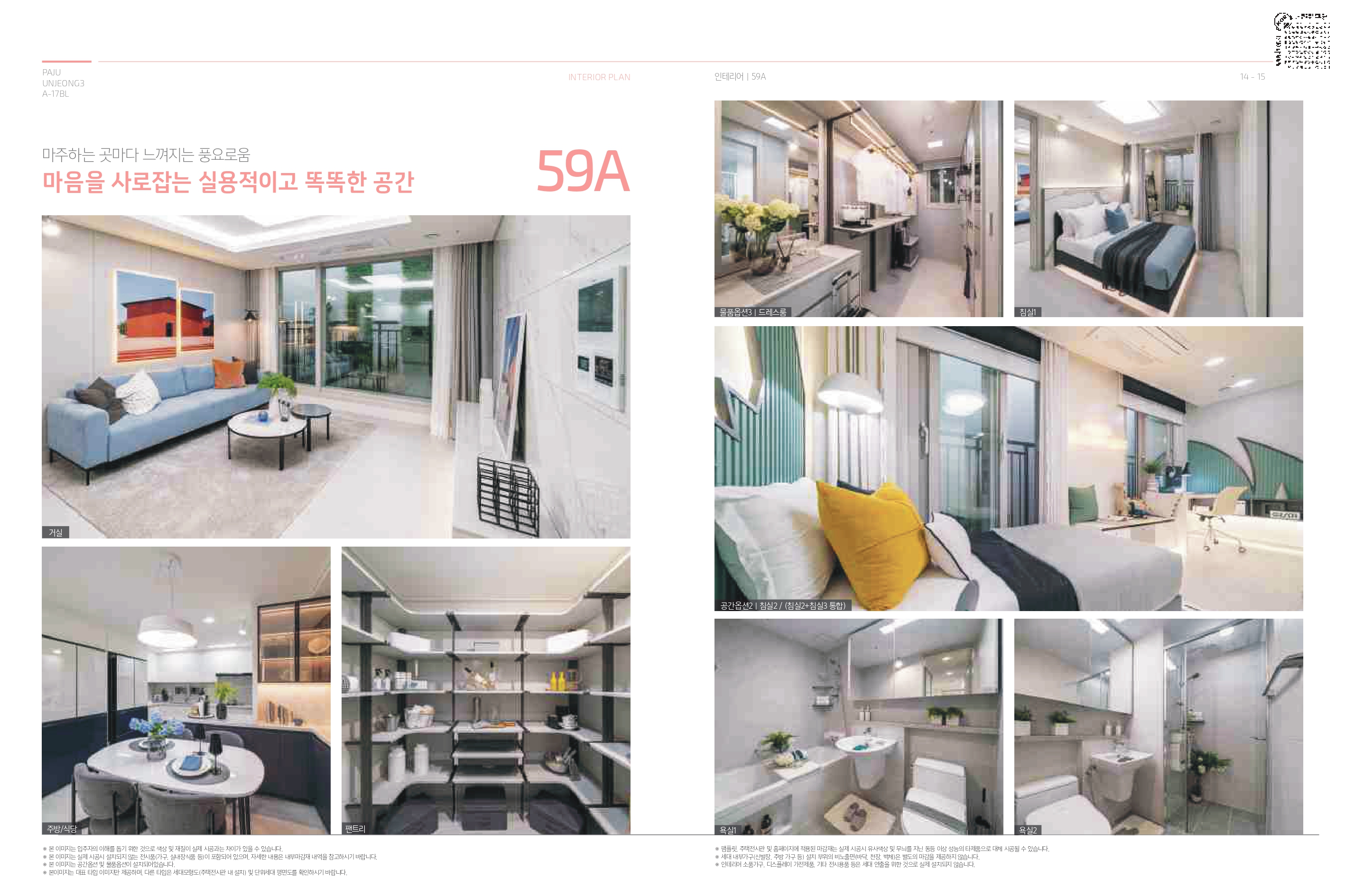 - 파주운정3 A17블록 주택전시관 내 견본주택은 단위세대 59A형, 84A형이 설치되었으며, 59B형은 파주운정3 A17블록 공식홈페이지에서 사이버모델하우스를 참고하시기 바랍니다.