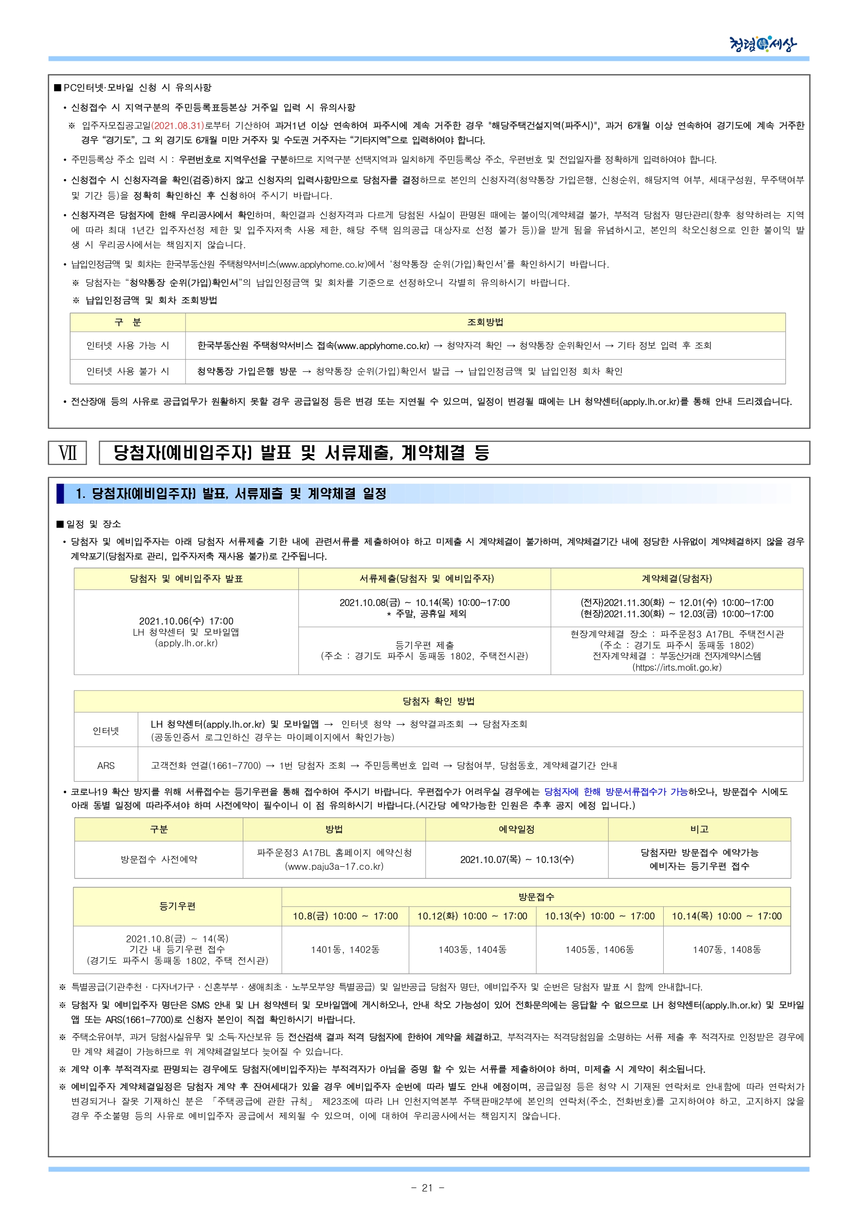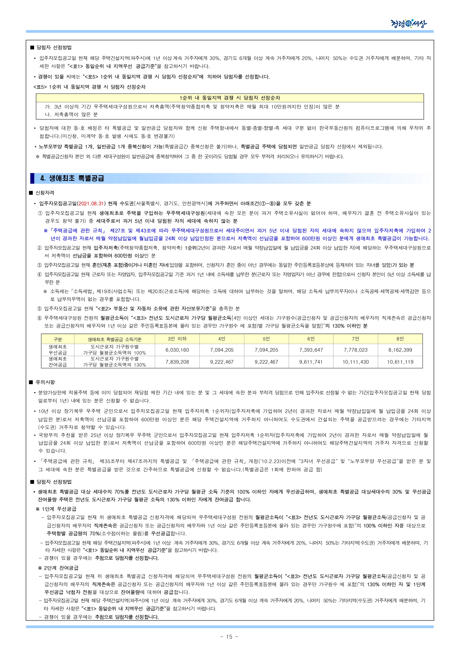 ■ 이 주택의 입주자모집공고일은 2021.08.31(화)이며, 이는 청약자격(청약신청, 자격조건의 기간, 나이, 세대구성원, 지역우선, 주택소유 등)의 판단기준일이 됩니다.