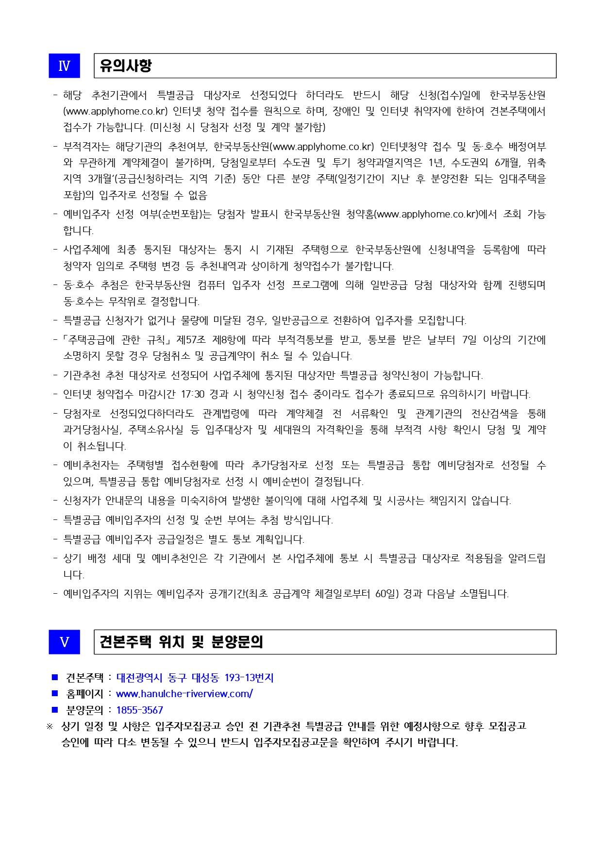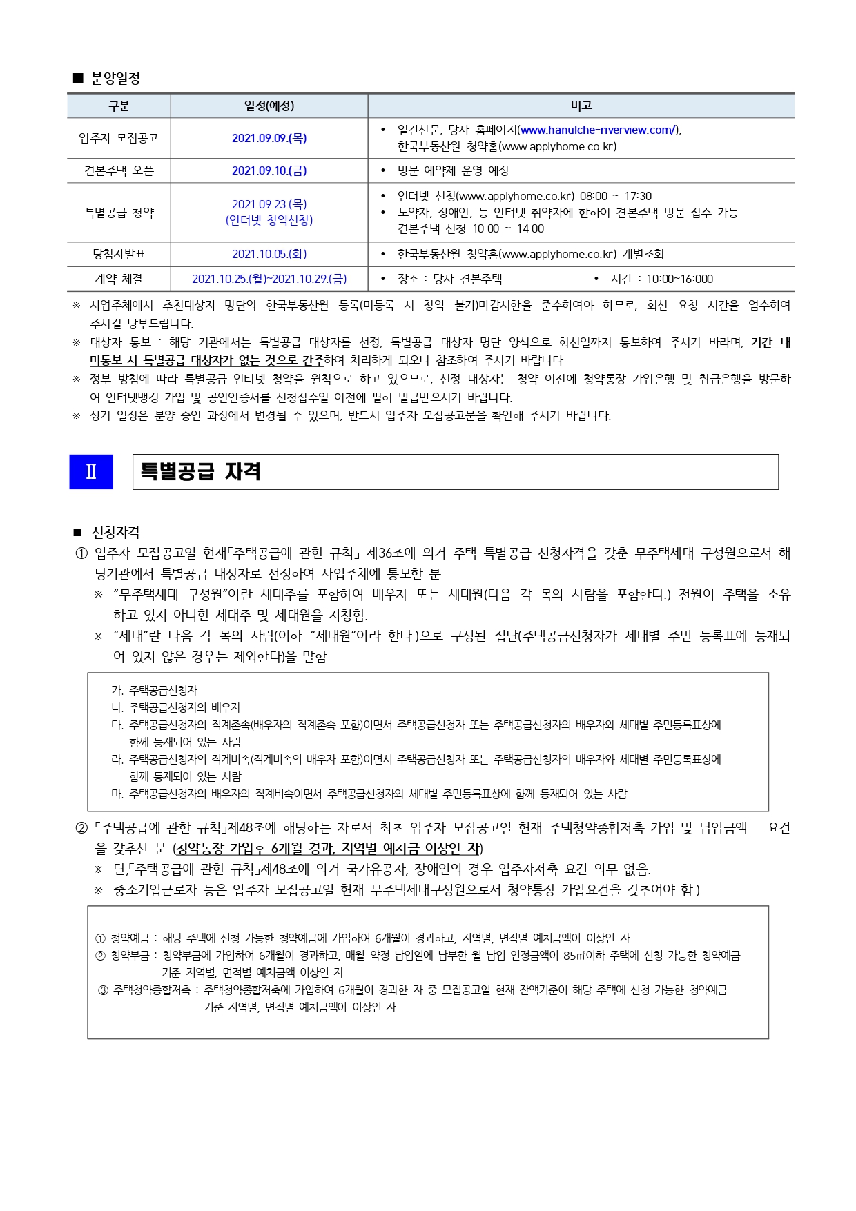 ※ 사업주체 및 시공사는 특별공급 대상자(예비추천 포함)에게 특별공급 청약접수 관련하여 별도의 안내를 하지 않으며, 선정된 특별공급 대상자가 청약 접수안내를 받지 못하여 청약 미접수로 받는 불이익에 대하여 사업주체 및 시공사에 이의를 제기할 수 없습니다.