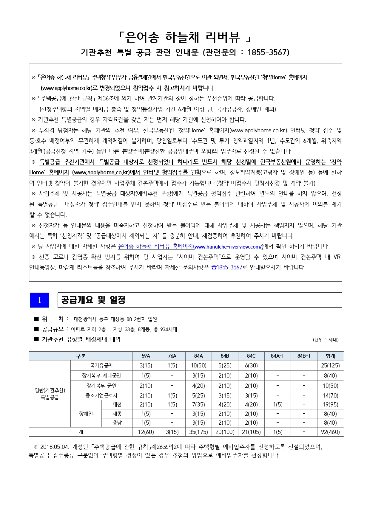 ※ 「은어송 하늘채 리버뷰」 주택청약 업무가 금융결제원에서 한국부동산원으로 이관 되면서, 한국부동산원 ‘청약Home’ 홈페이지