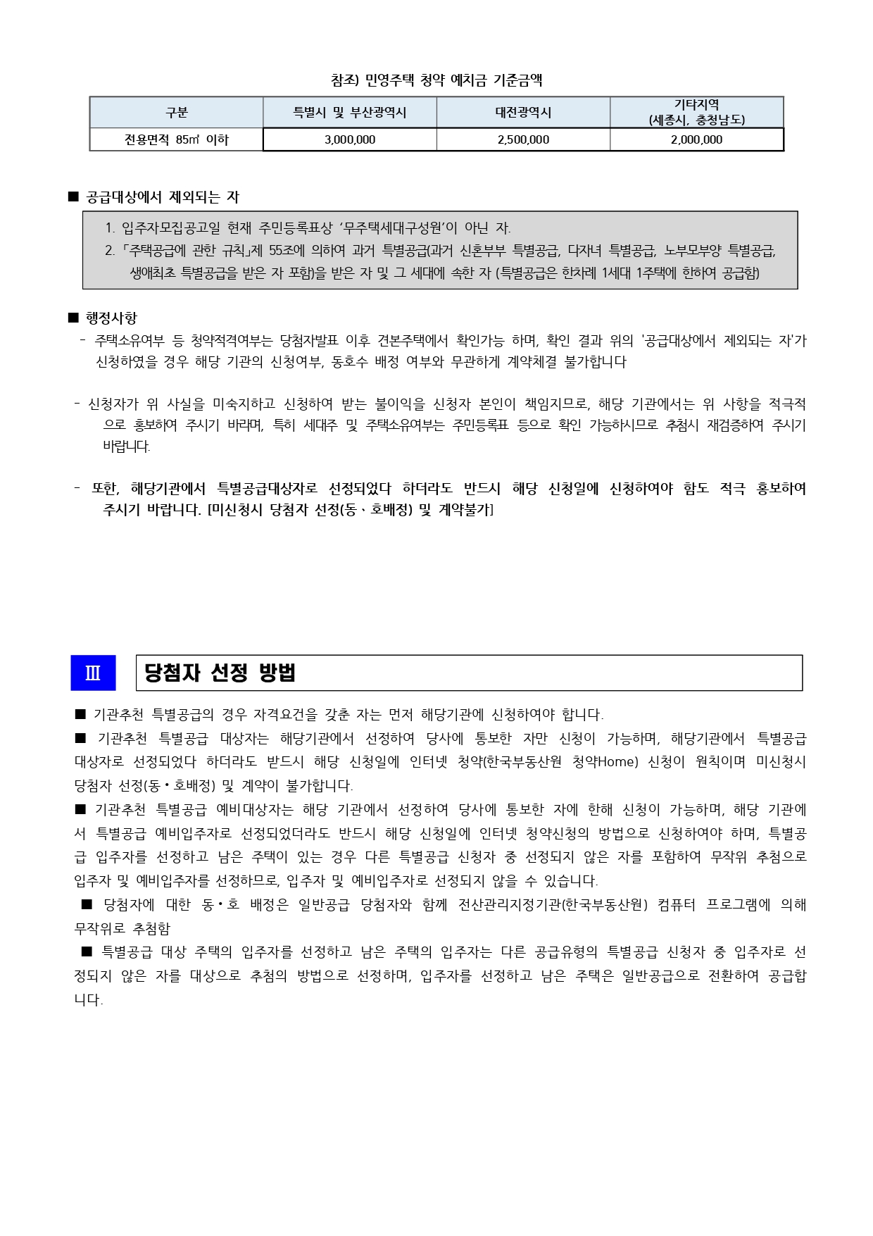 ※ 신청자가 동 안내문의 내용을 미숙지하고 신청하여 받는 불이익에 대해 사업주체 및 시공사는 책임지지 않으며, 해당 기관에서는 특히 ‘신청자격’ 및 ‘공급대상에서 제외되는 자’ 를 충분히 안내, 재검증하여 추천하여 주시기 바랍니다.