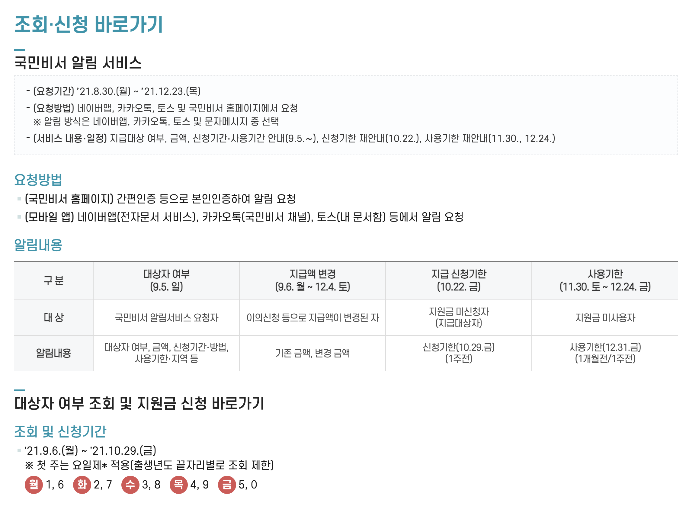 국민비서 알림서비스 신청 시 안내(요청 8.30.(월)~, 알림 9.5.(일)~)