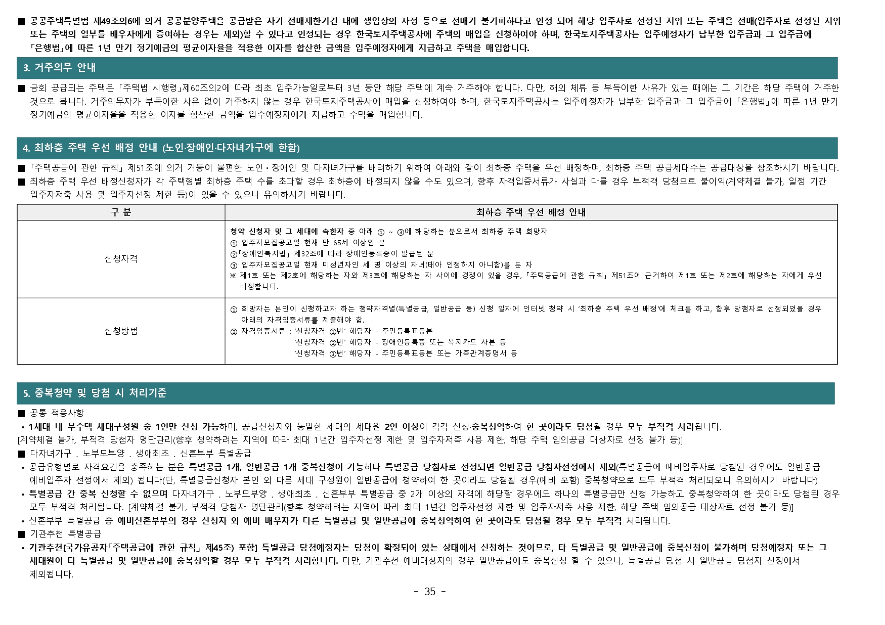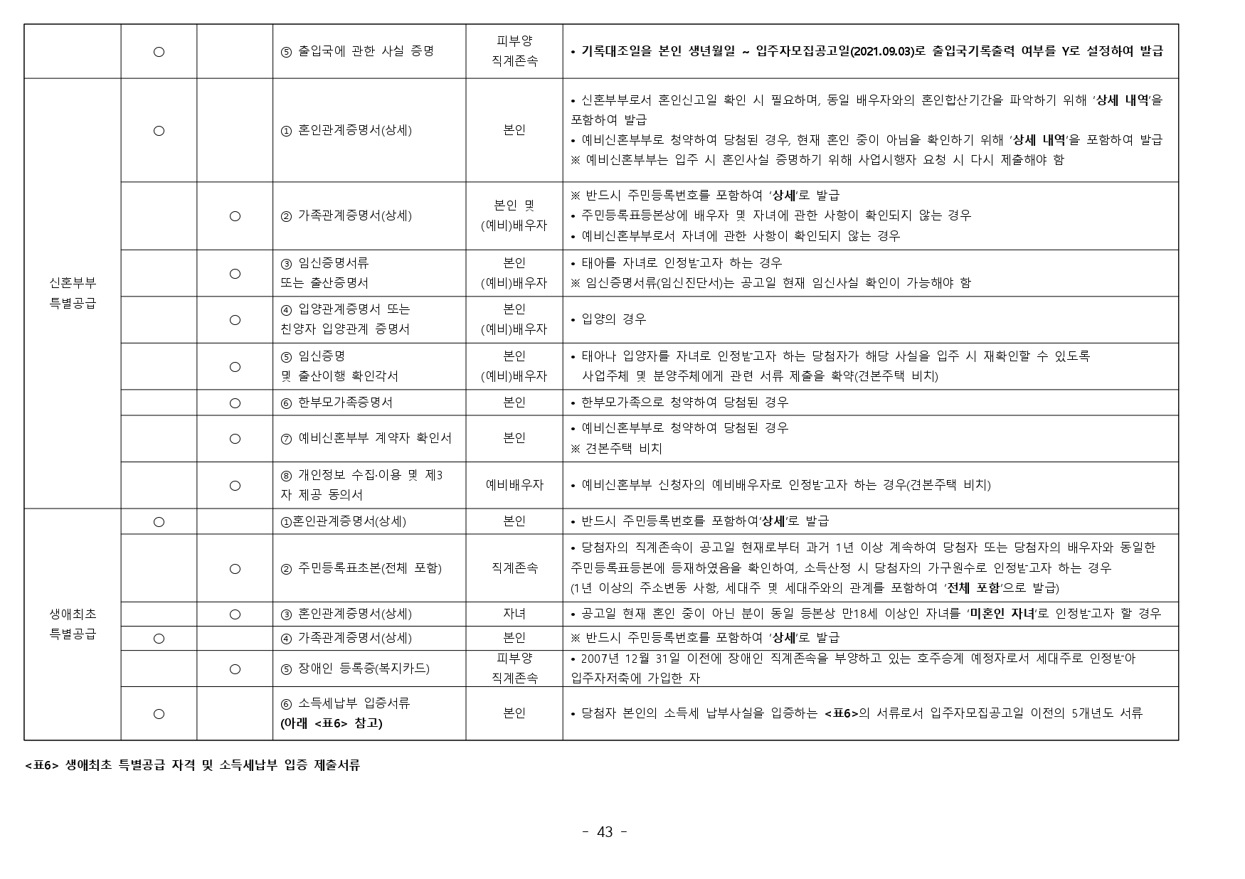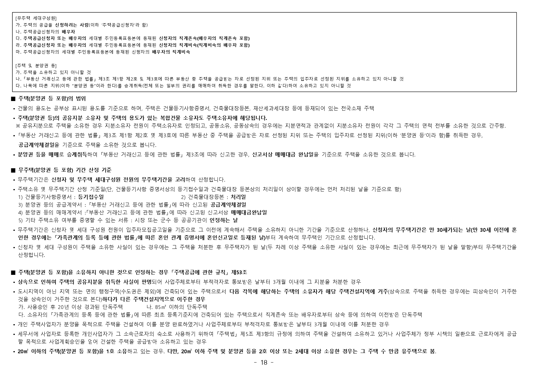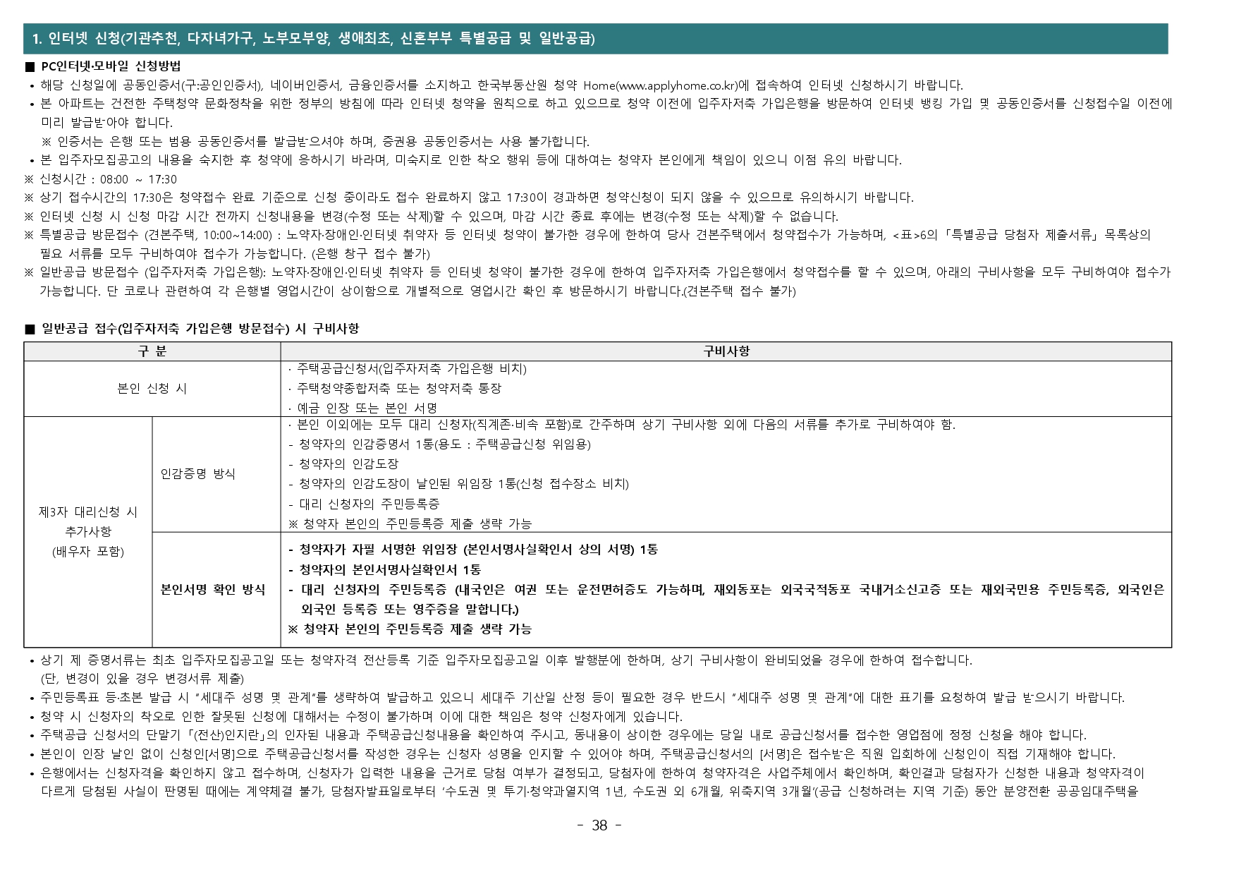 ■ 2019.11.01. 개정된 「주택공급에 관한 규칙」제4조 제5항 및 제23조 제2항 제7호에 따라 우선공급 받으려는 경우에는「출입국관리법」제88조의 출입국사실증명서를 사업주체에 제출하여야 합니다. 장기해외체 류자는 해당 주택건설지역 우선공급 대상자로 신청이 불가하며, 이를 위반하여 해당 주택건설지역 거주자로 청약하여 당첨된 경우에는 부적격 당첨자로 처리됩니다.