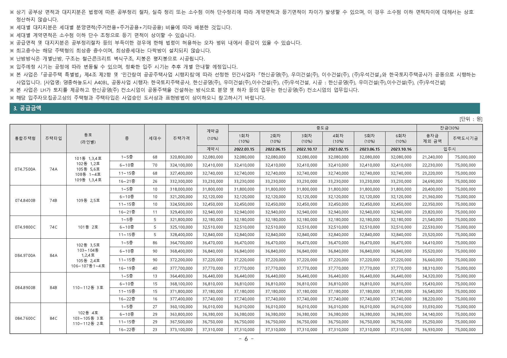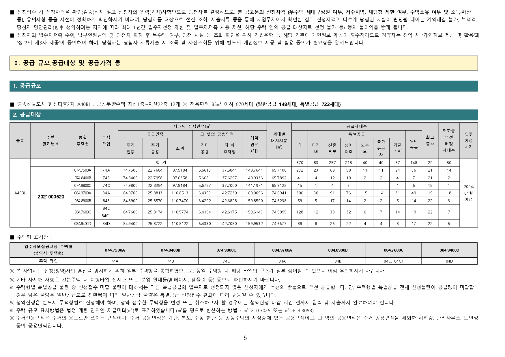 ❚ 공급대상 : 전용면적 74m², 84m² 공공분양주택 870세대