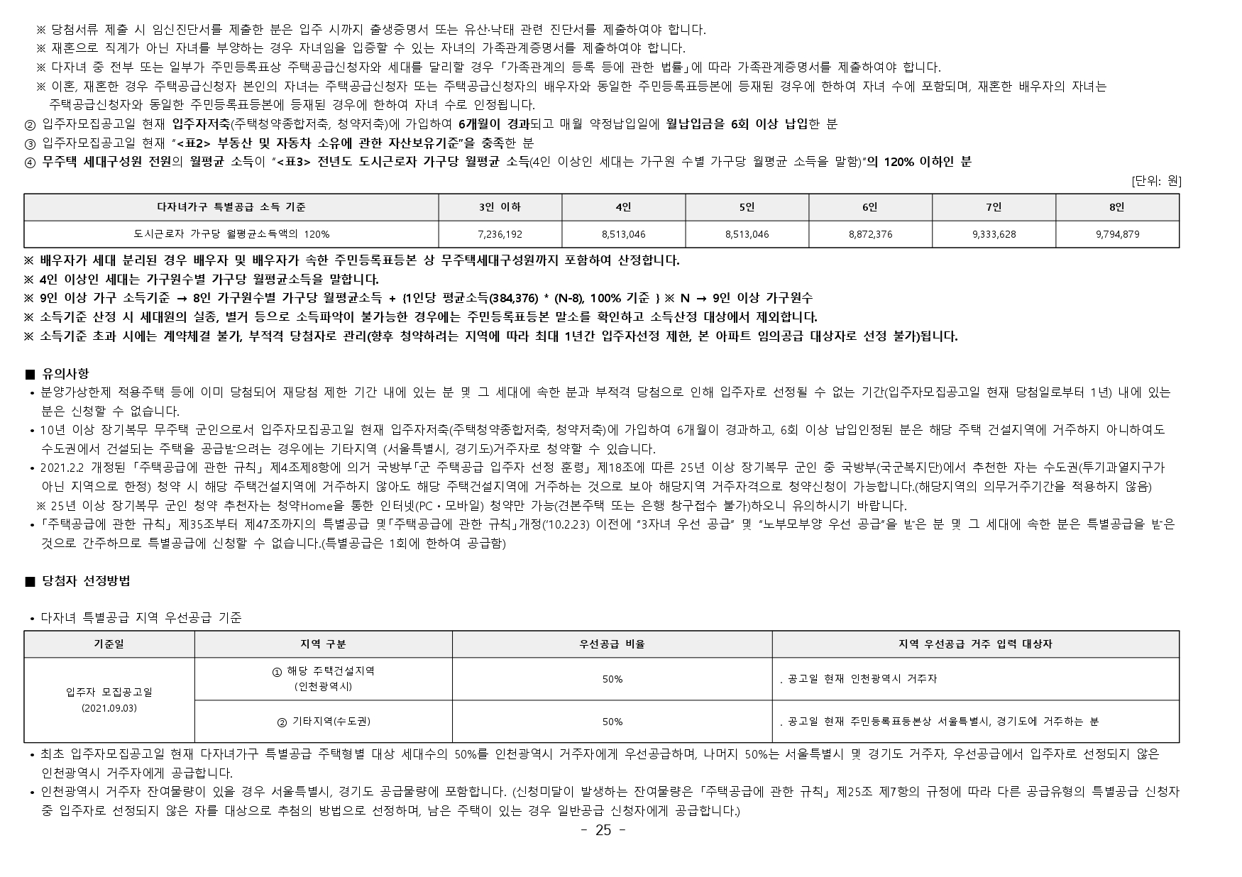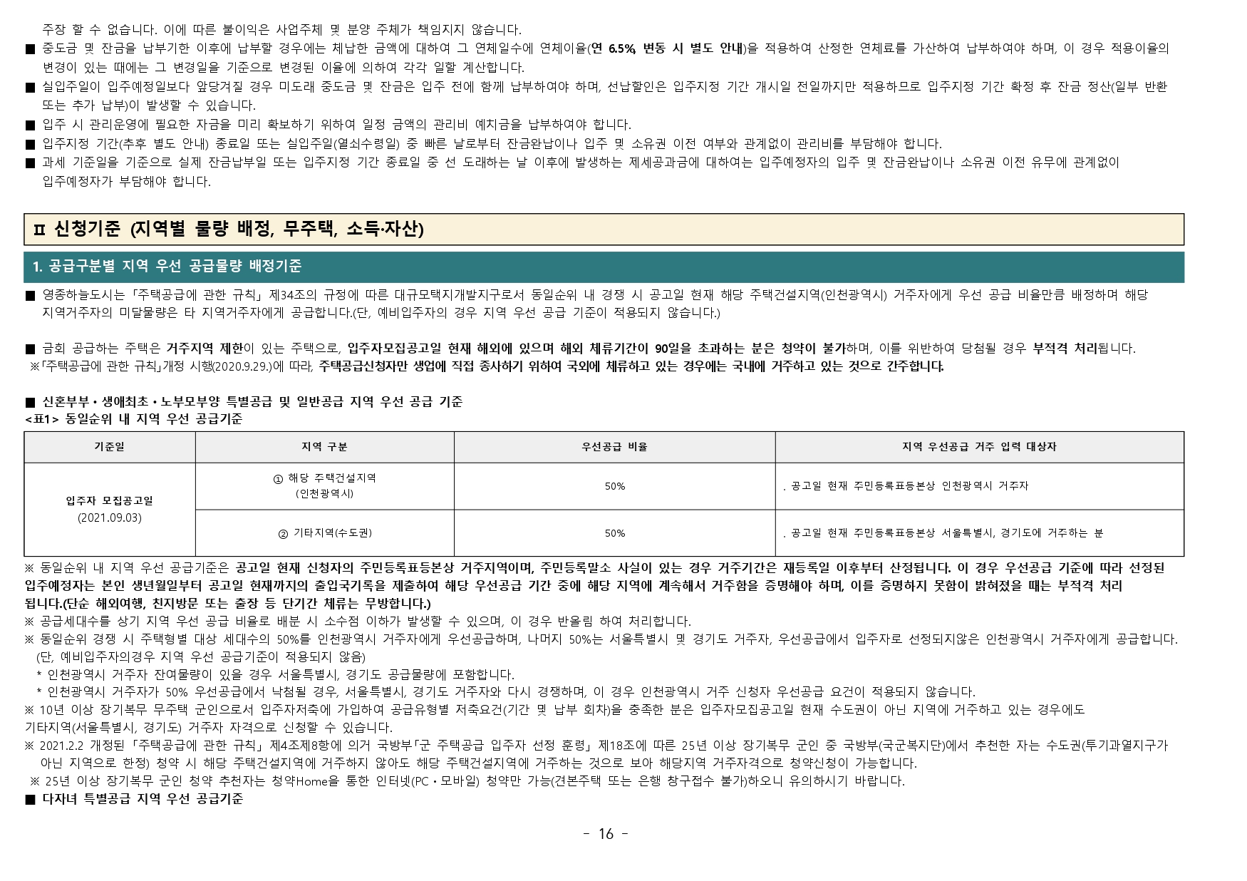 ■ 이 주택은 청약과열지역 및 인천경제자유구역 개발사업이 시행되는 구역에 위치하는 대규모 택지개발지구에서 공급되는 주택으로서, 「주택공급에 관한 규칙」제34조(대규모 택지개발지구 등에서의 우선 공급)에 따라 인천광역시 거주자 50%, 기타지역 거주자(서울특별시 및 경기도 거주) 50% 순으로 지역 우선 공급이 적용됩니다.