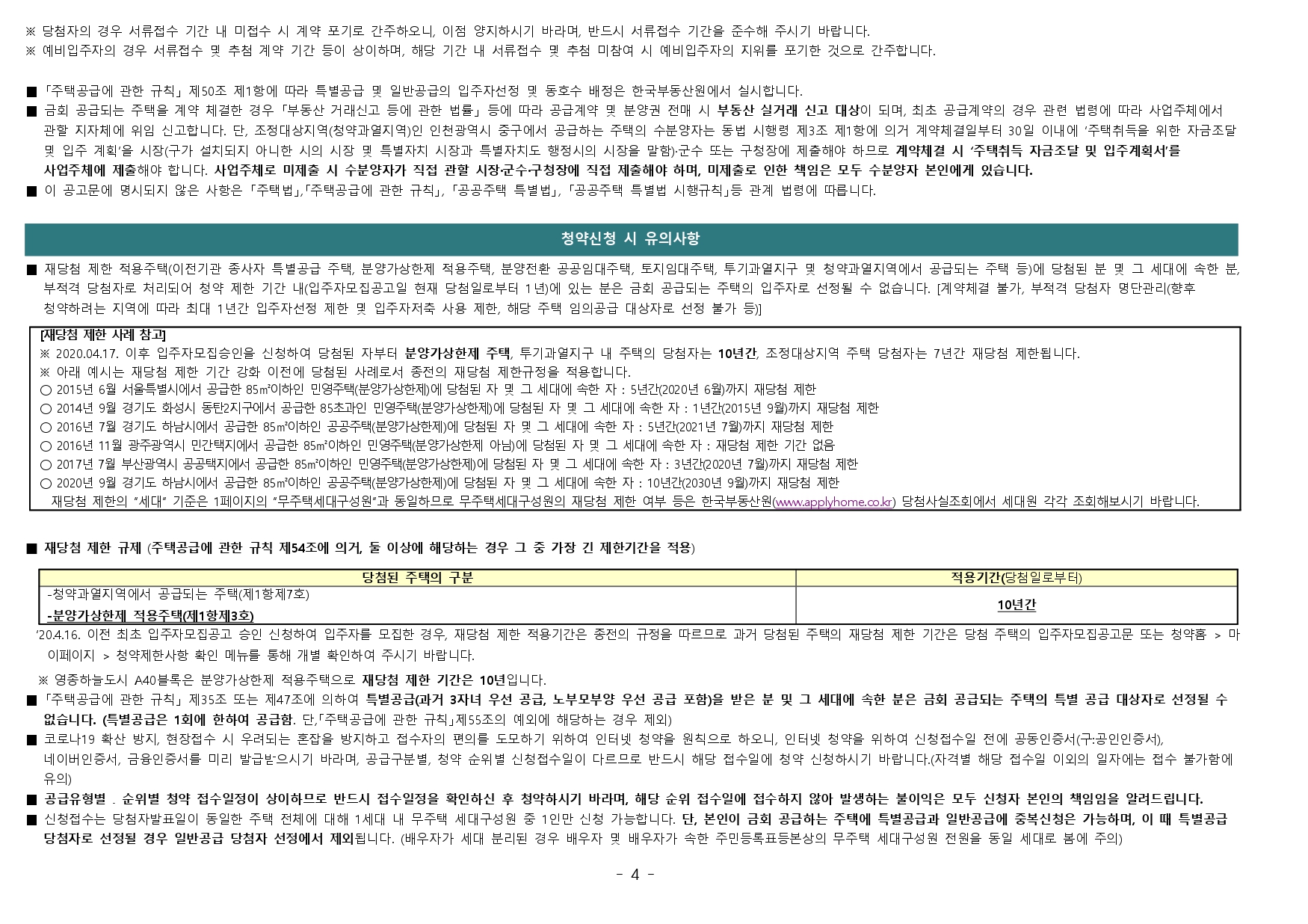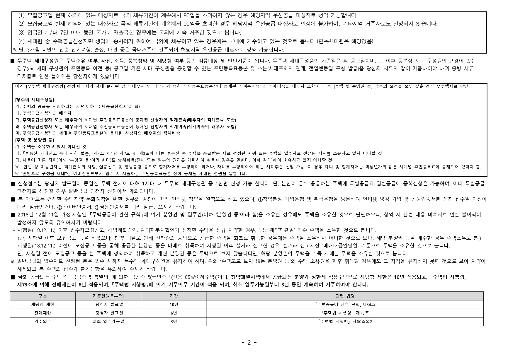 - 입주자모집공고일 당일을 기준으로 연속하여 90일 초과 해외에 체류 중인 경우에는 해당지역 및 기타지역 청약이 불가합니다.