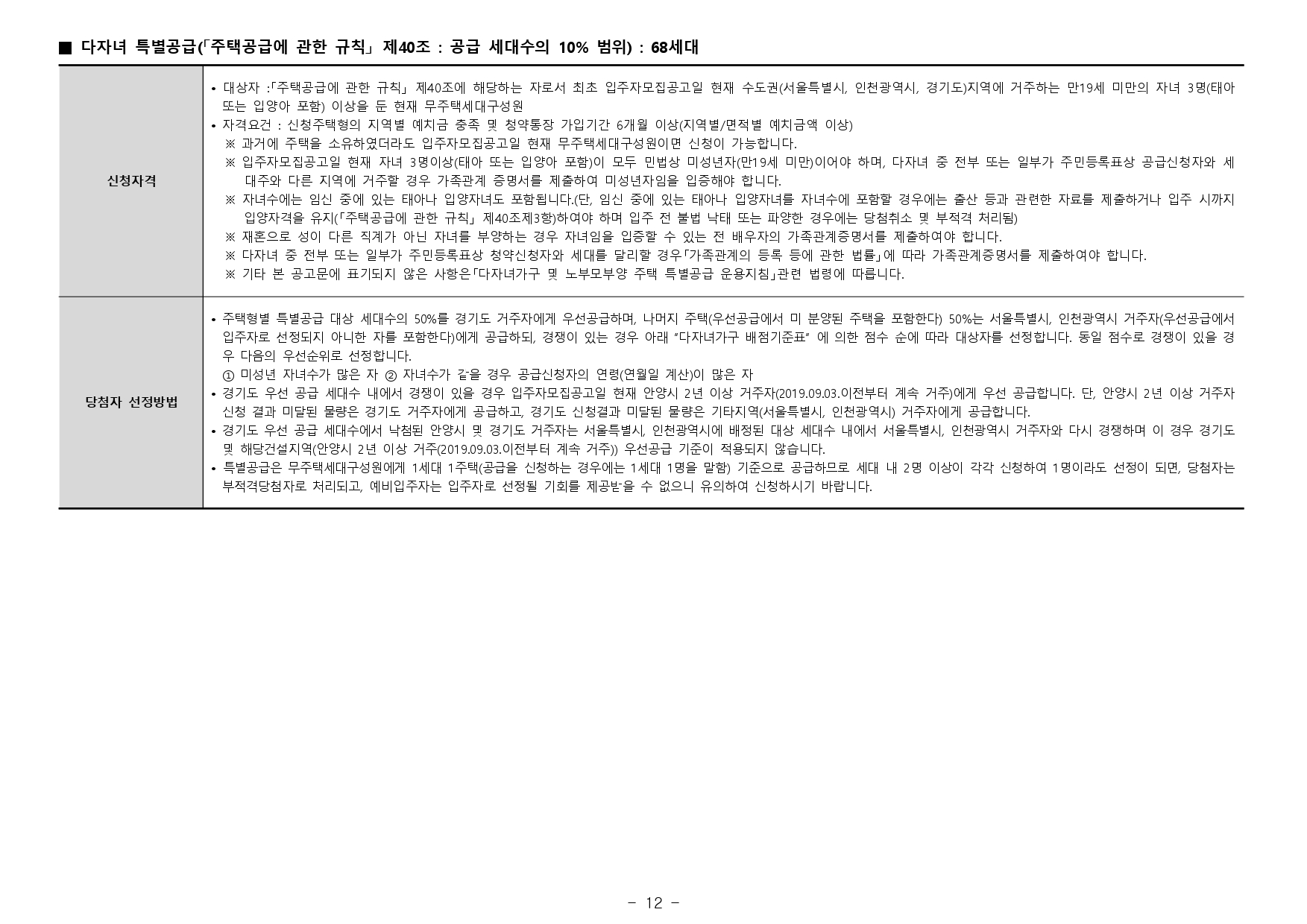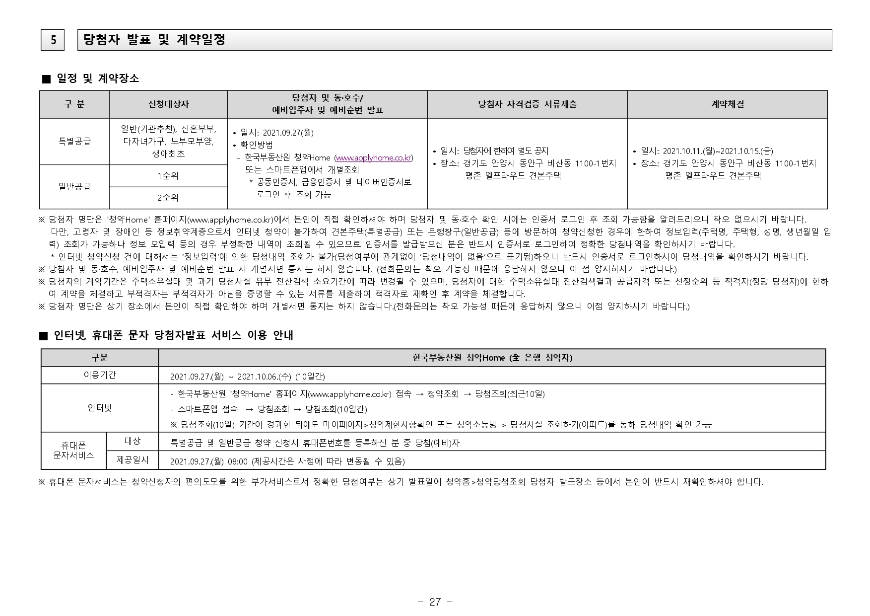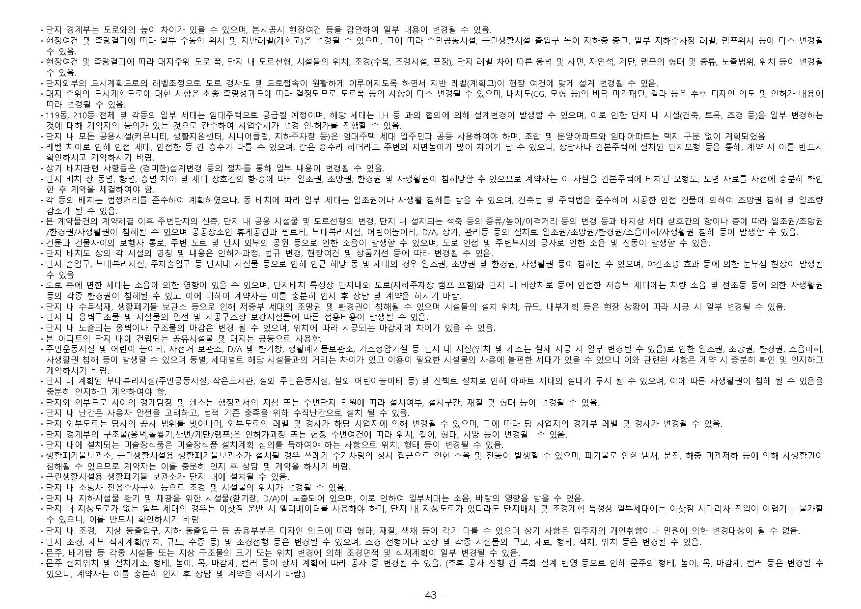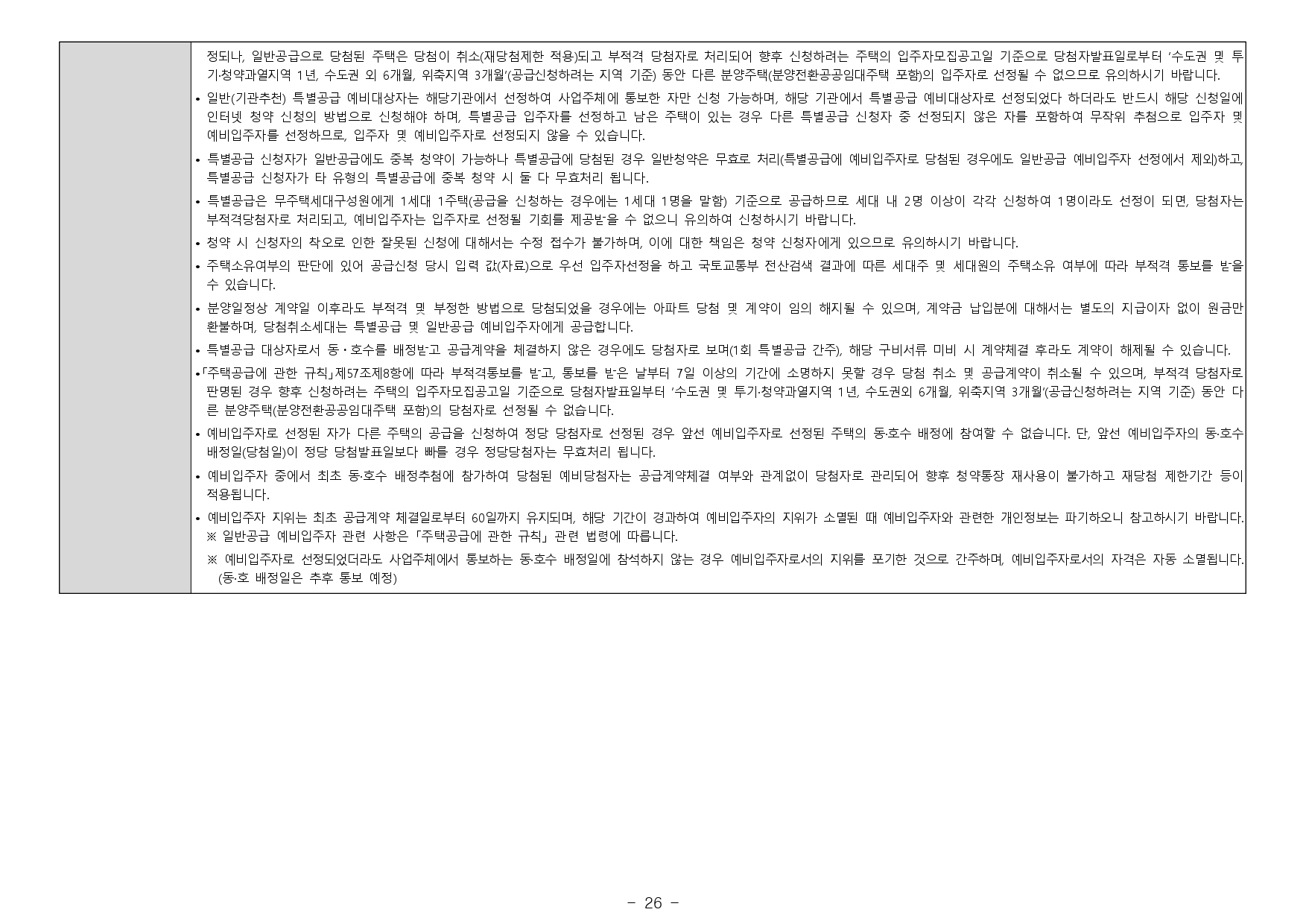 - 전매금지 및 재당첨제한 등의 사항은 입주자모집공고일 시점 관련 법규의 적용을 받으며, 향후 관련 법규 개정에 따라 변경 될 수 있습니다.