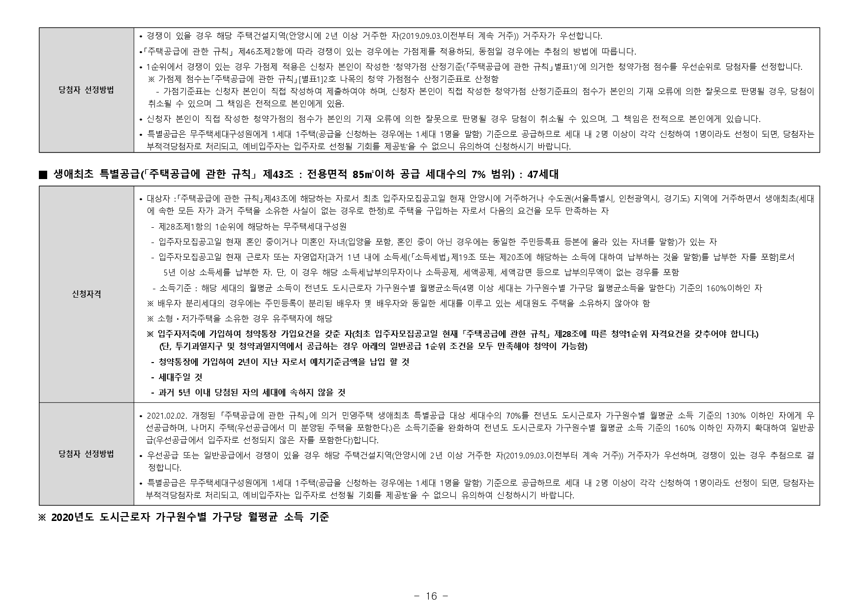 ■ 해당 주택건설지역 안양시는 「주택법」 제63조 및 제63조의2에 의한 투기과열지구 및 청약과열지역으로서, 본 아파트는 「주택공급에 관한 규칙」에 따라 1주택 이상 소유한 세대에 속한 분은 1순위 가점제 청약이 불가하며, 2주택 이상 소유한 세대에 속한 분은 1순위 자격에서 제외됩니다.