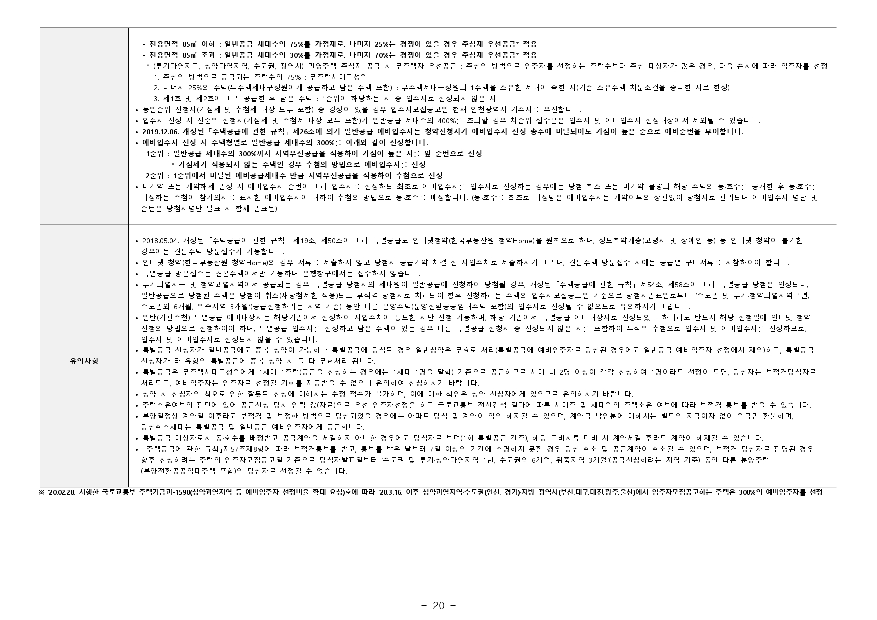 ■ 본 아파트의 당첨자로 선정 시 당첨자 및 세대에 속한 자는 당첨일로부터 향후 5년간 투기과열지구 및 청약과열지역에서 공급하는 주택의 1순위 청약접수가 제한되오니 유의하시기 바랍니다.