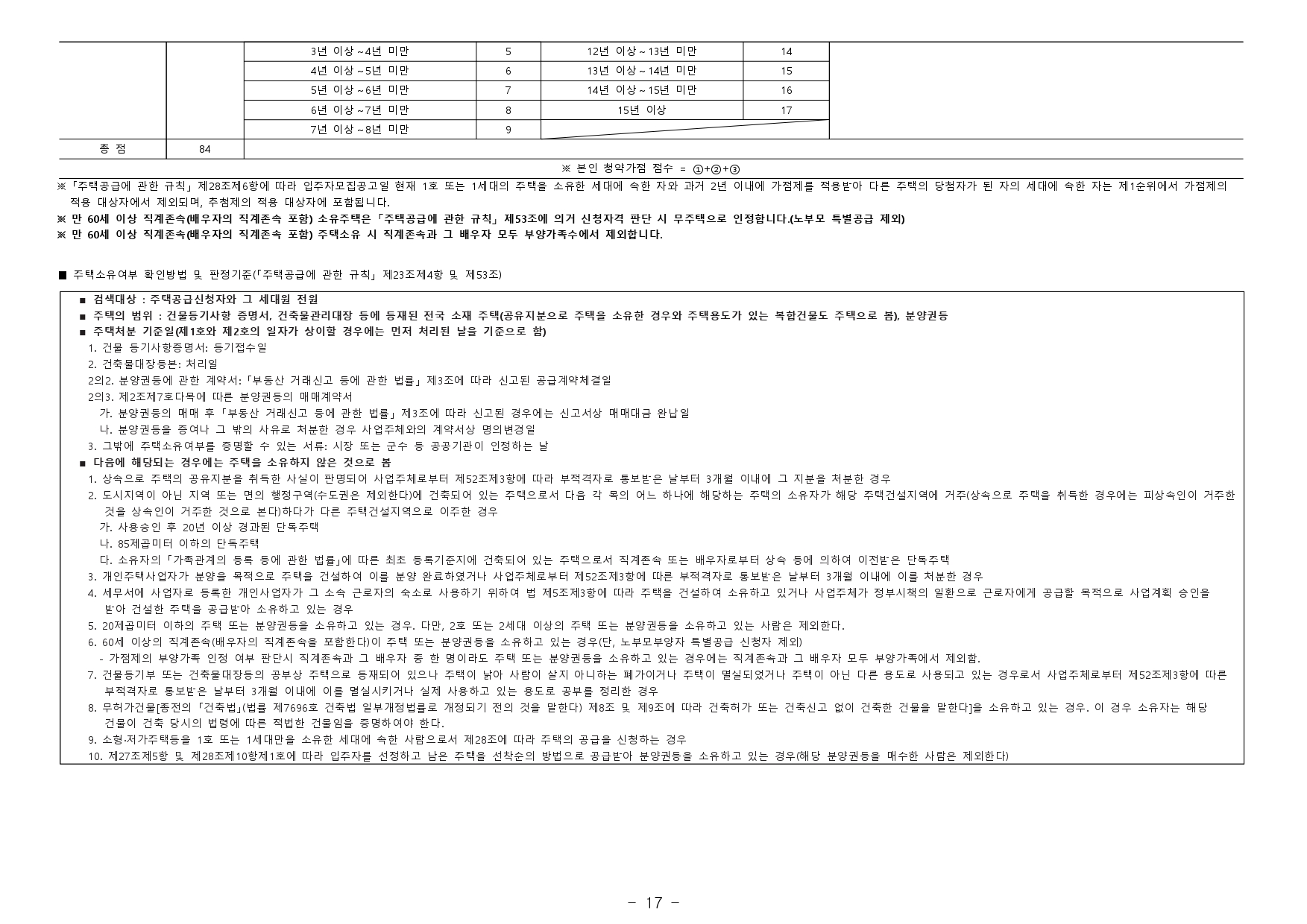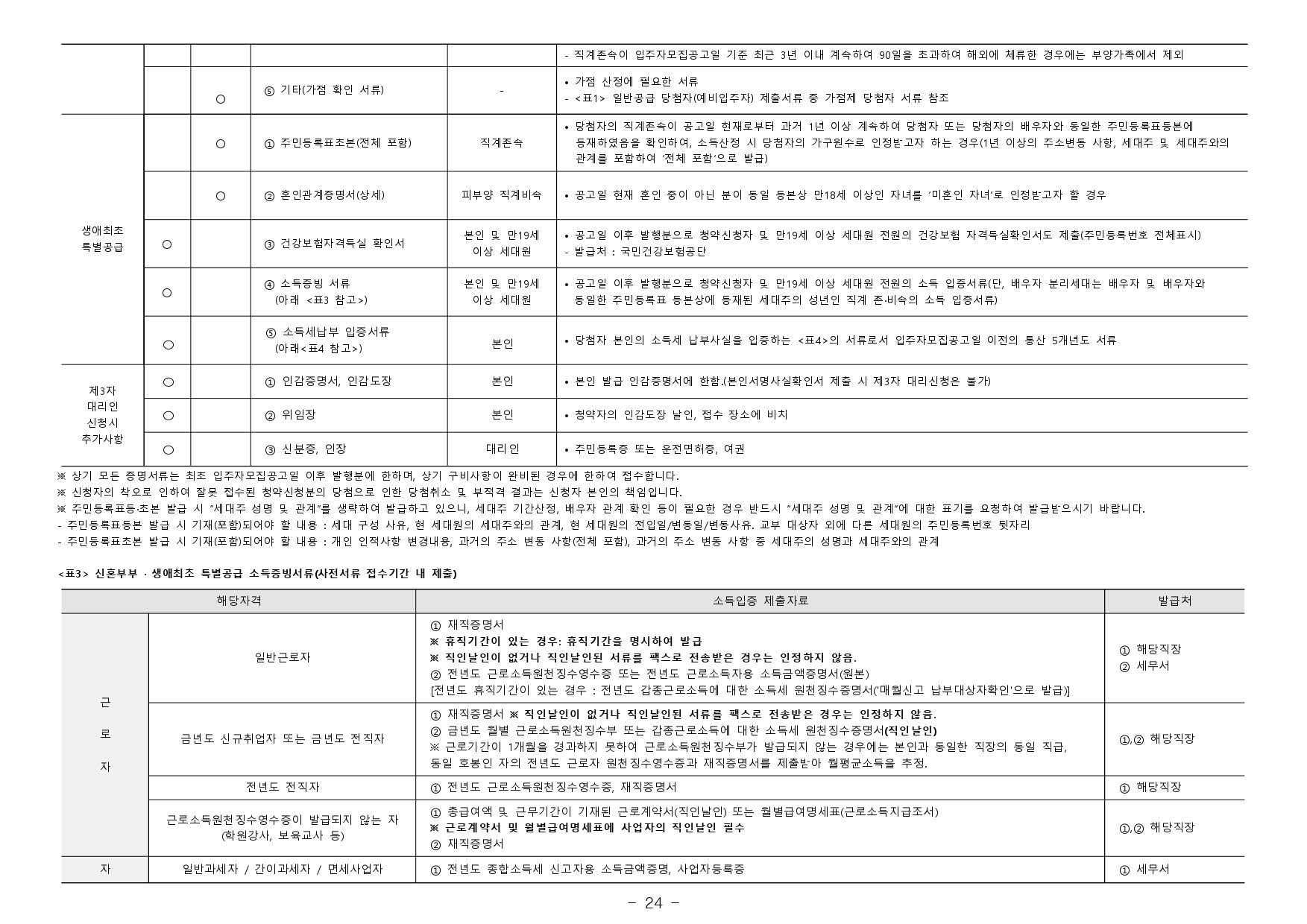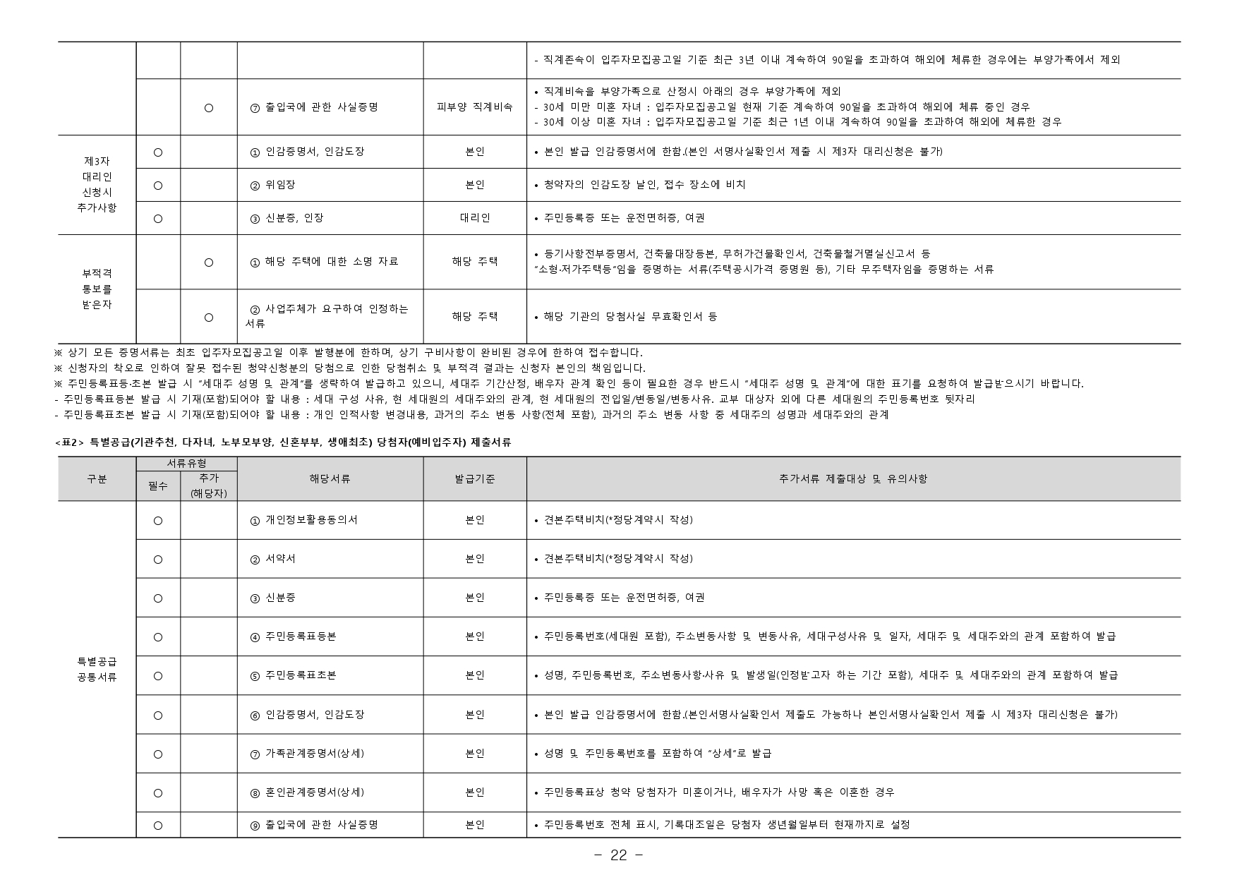 ■ 2019.11.01. 개정된 「주택공급에 관한 규칙」 제4조제5항 및 제23조제2항제7호에 따라 우선공급 받으려는 경우에는 「출입국관리법」 제88조의 출입국사실증명서를 사업주체에 제출하여야 합니다. 장기해외체류자는 해당 주택건설지역 우선공급 대상자로 신청이 불가하며, 이를 위반하여 해당 주택건설지역 거주자로 청약하여 당첨된 경우에는 부적격 당첨자로 처리됩니다.