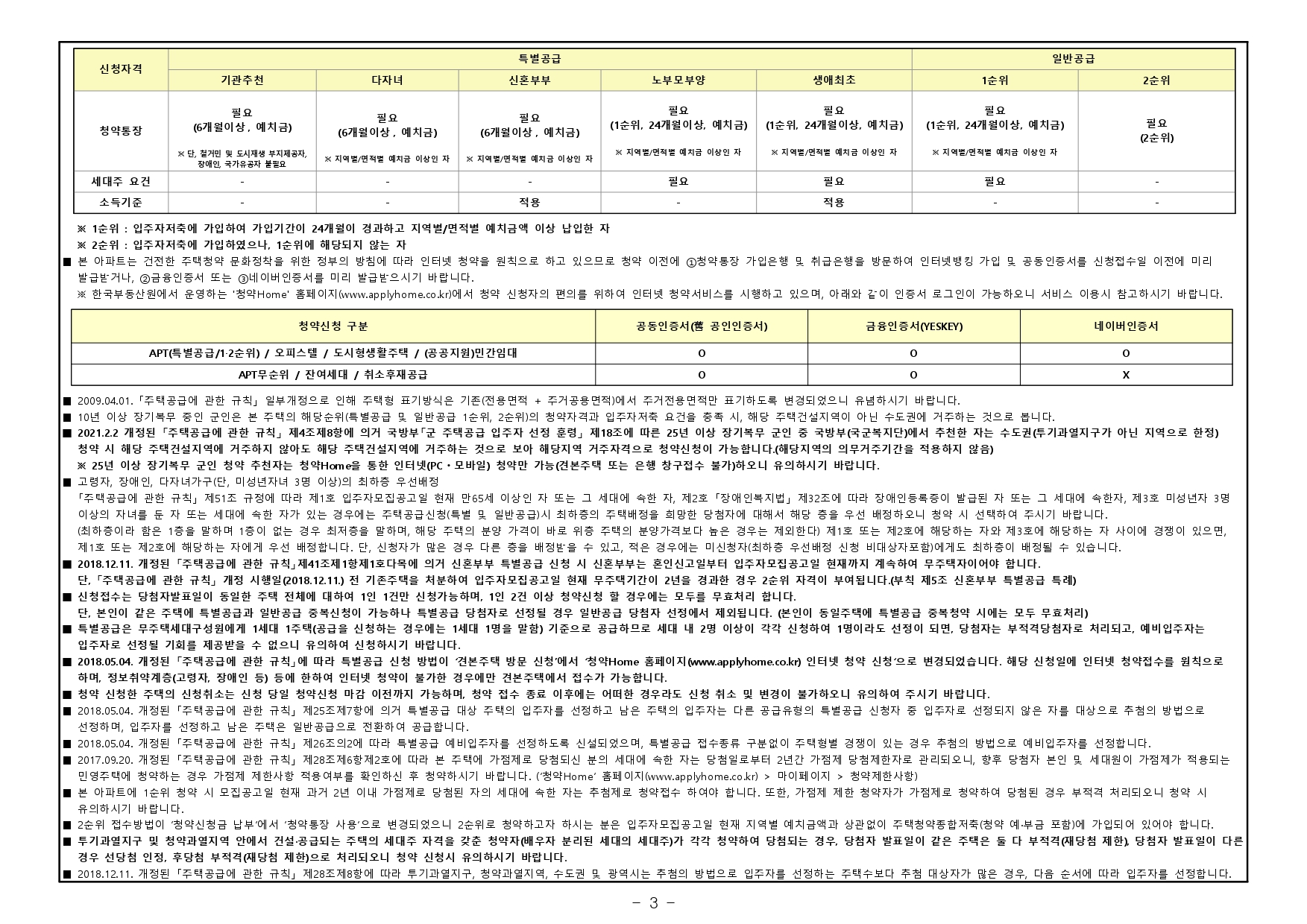 ■ 한국부동산원 청약홈 콜센터(1644-7445)는 청약홈 홈페이지(www.applyhome.co.kr) 이용안내 및 기본적인 청약자격 상담을 하고 있으며 고객 상담 과정에서 청약자 개인의 다양하고 복잡한 상황에 대한 정확하지 않은 정보의 제공으로 일부 착오 안내가 이루어지는 경우가 있습니다. 청약콜센터 상담내용은 법적 효력이 없으므로 참고자료로만 활용해 주시기 바라며 청약자격 미숙지, 착오신청 등에 대해서는 청약자 본인에게 책임이 있으니 자세한 문의 사항은 사업주체를 통해 확인하시어 불이익을 받는 일이 없도록 유의하여 주시기 바랍니다.